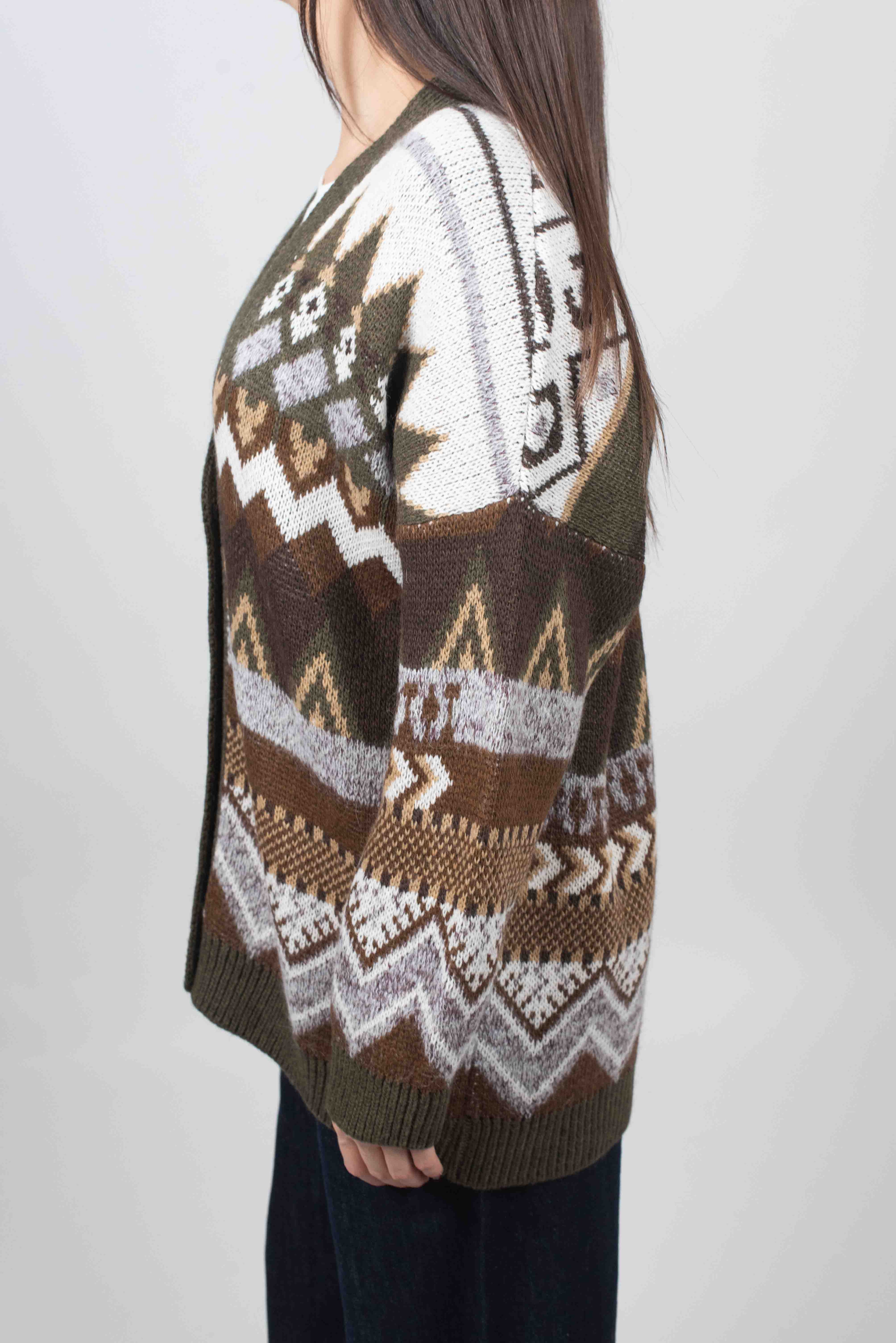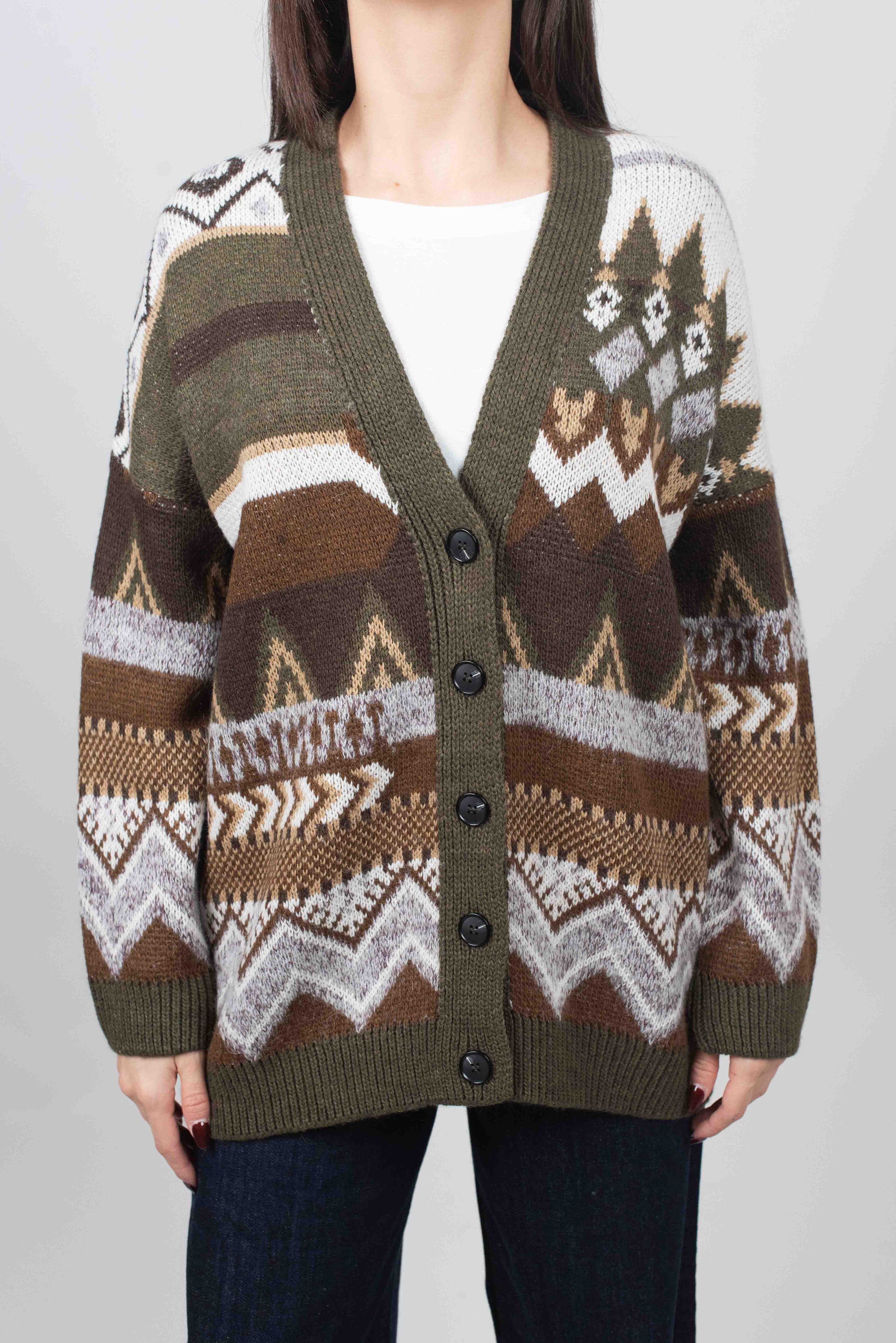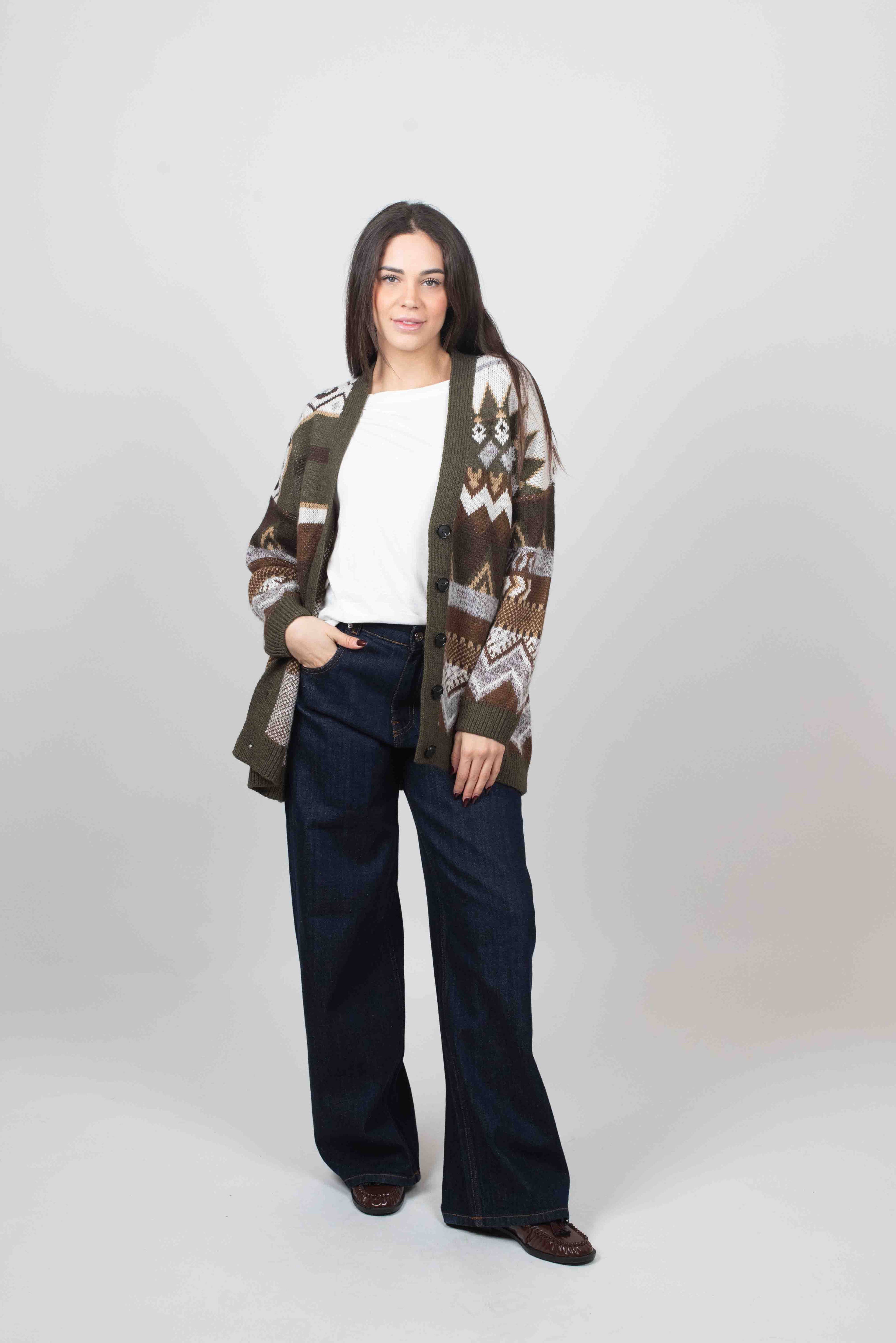 Via Vai Cardigan Fantasia Geometrica - MILITARE