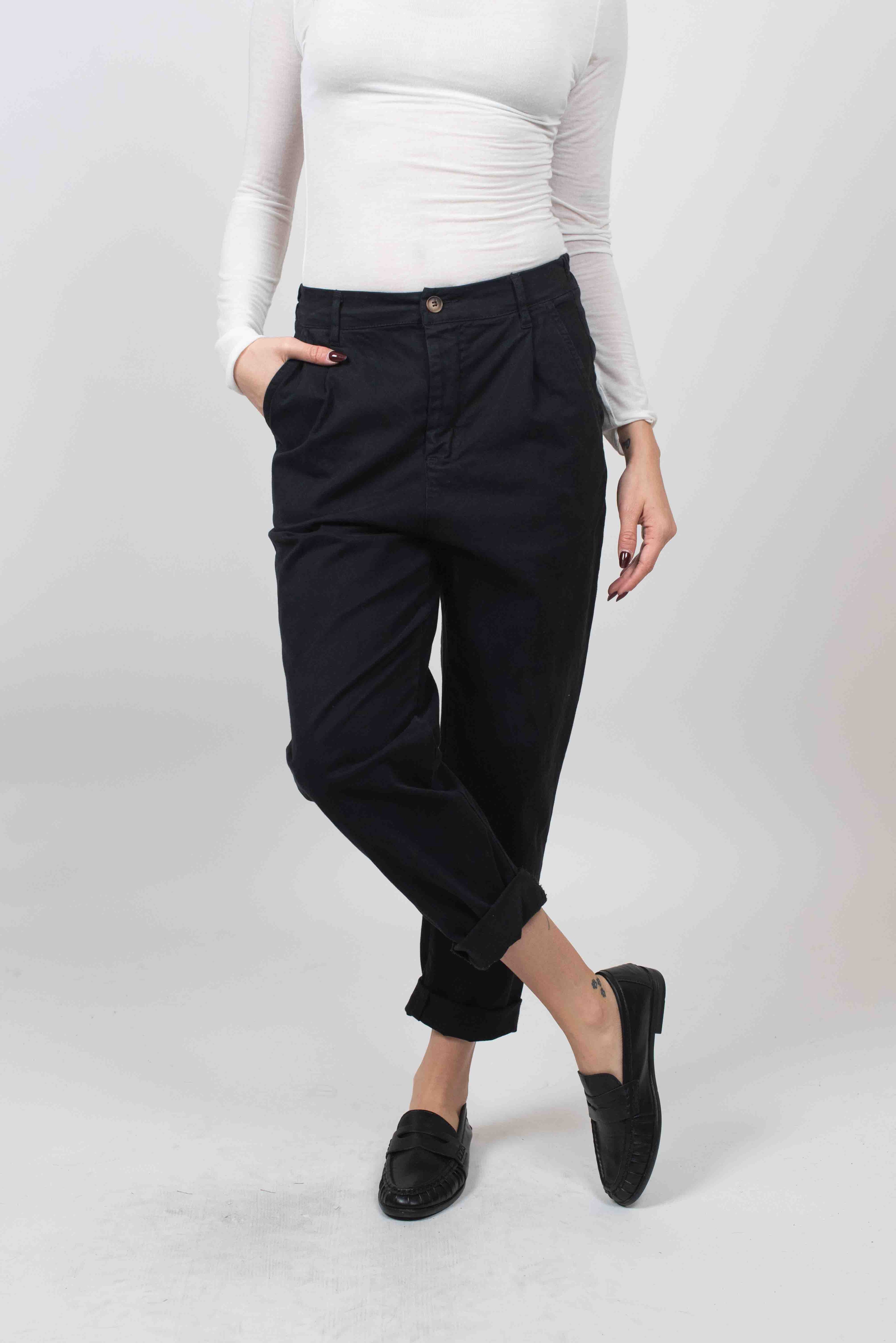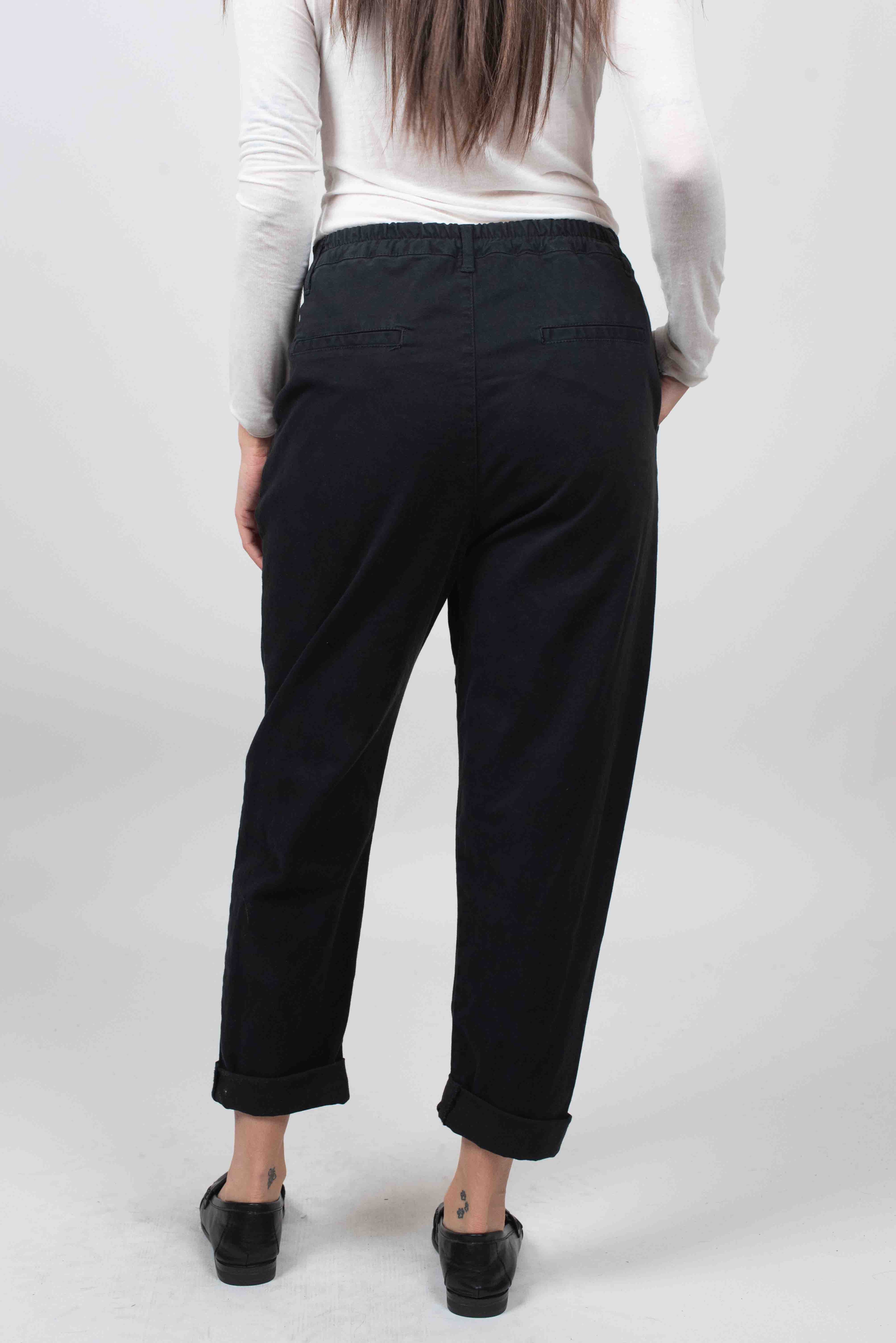 Pantalone boy con elastico dietro e pence.