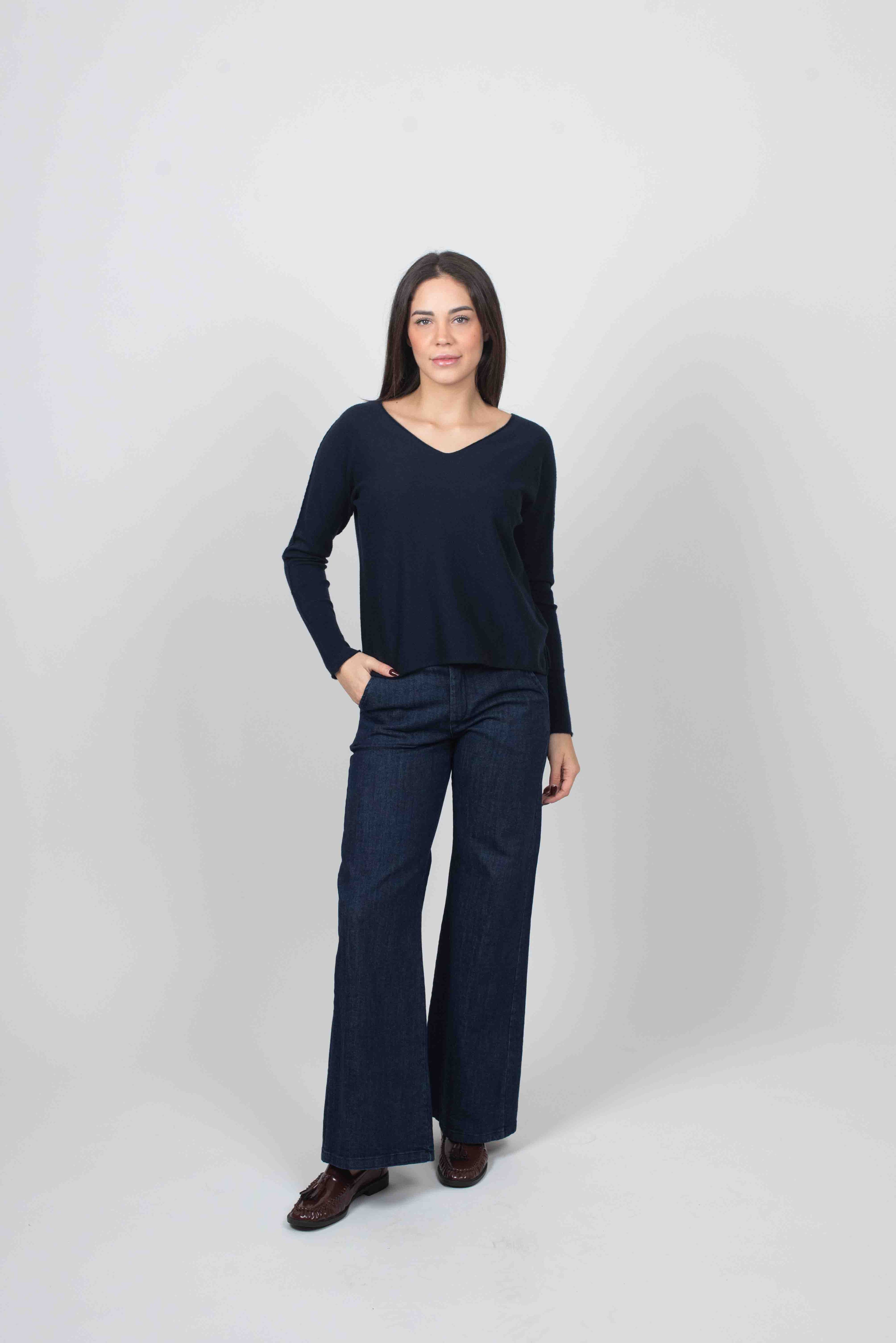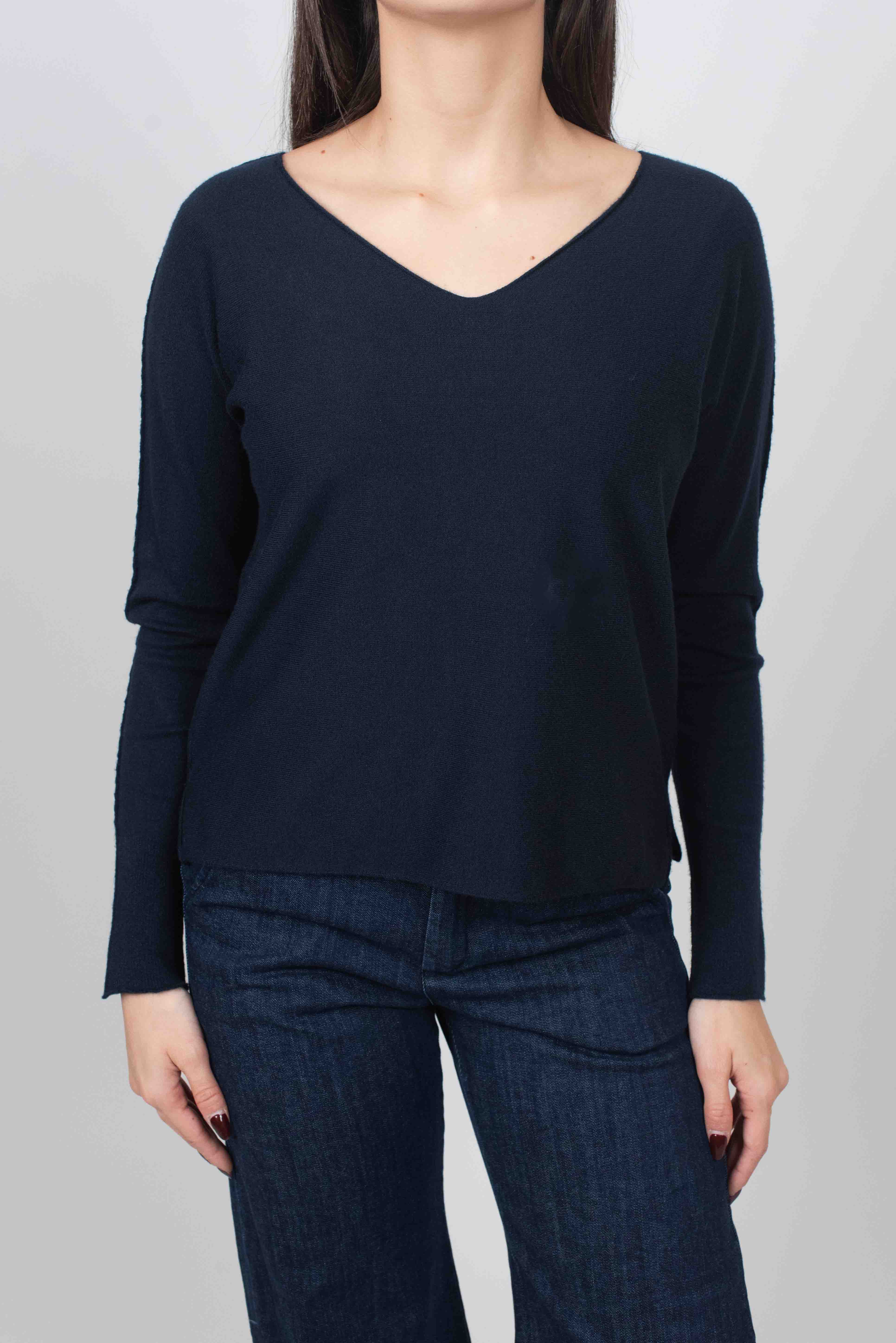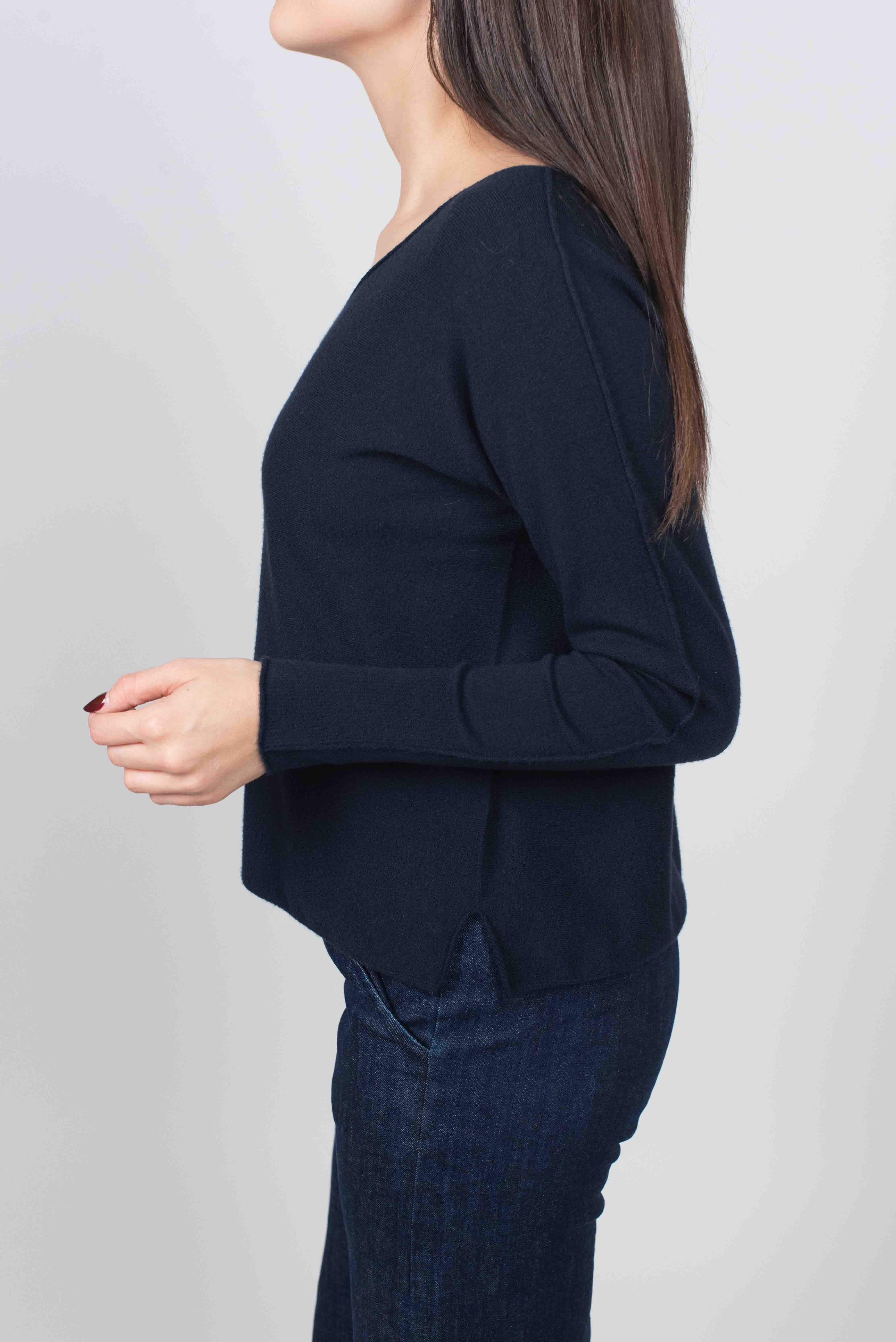 Maglia scatolina con spacchetto laterale e cucitura a rovescio.