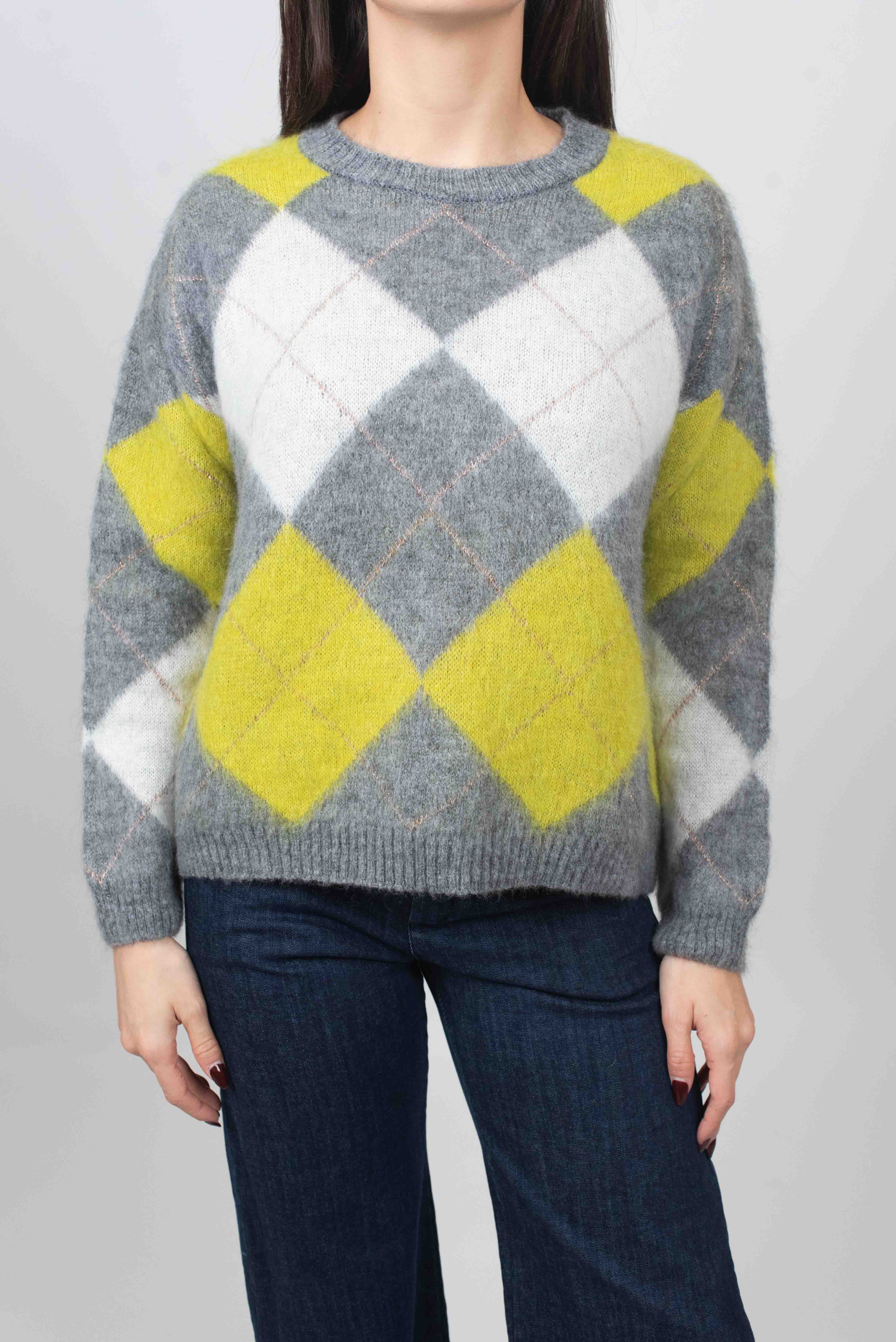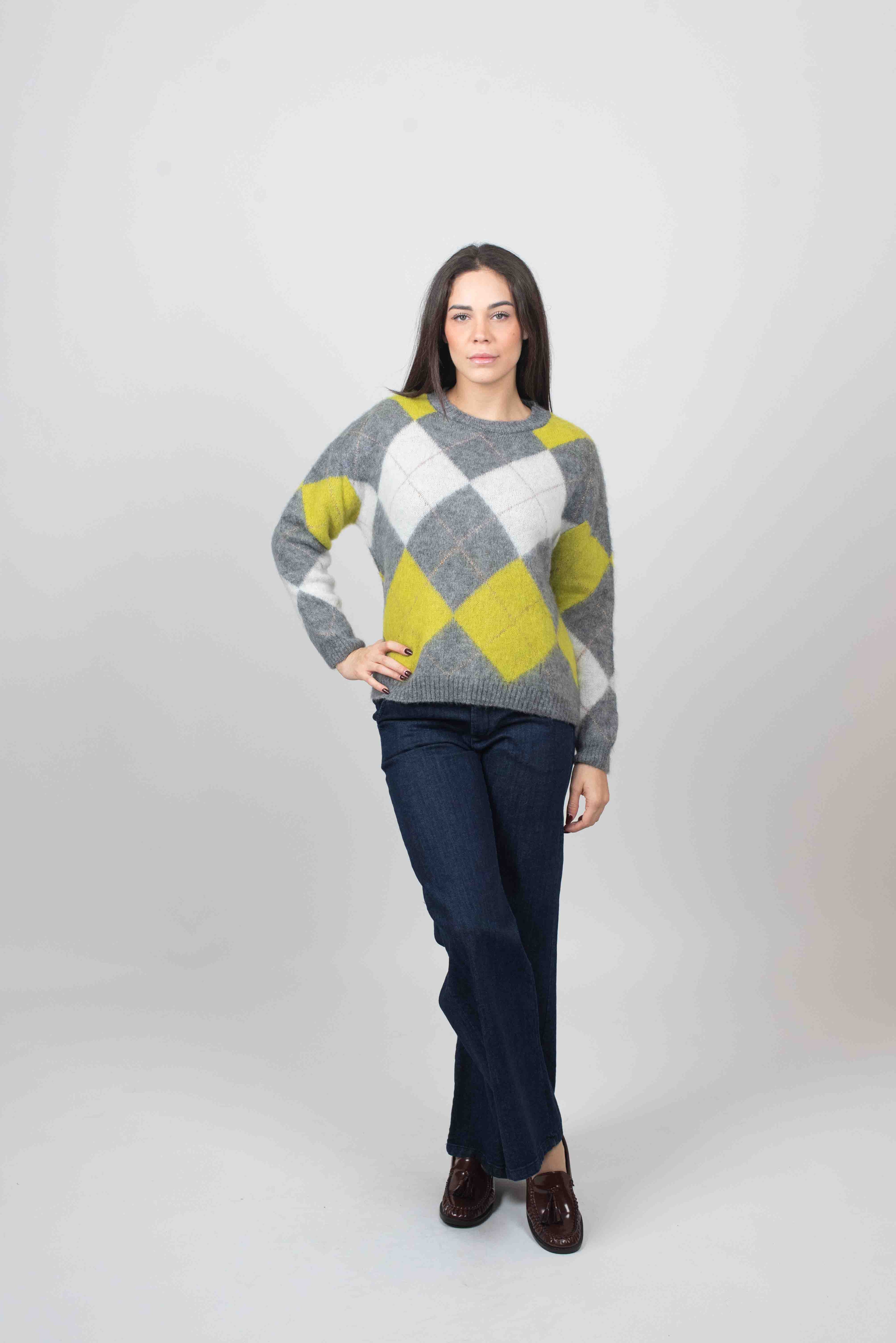 Via Vai Maglia Girocollo Fantasia Rombi - GRIGIO/LIME