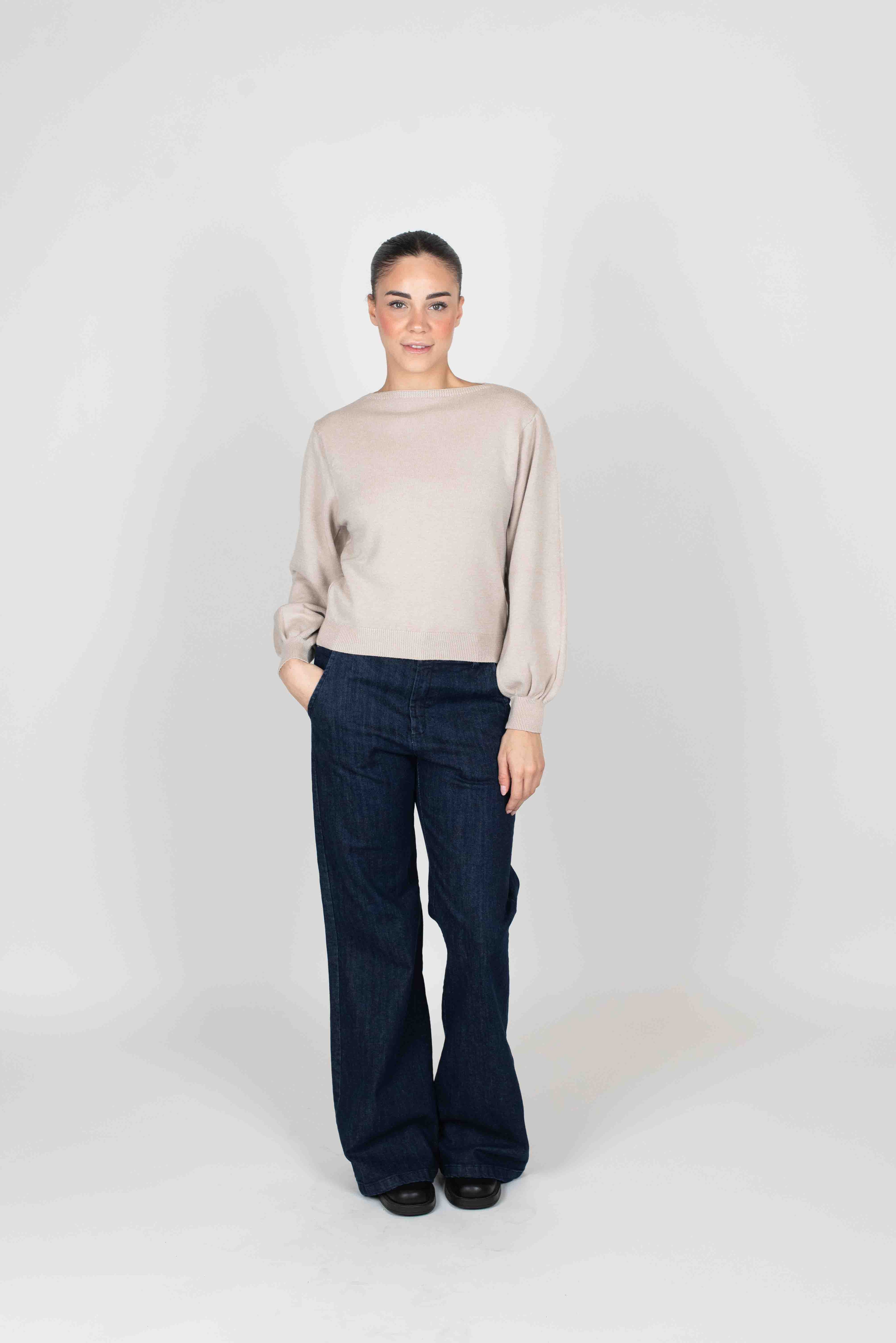 Maglia girocollo con manica a palloncino
