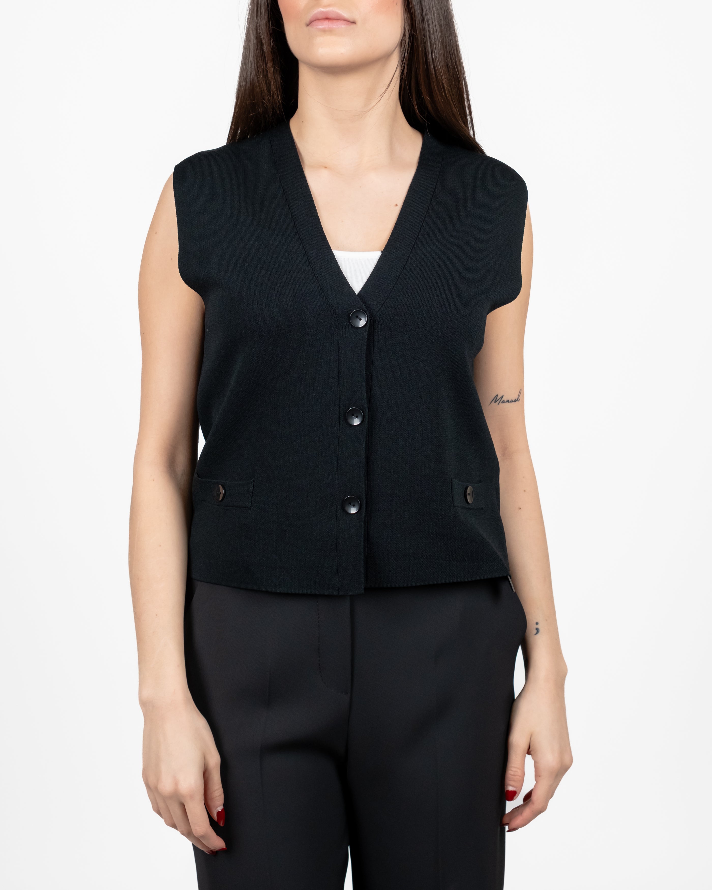 Via Vai Gilet Maglia Tre Bottoni - NERO