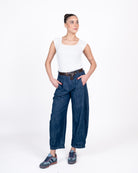 Jeans barrel con elastico dietro.