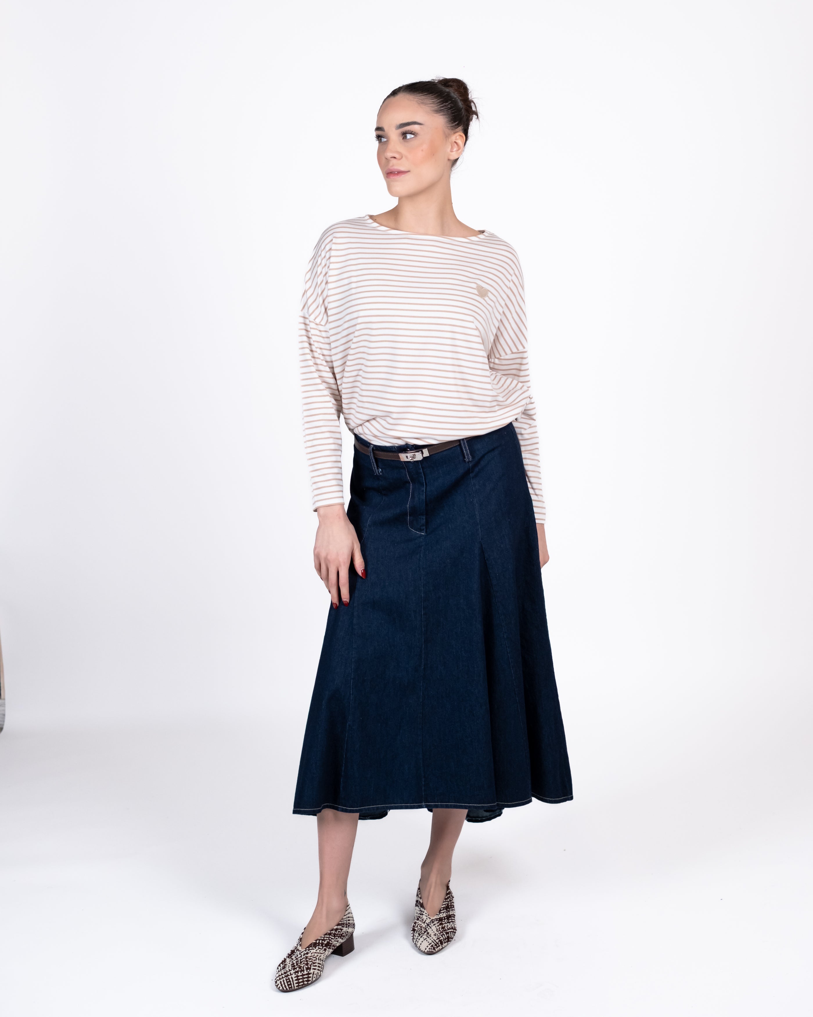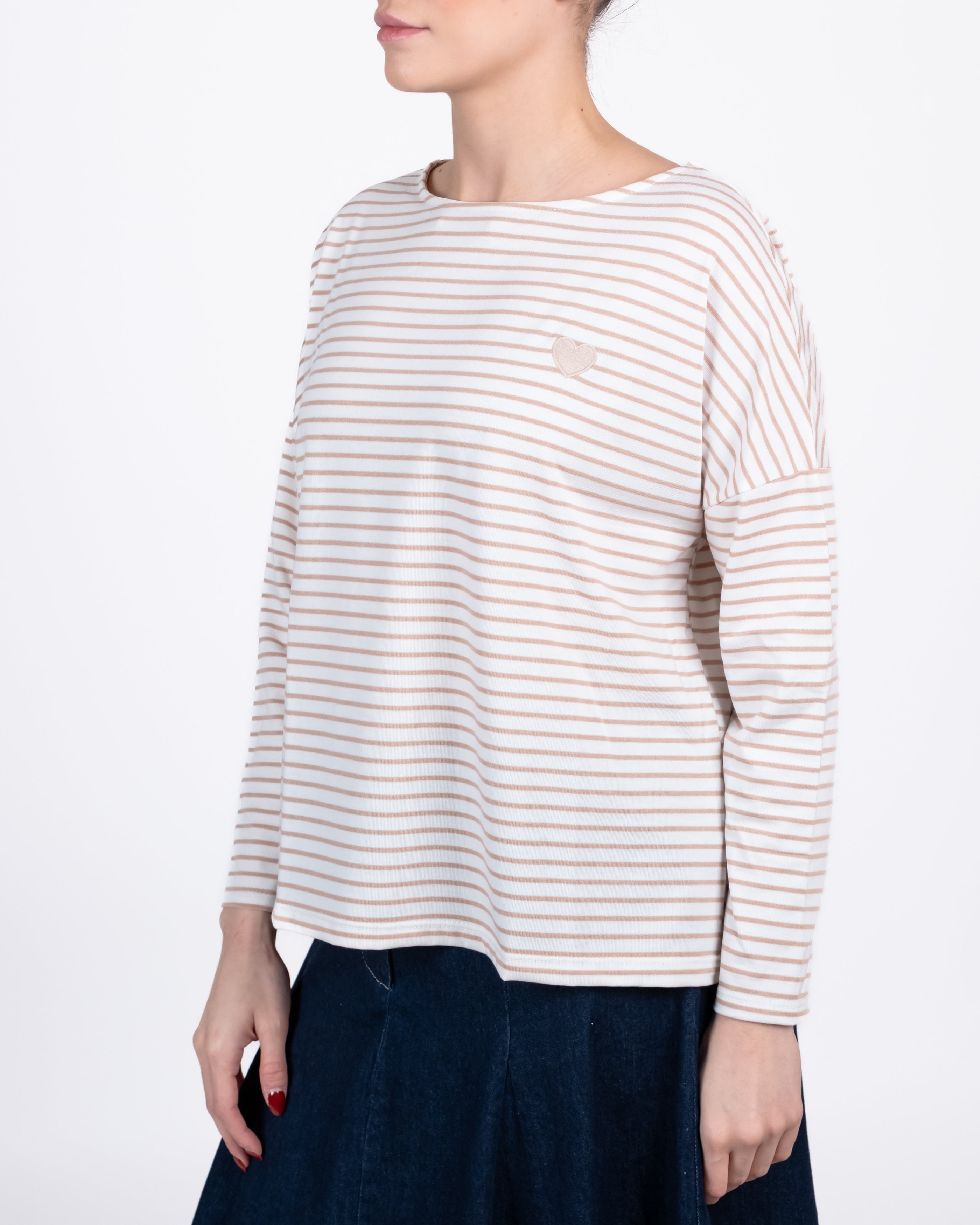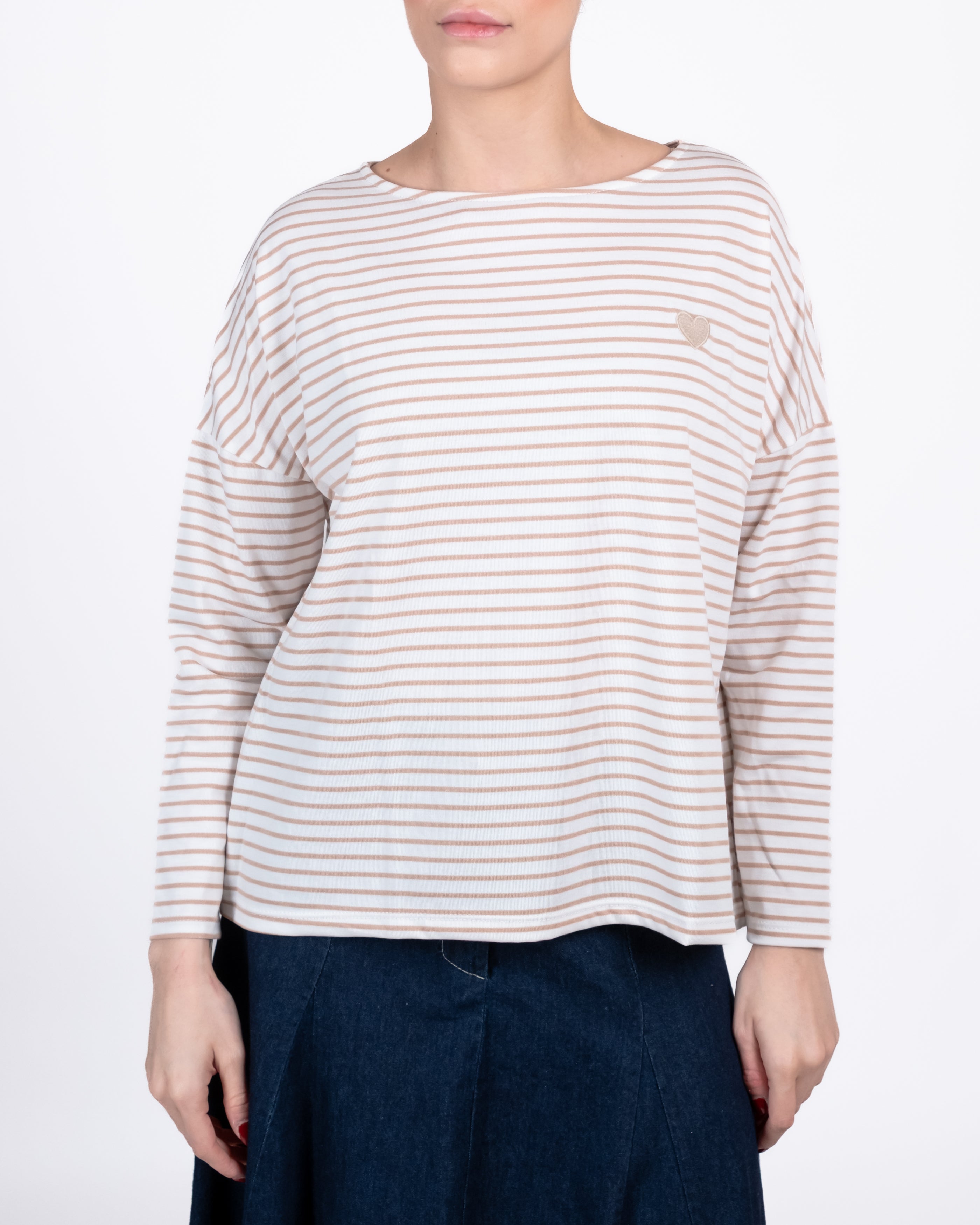 Susy Mix Maglia Scatolina Righe C/Cuore - BEIGE