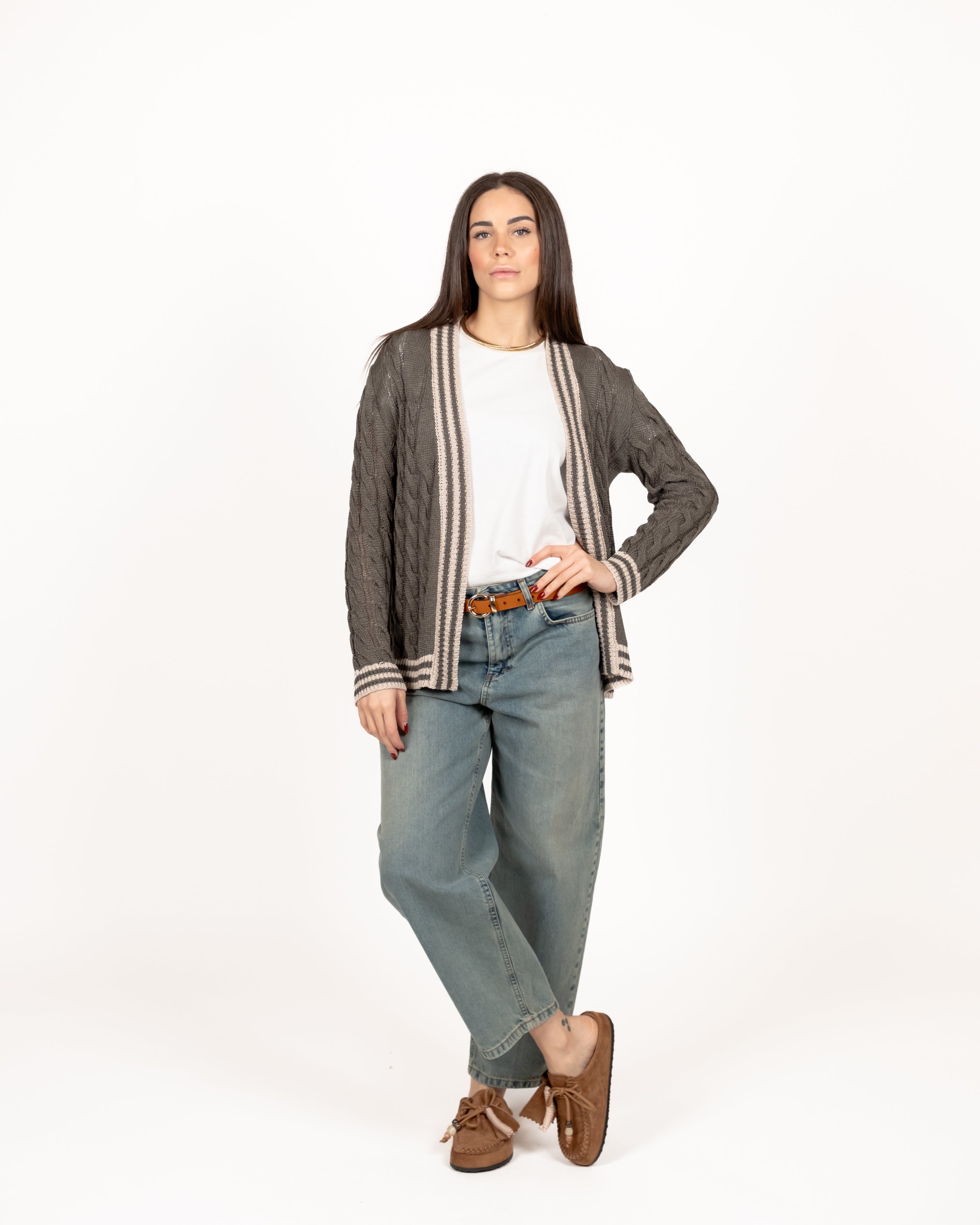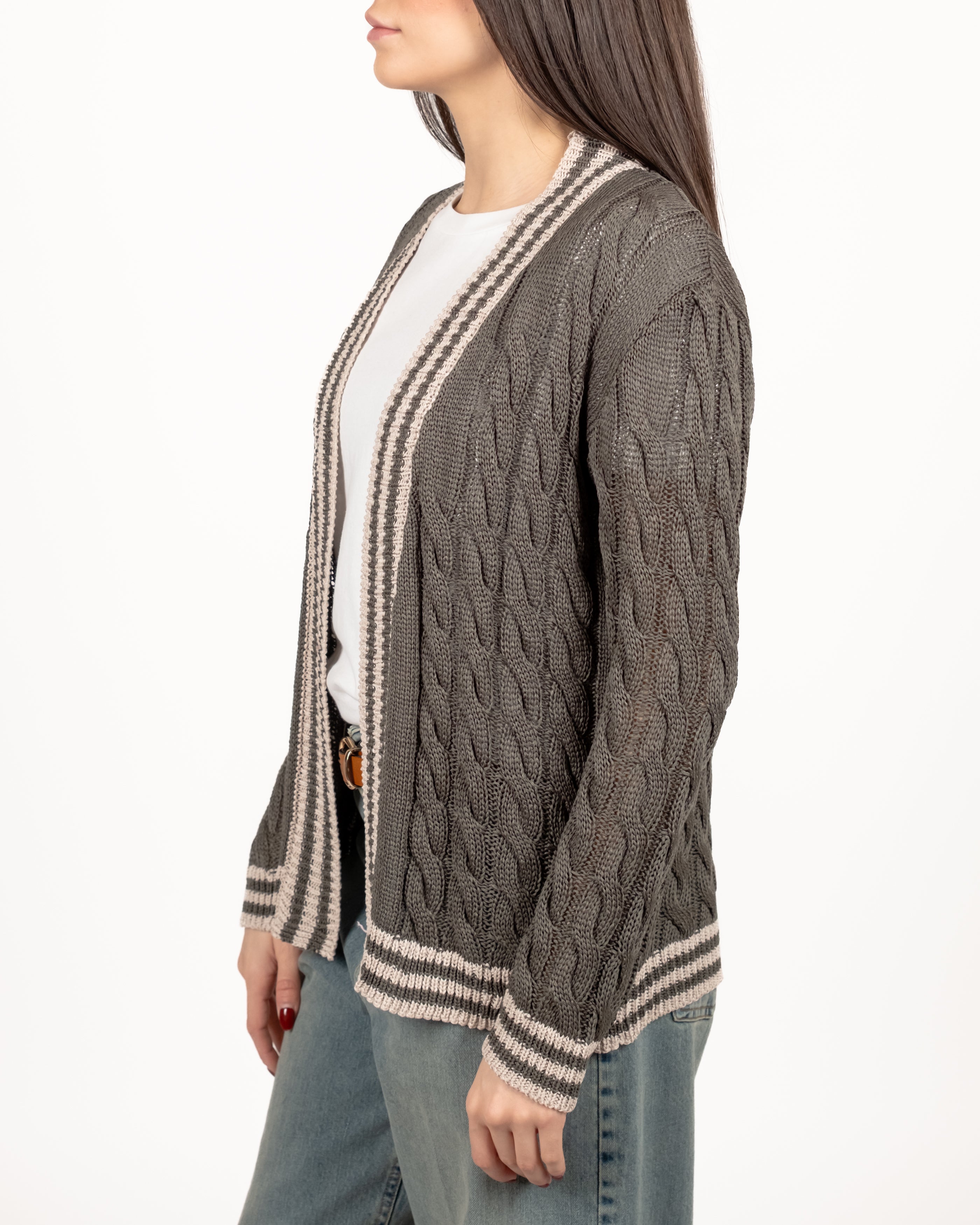 Susy Mix Cardigan Treccia/Riga - MILITARE