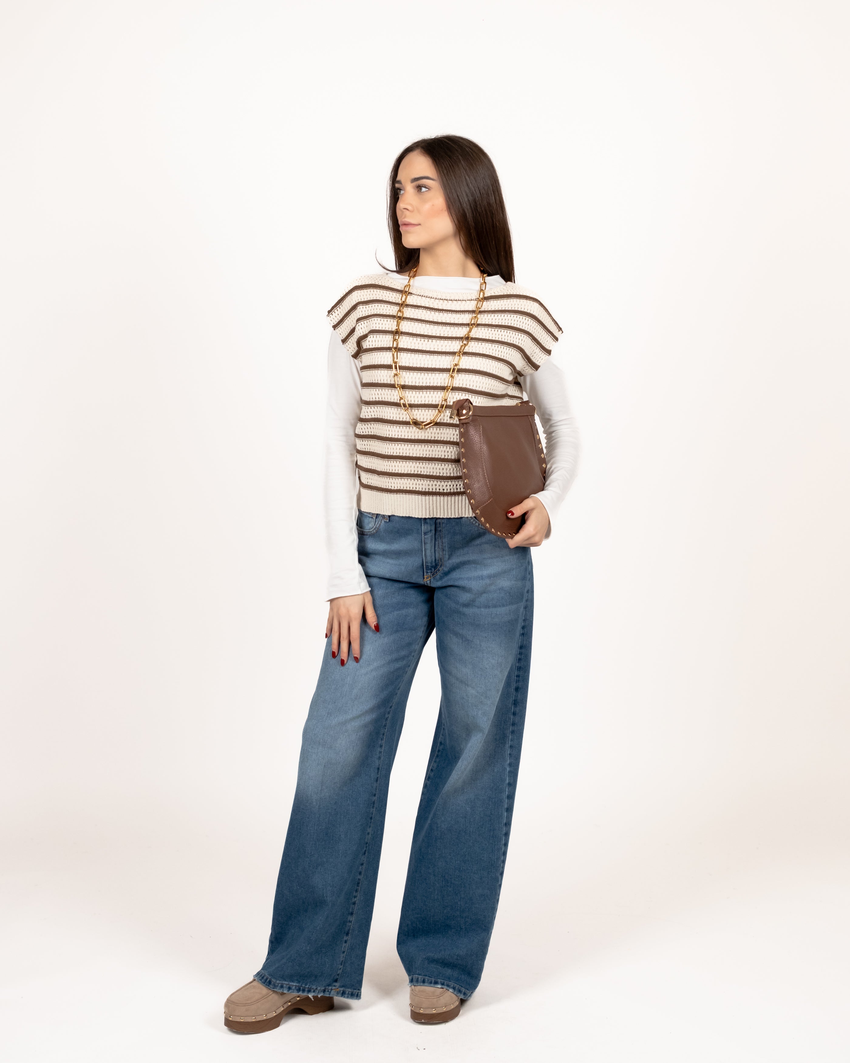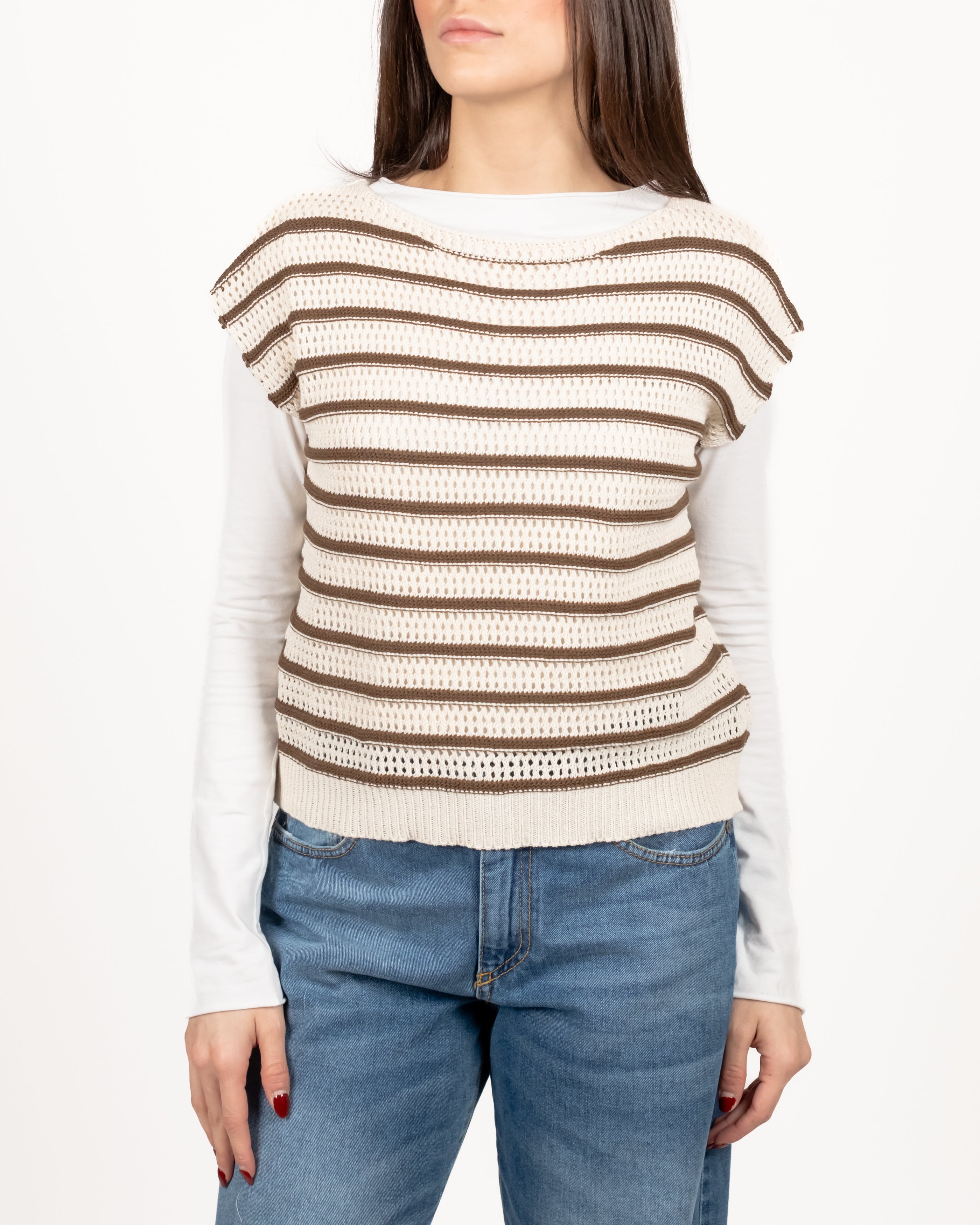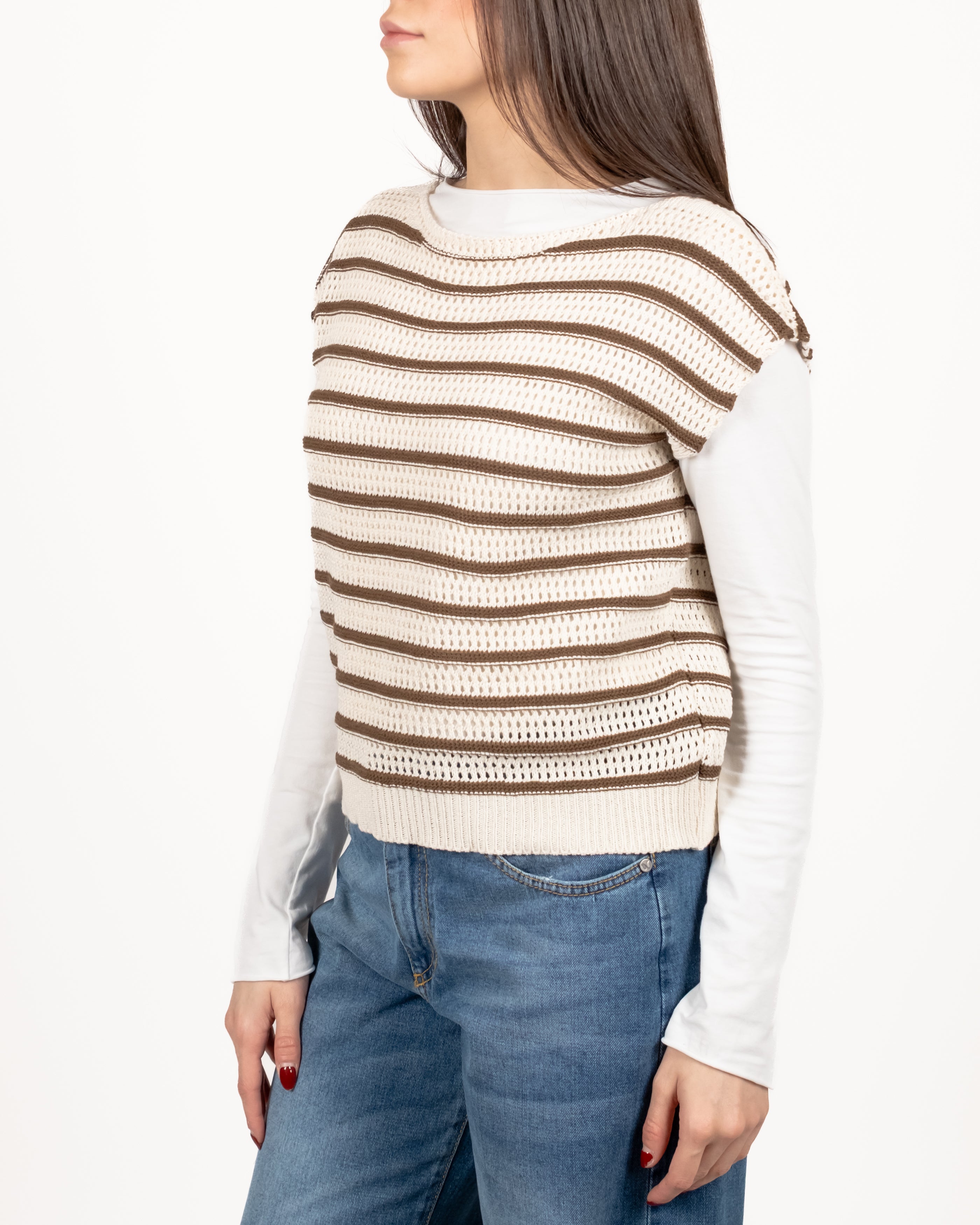 Susy Mix Gilet Over Riga - Tabacco