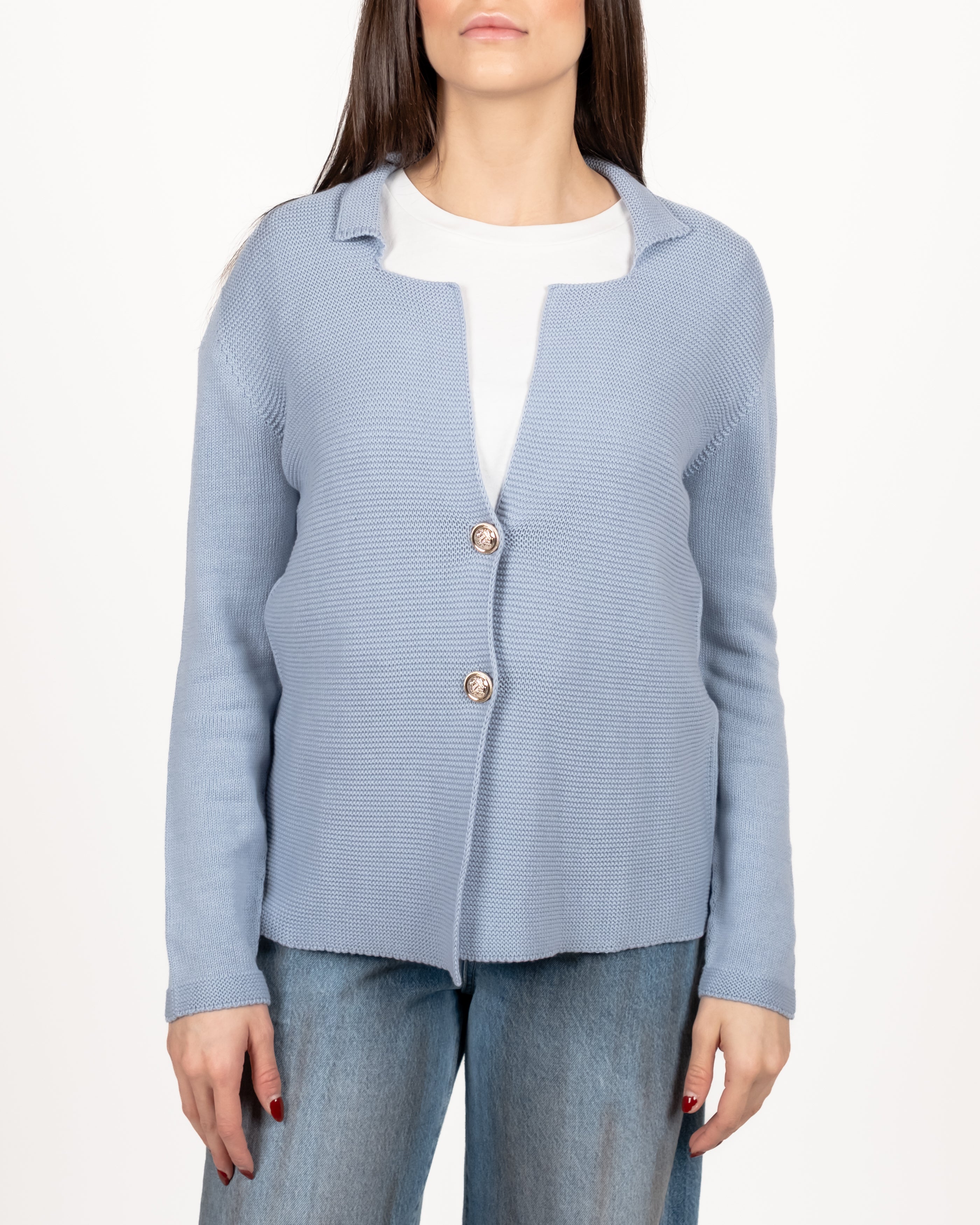 Susy Mix Giacca Maglia Due Bottoni - CELESTE