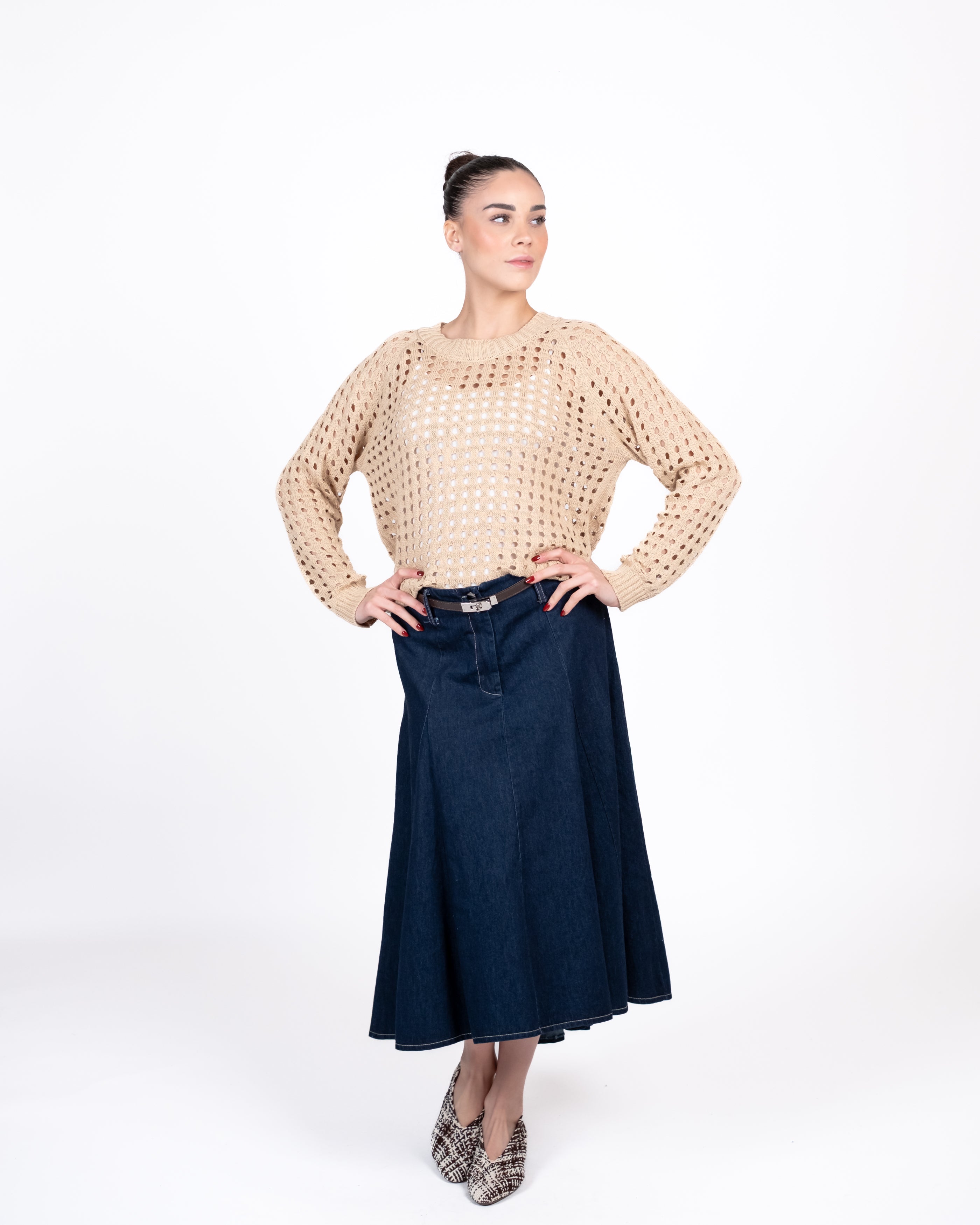 Susy Mix Maglia Traforata - BEIGE
