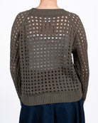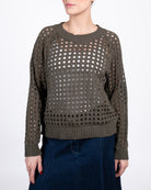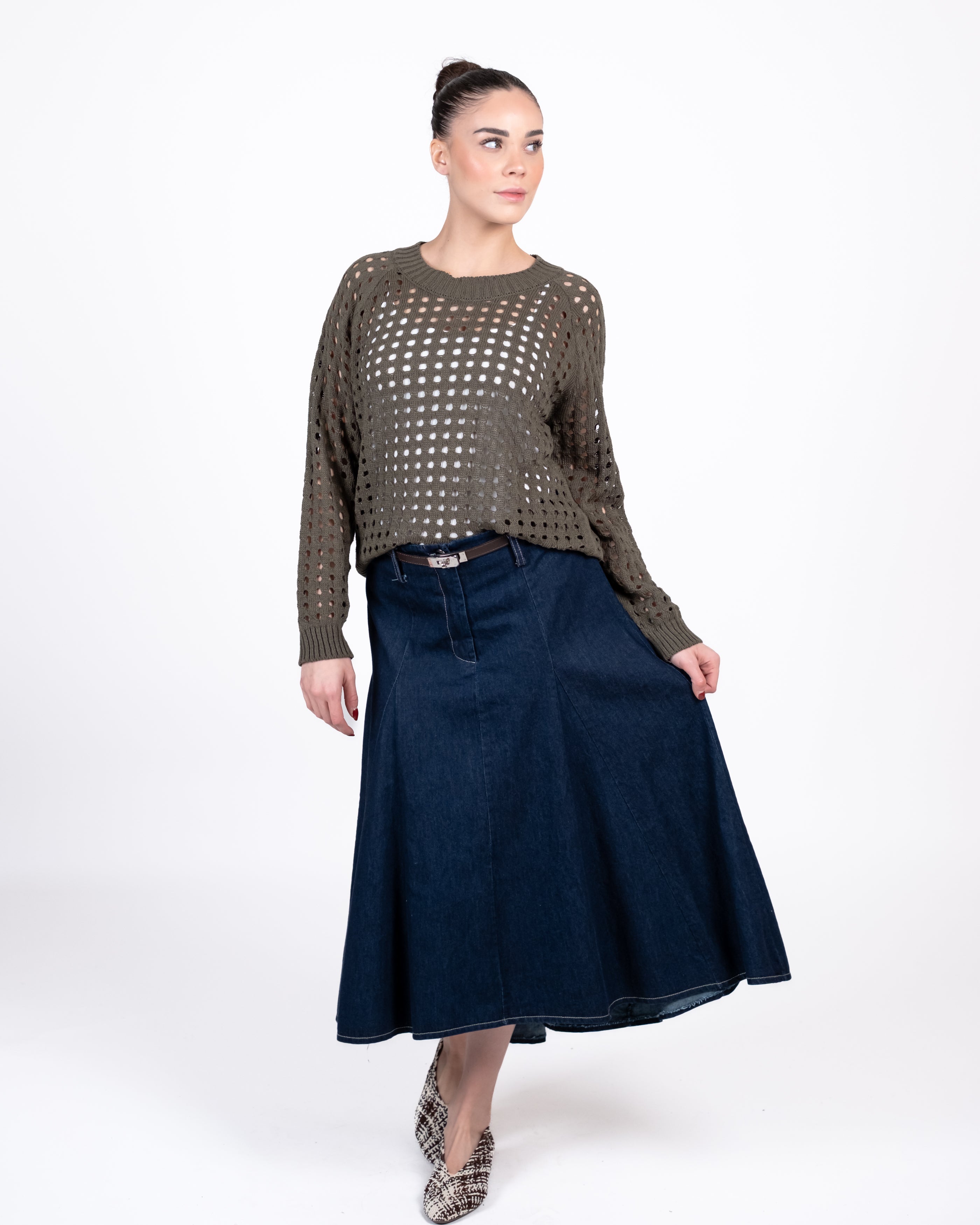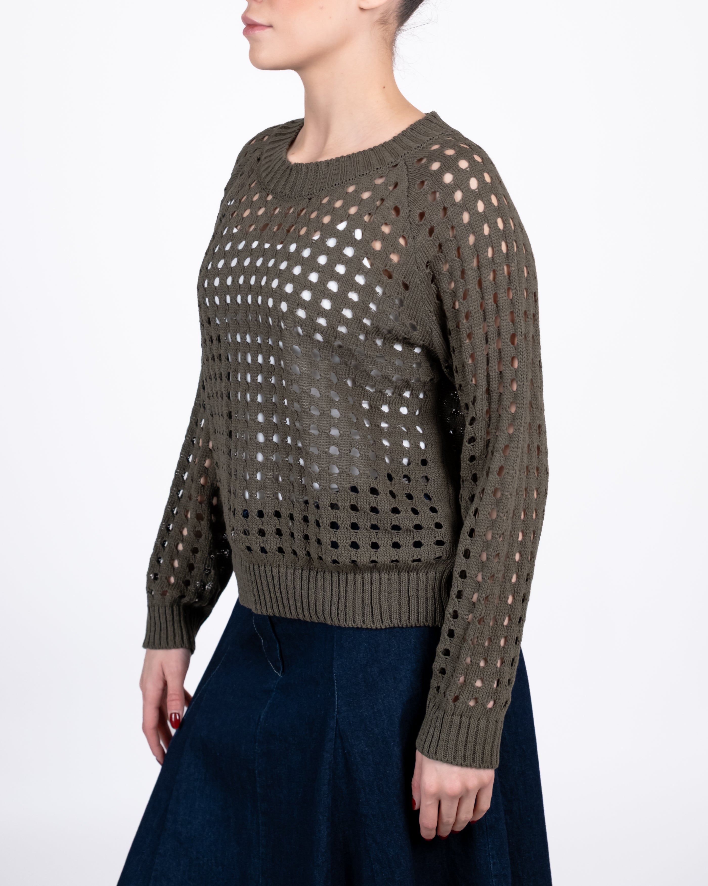 Maglia girocollo traforata con cannolè in vita e polsino.