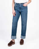 Jeans modello Maggie elasticizzato e con gamba dritta.