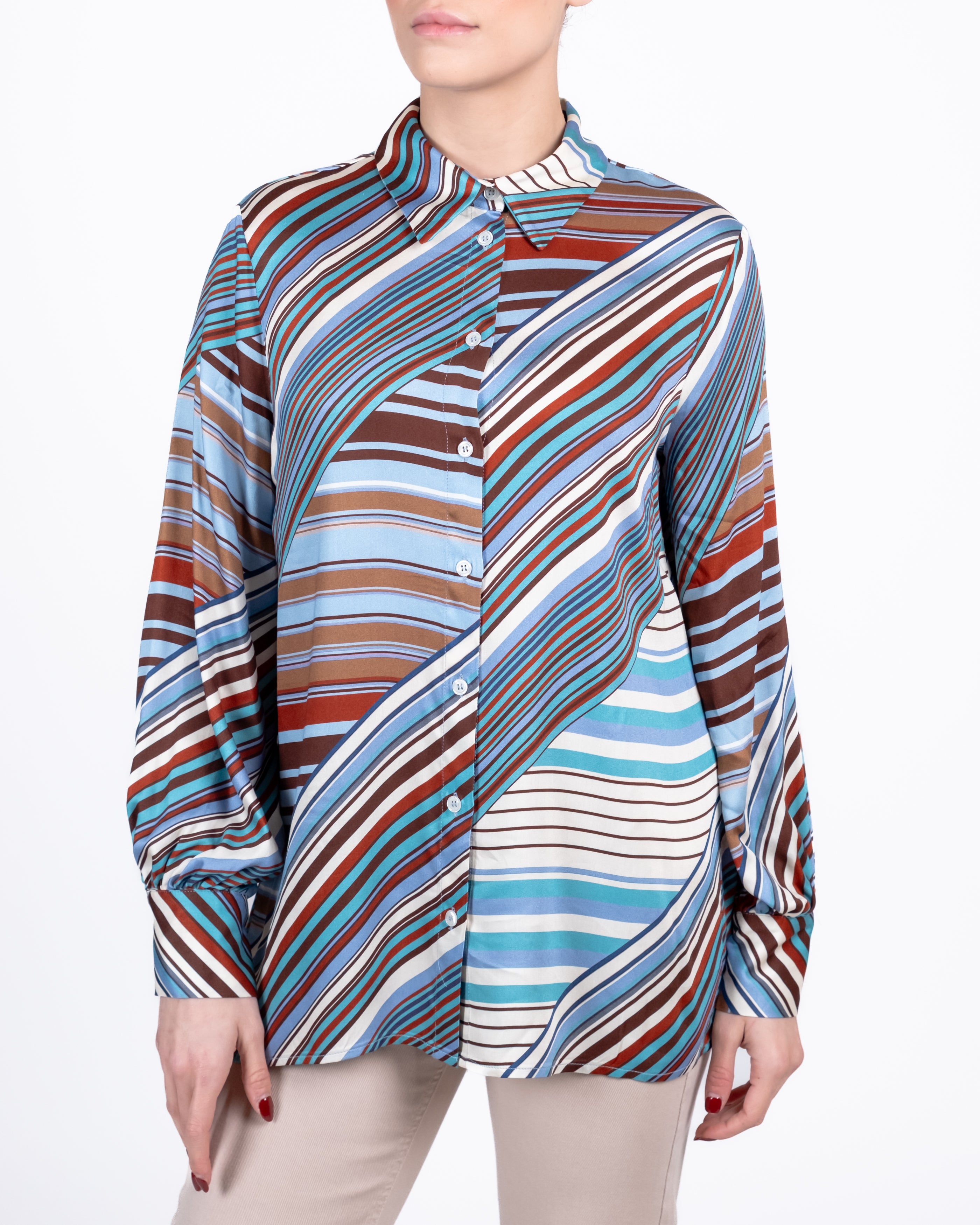 Camicia over fantasia a righe alternate,
