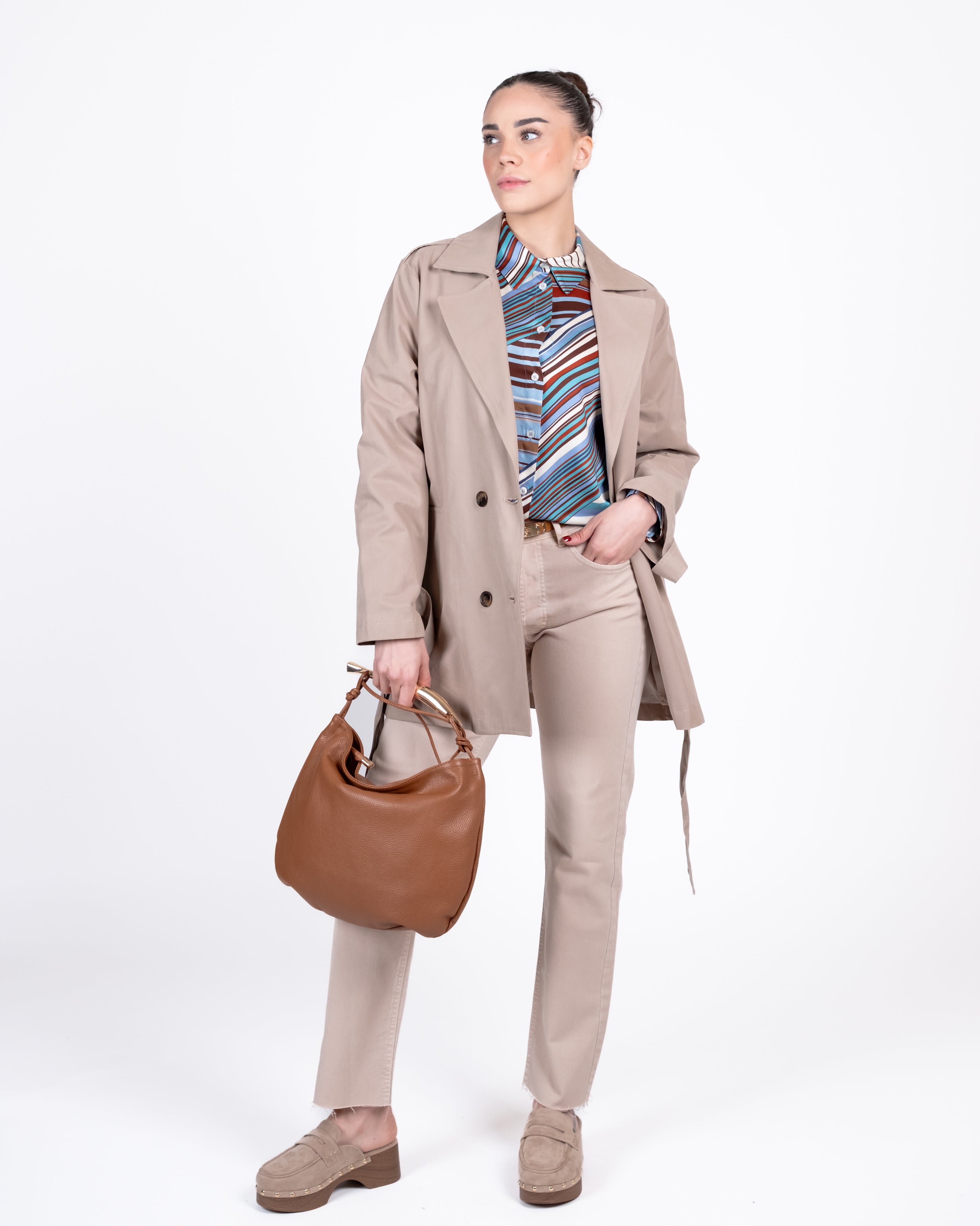 - La modella è alta 1.67 cm ed indossa una taglia S