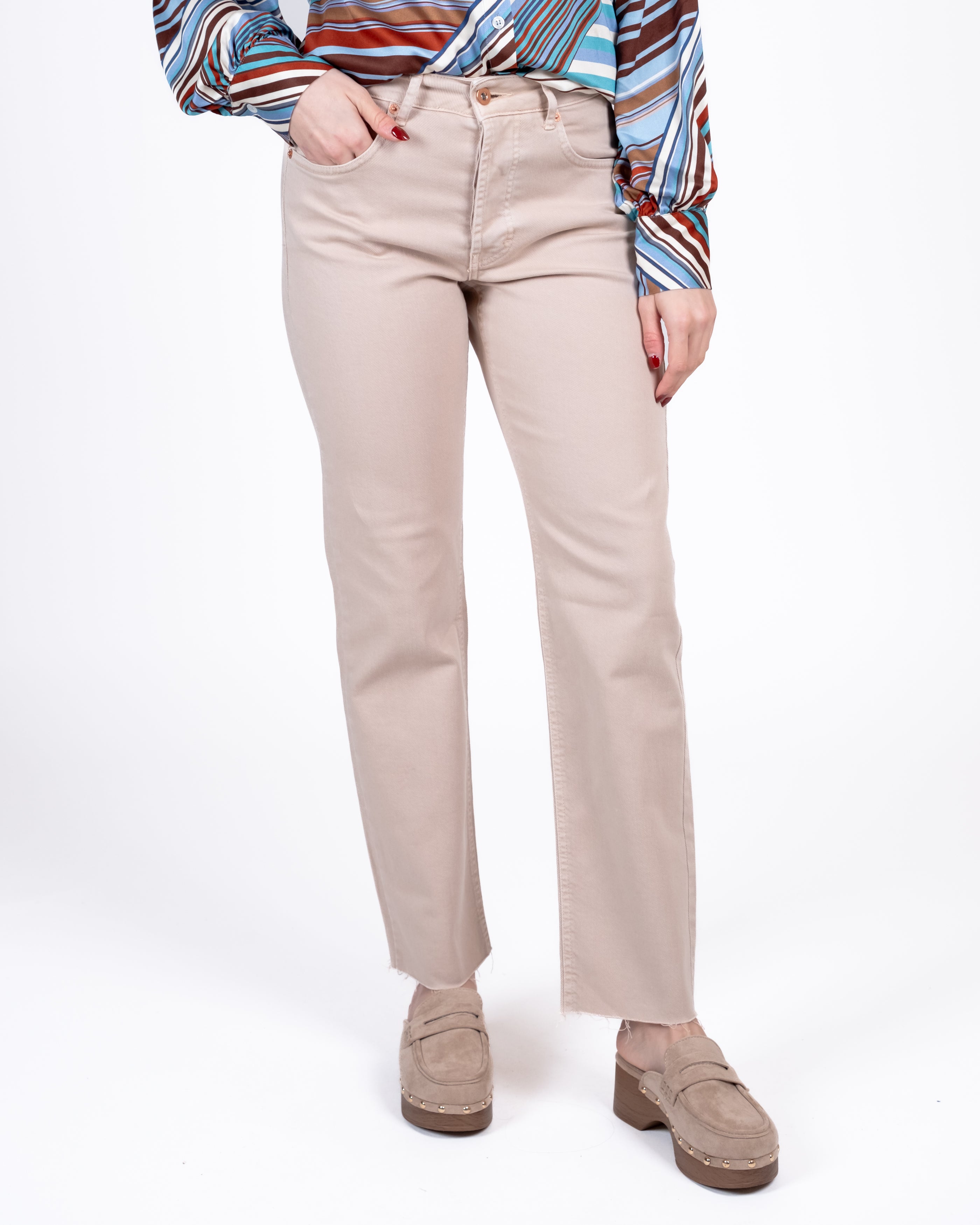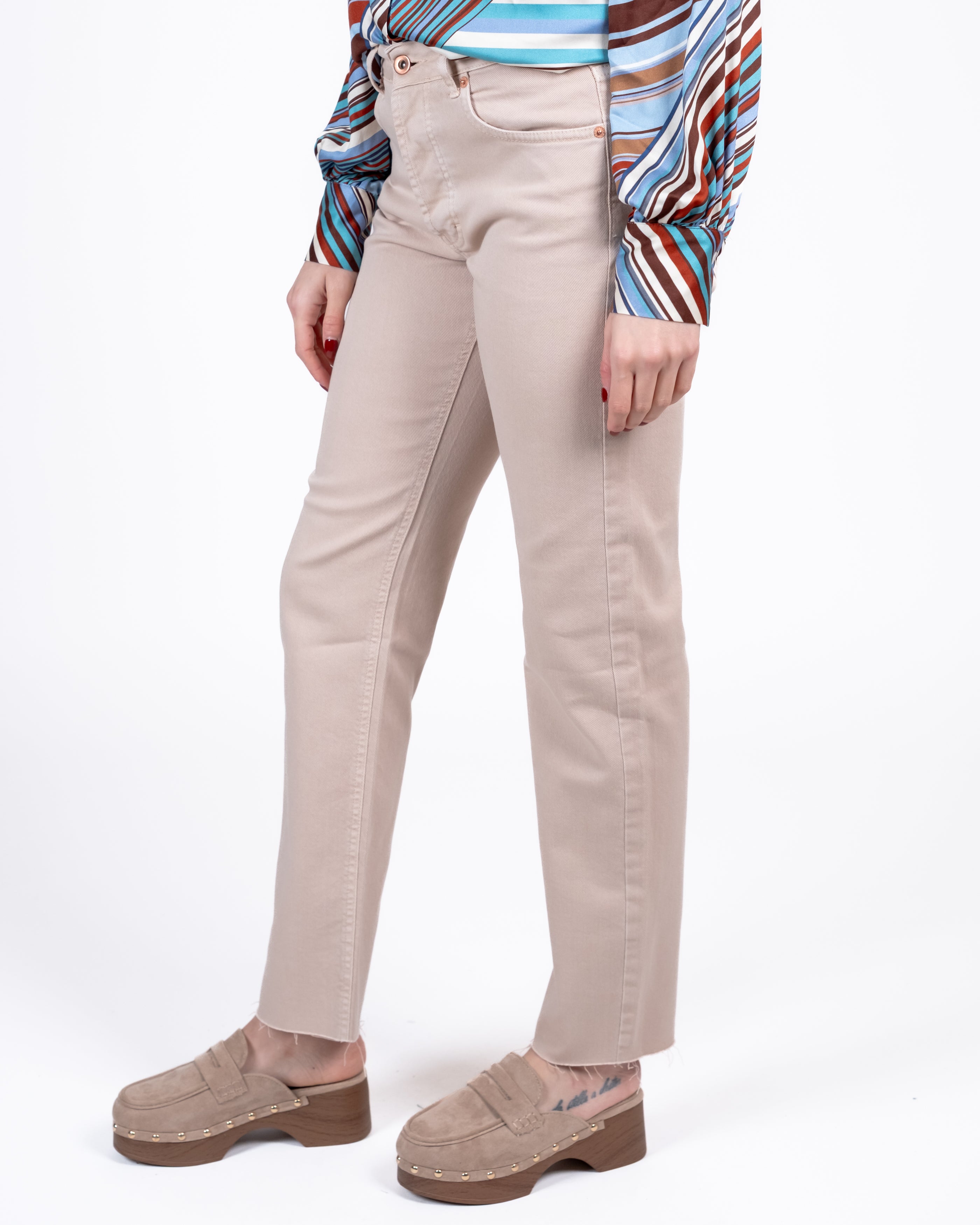 Tensione In Pantalone 5 Tasche Sfrangiato - BEIGE