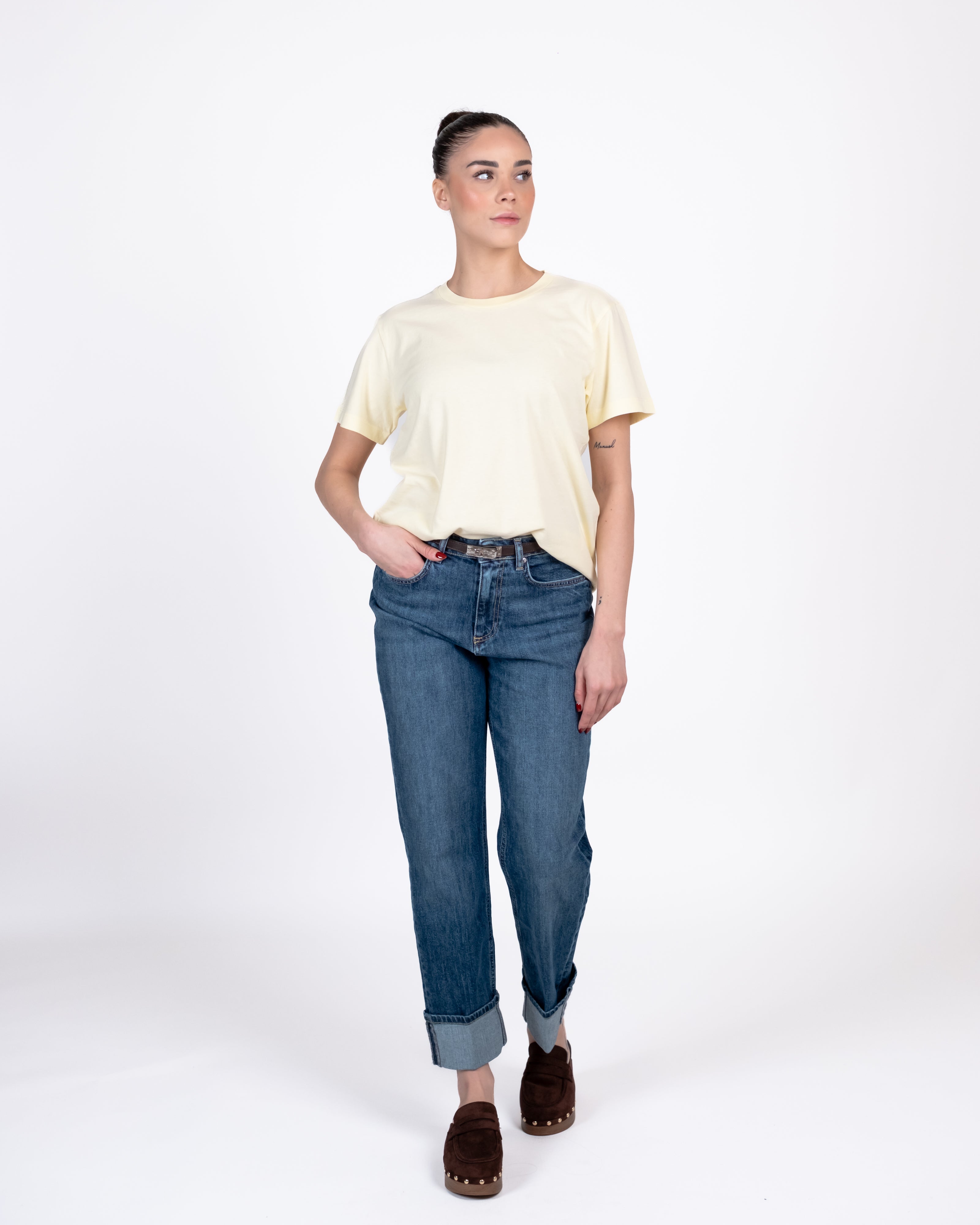 T-shirt girocollo in catone manica corta.