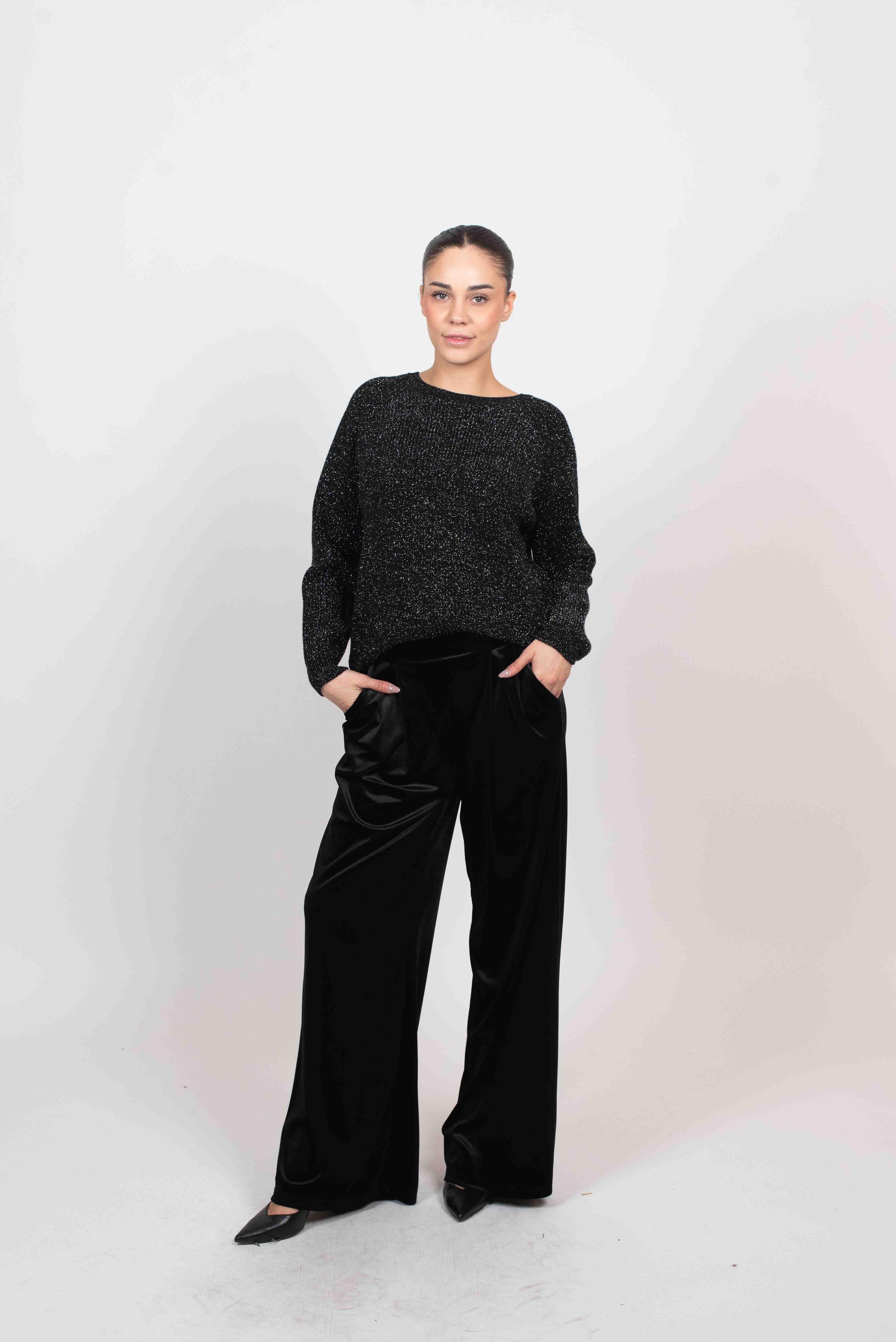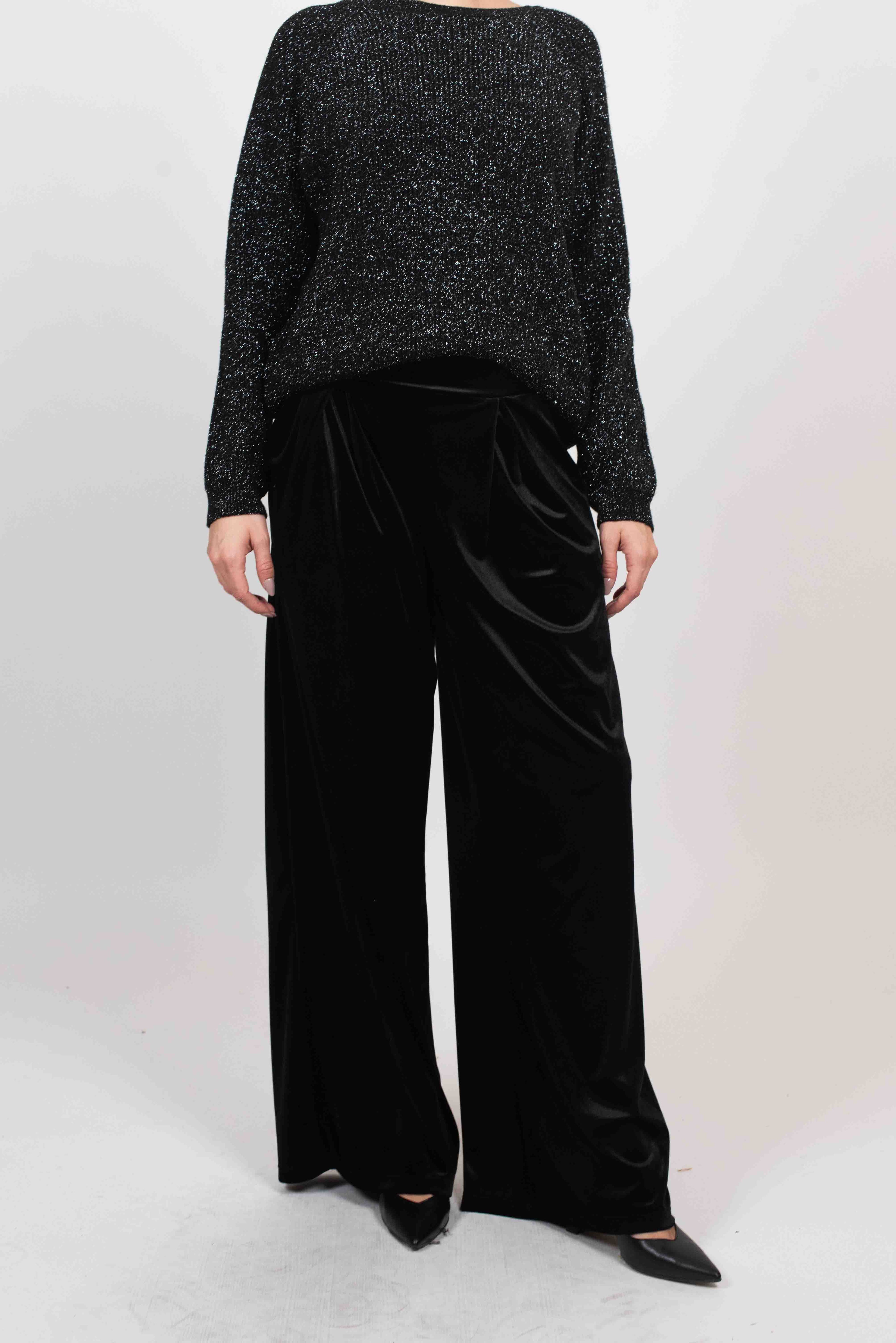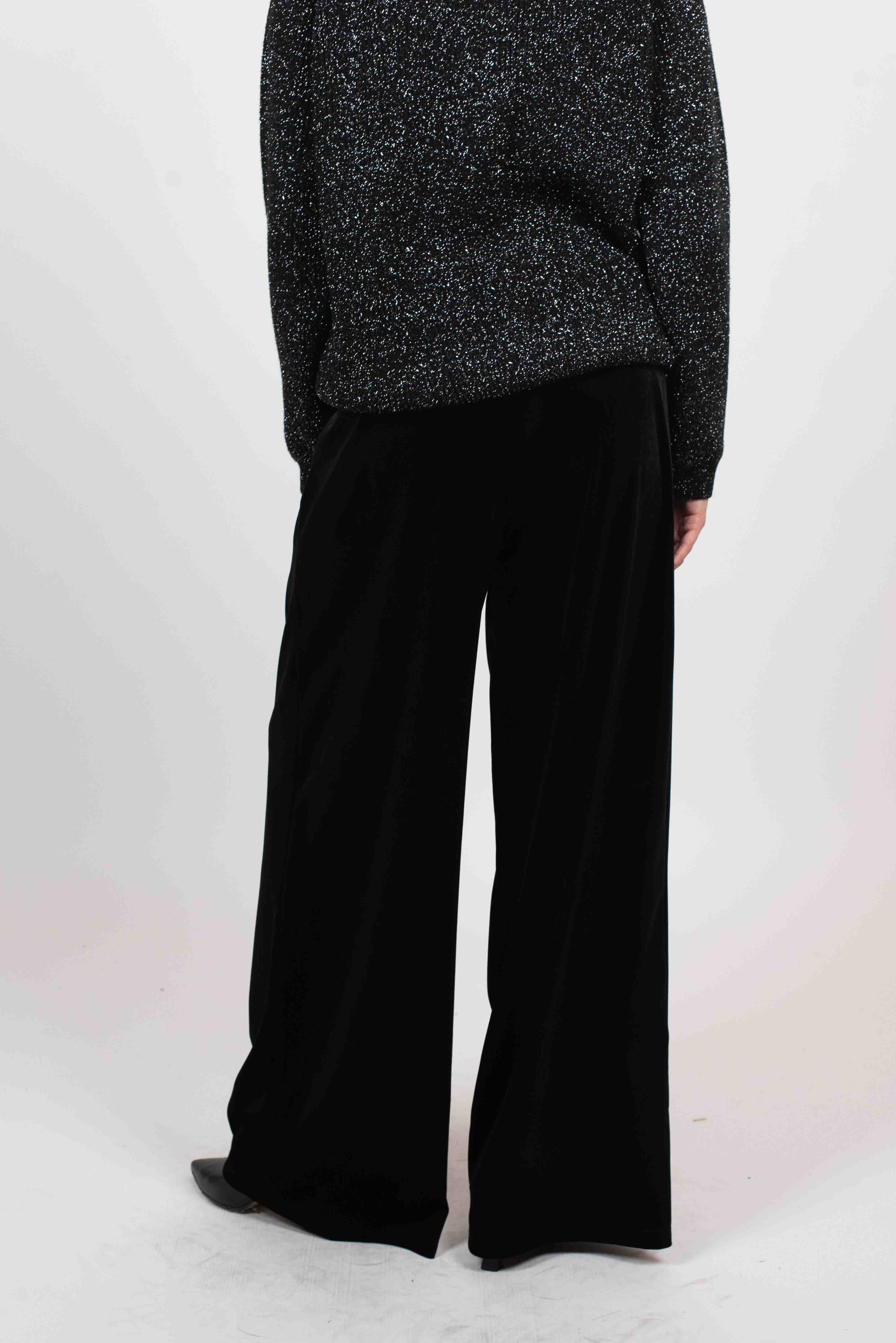 Tensione In Pantalone Palazzo Velluto C/Pinces - NERO