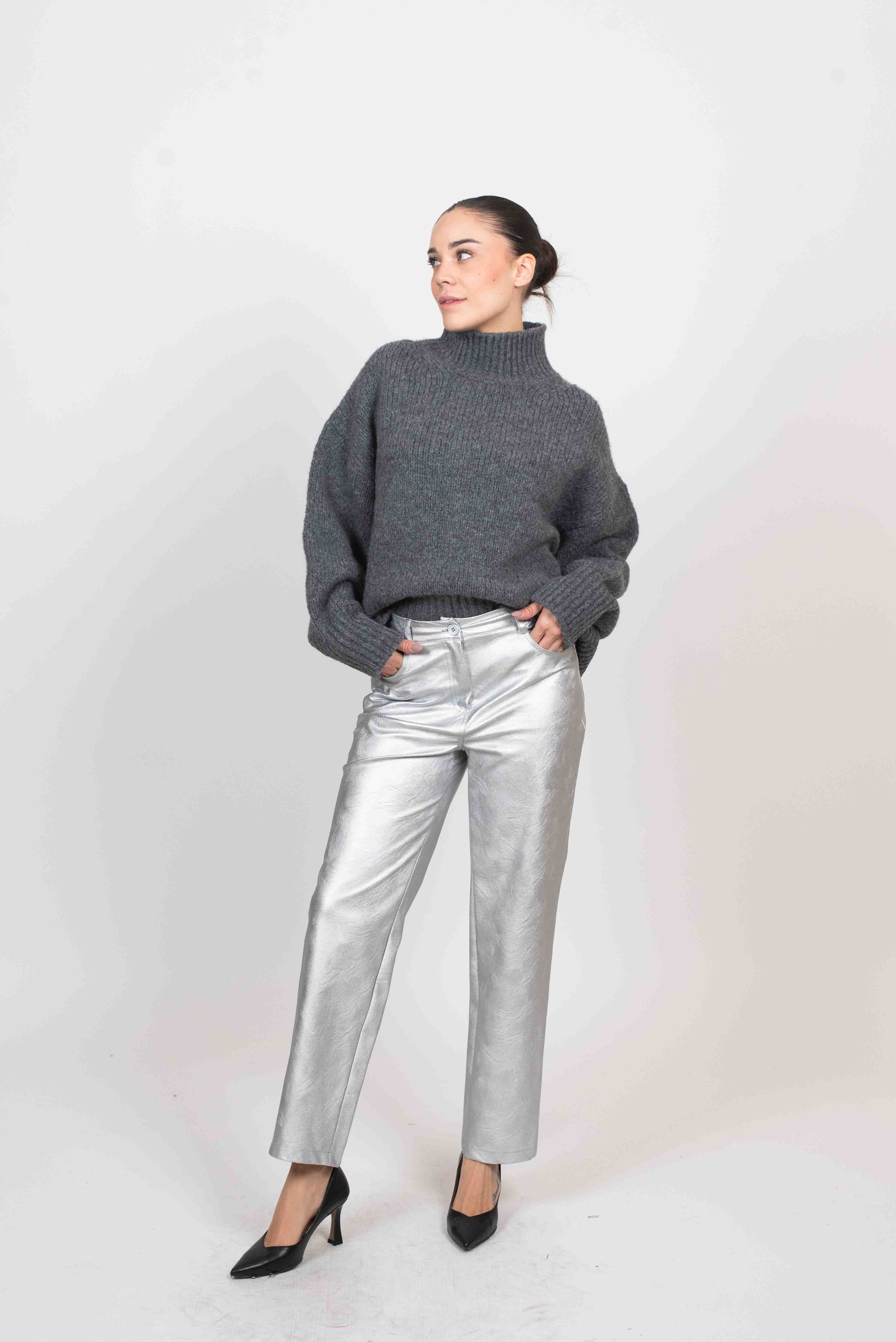 Tensione In Pantalone Ecopelle - ARGENTO
