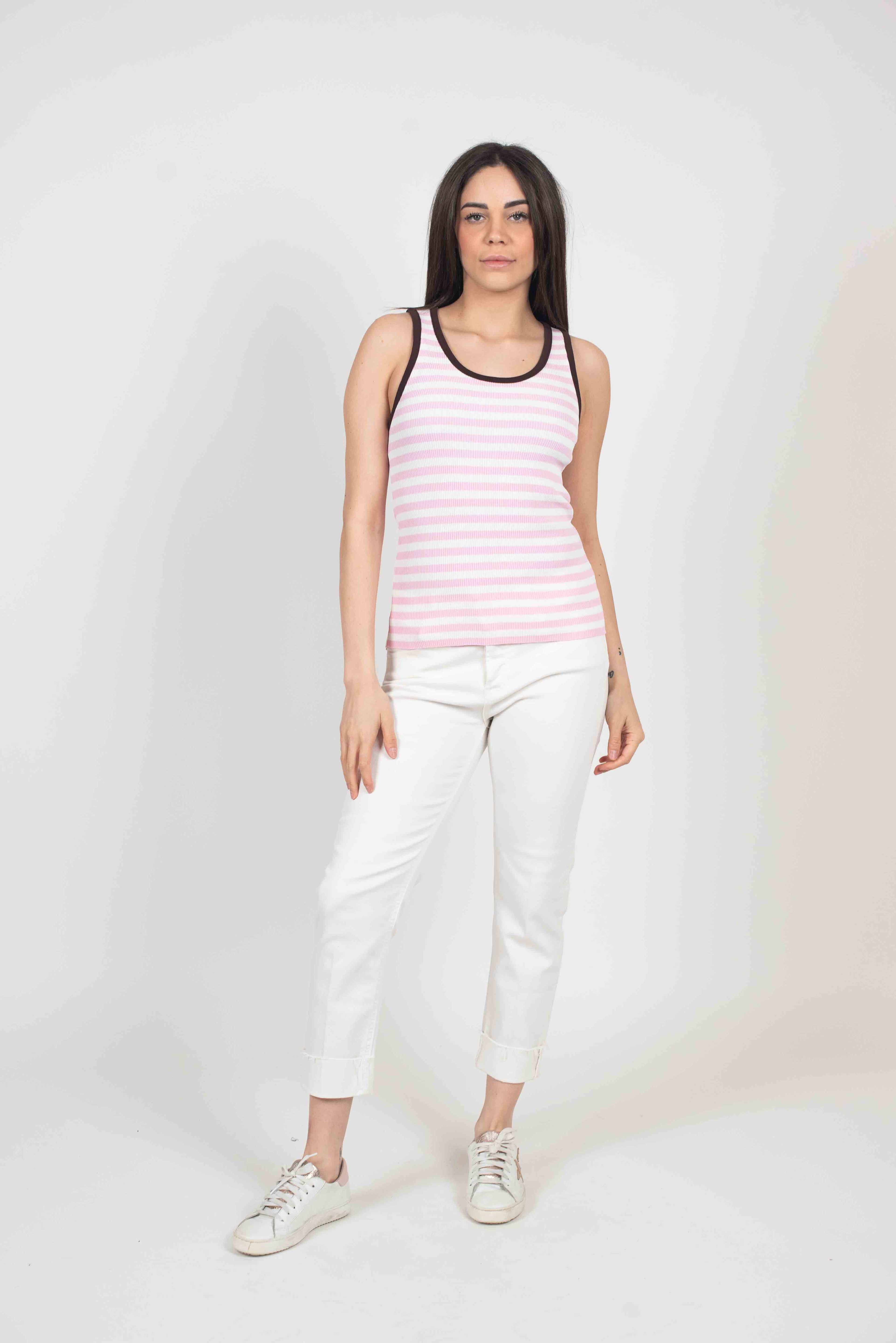Tensione In Canotta Righe Costine - BIANCO/ROSA