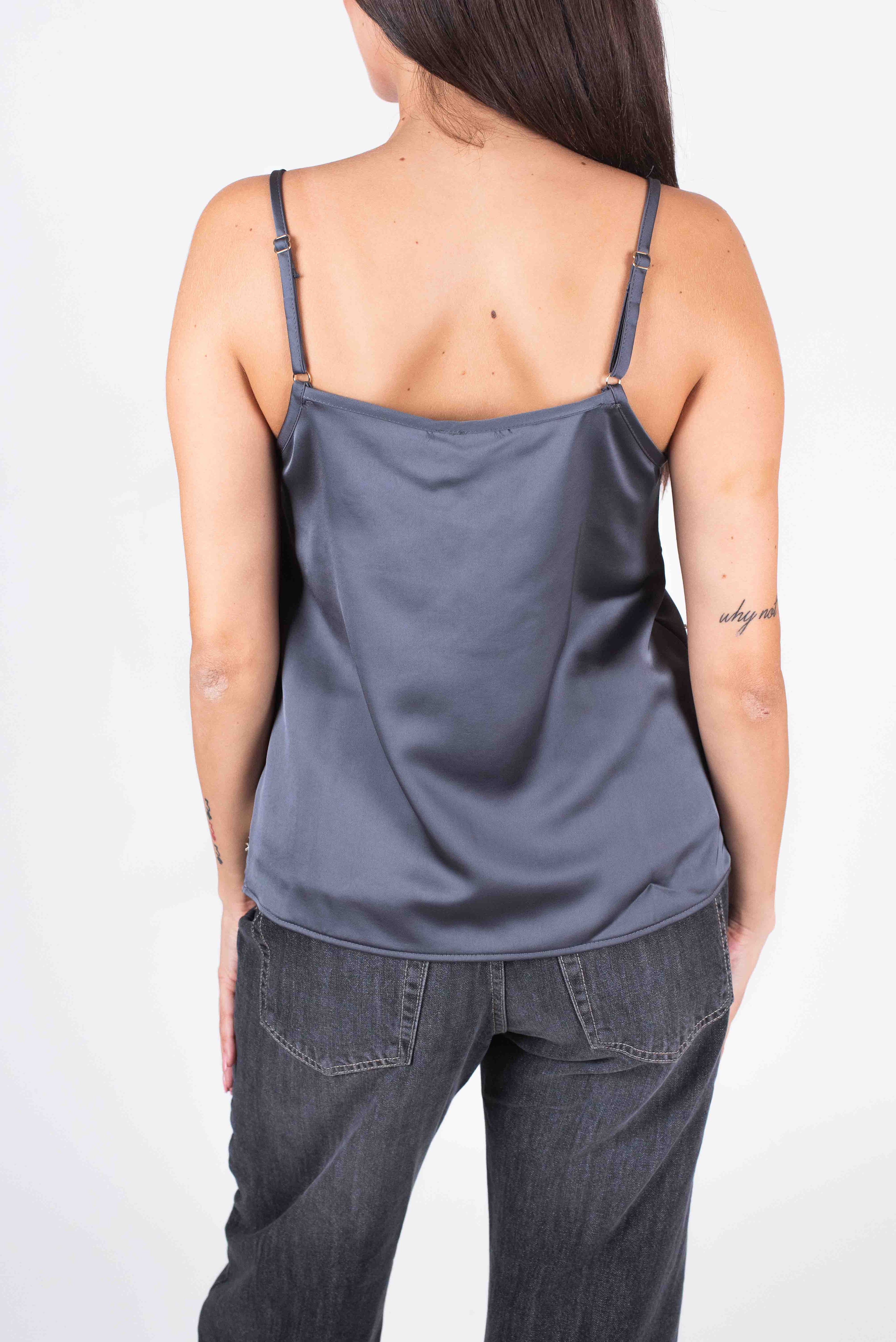 Top in raso con ricamo in pizzo e spallina regolabile.