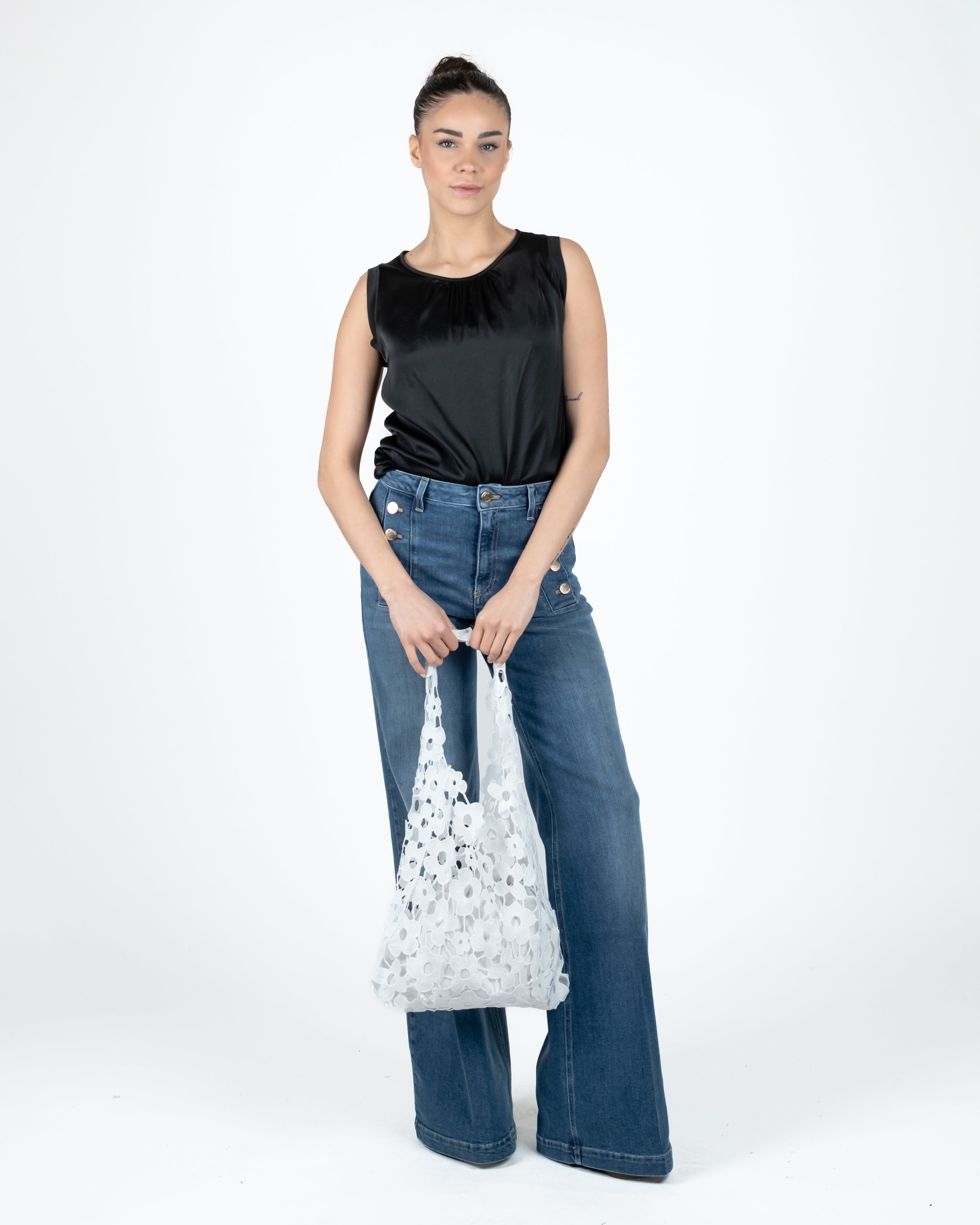 Top con collo arricciato.