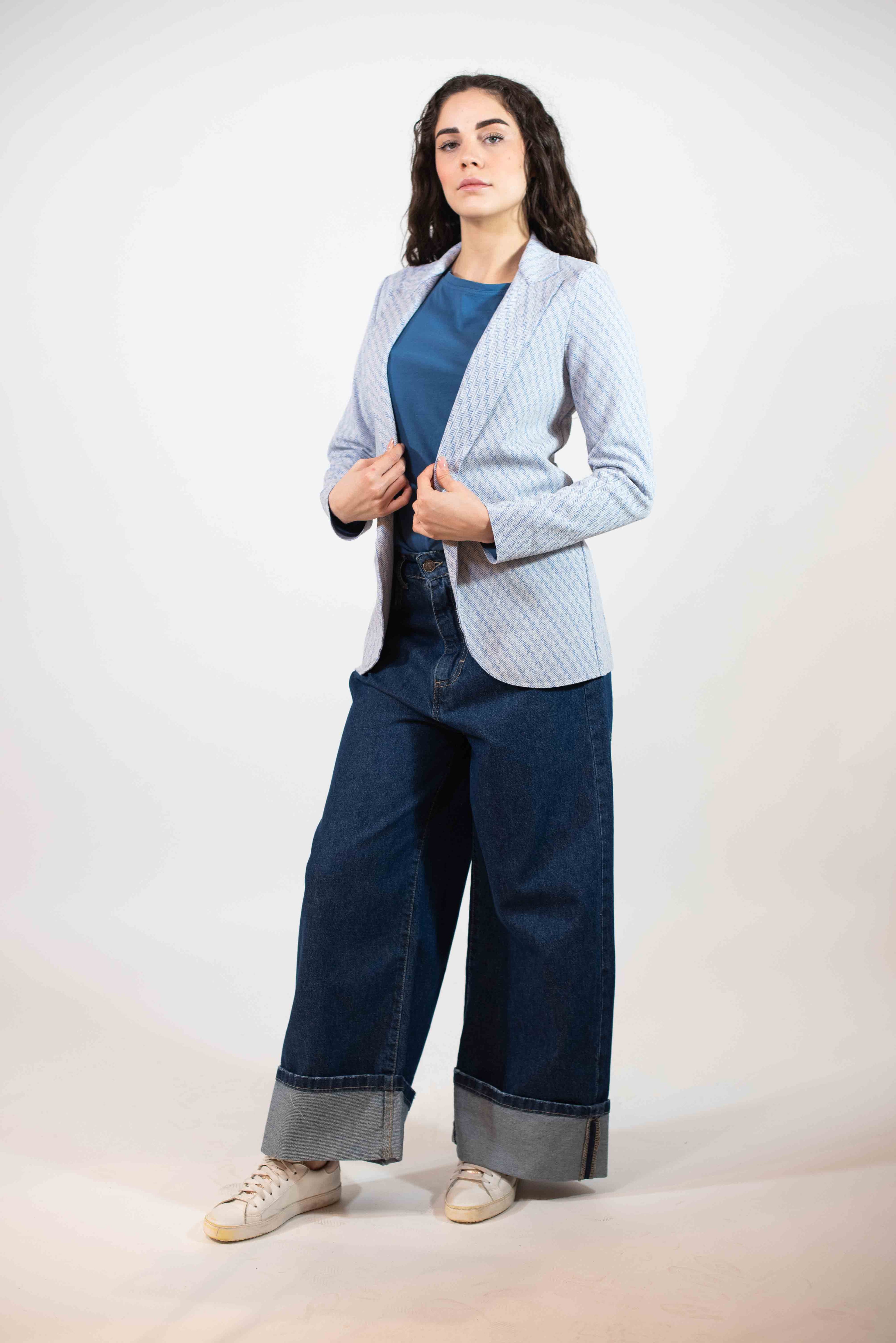 Via Vai Giacca Fantasia Spigata C/Lurex - CELESTE