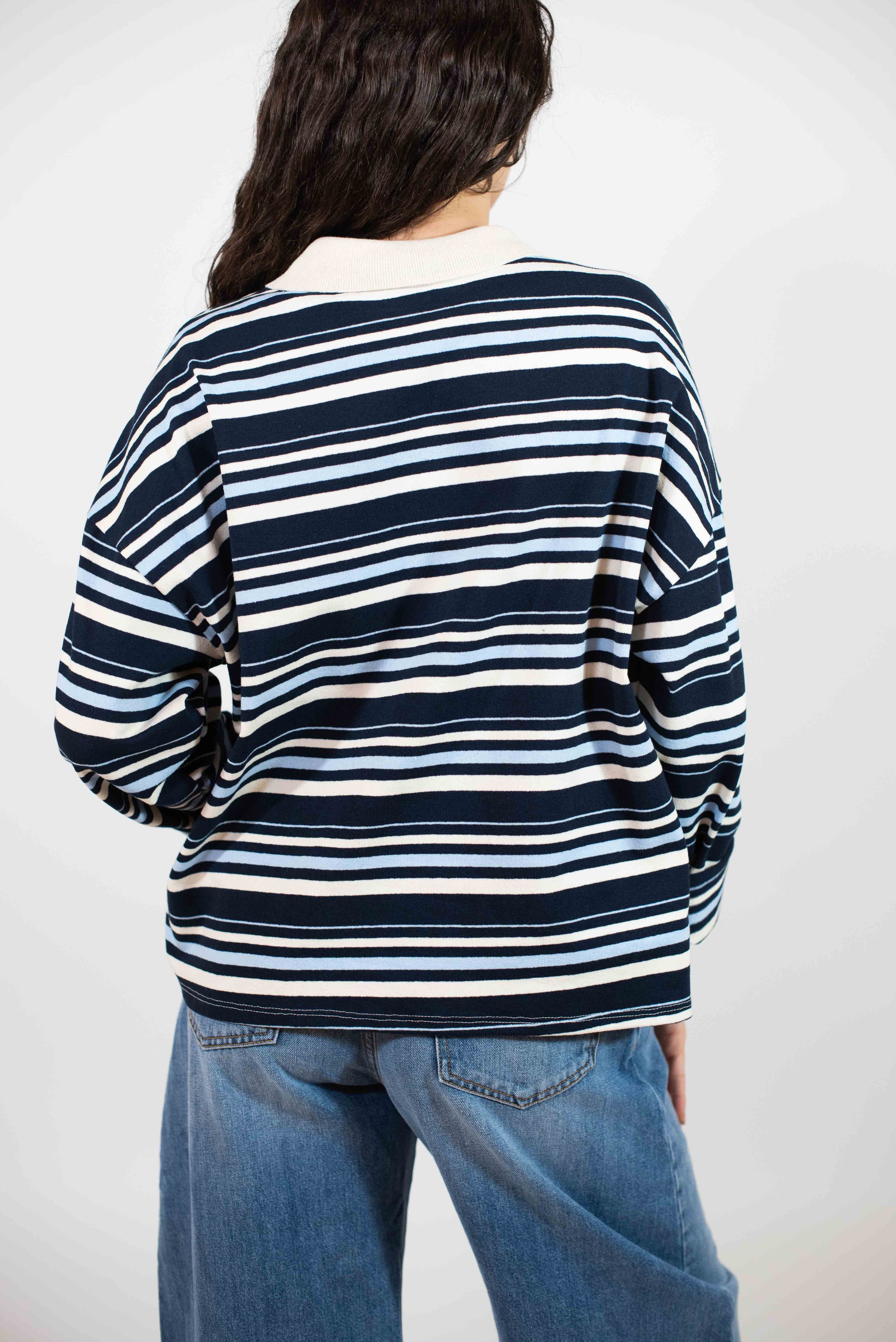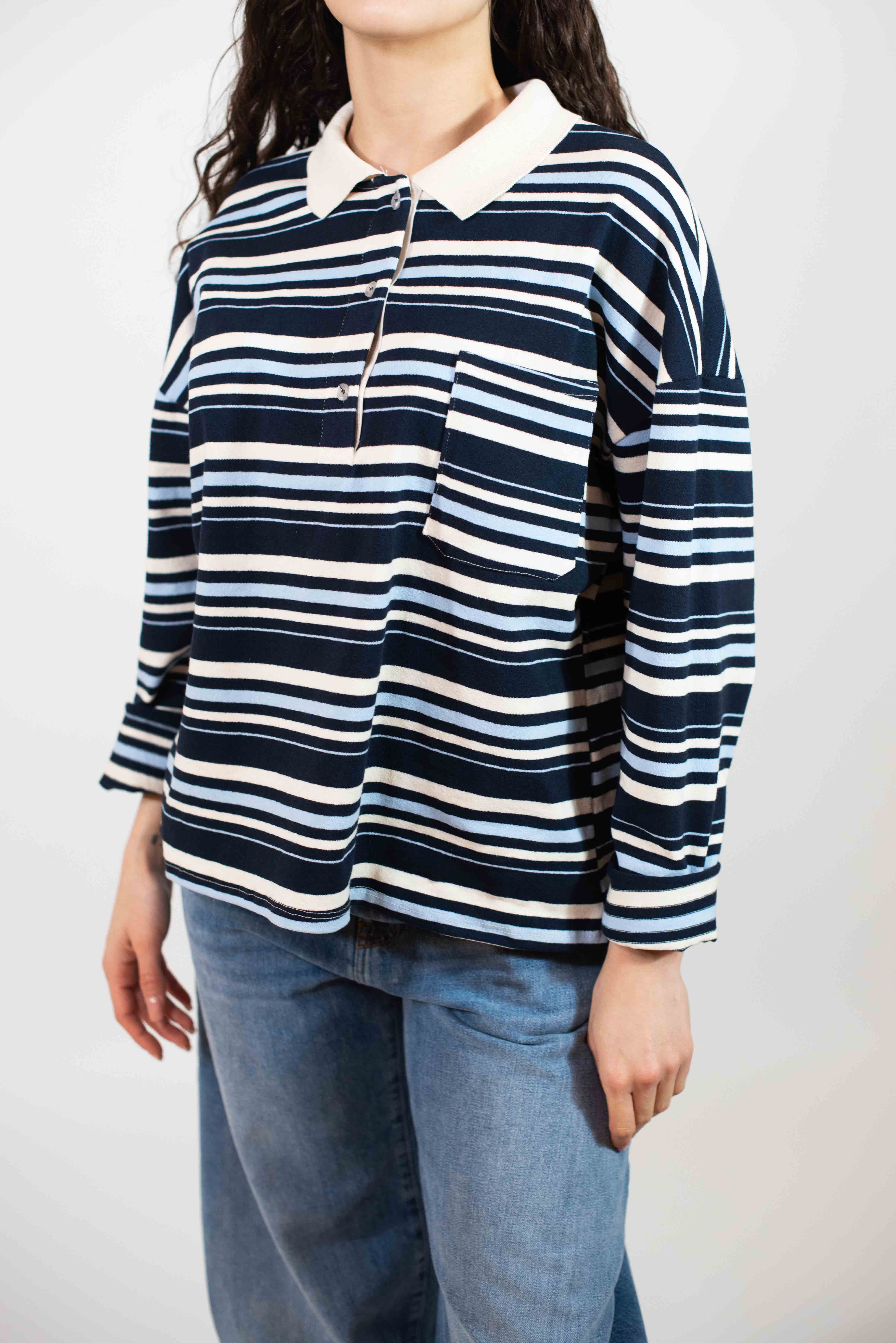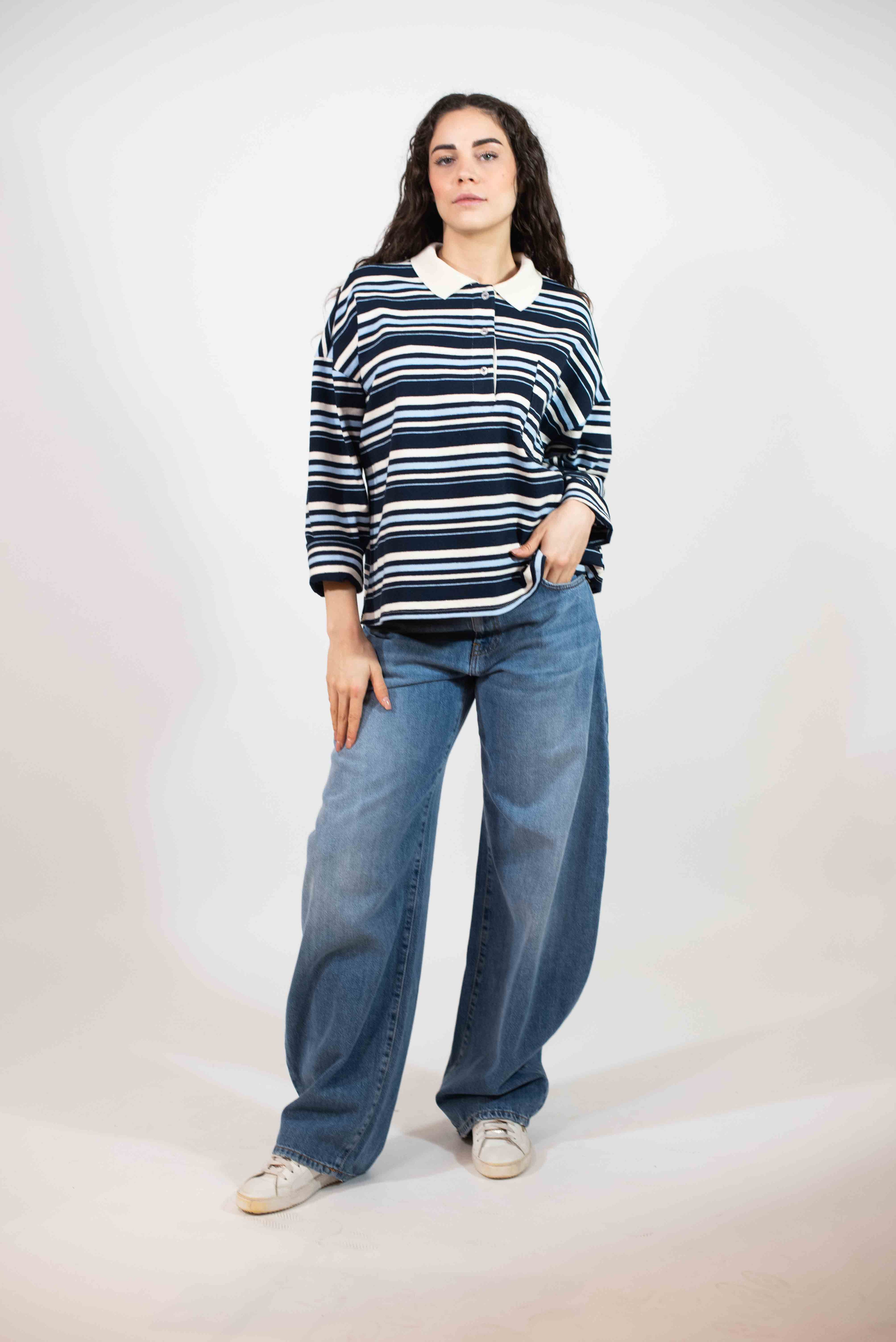 Via Vai Polo Righe Fine - BLU/LATTE/CELESTE