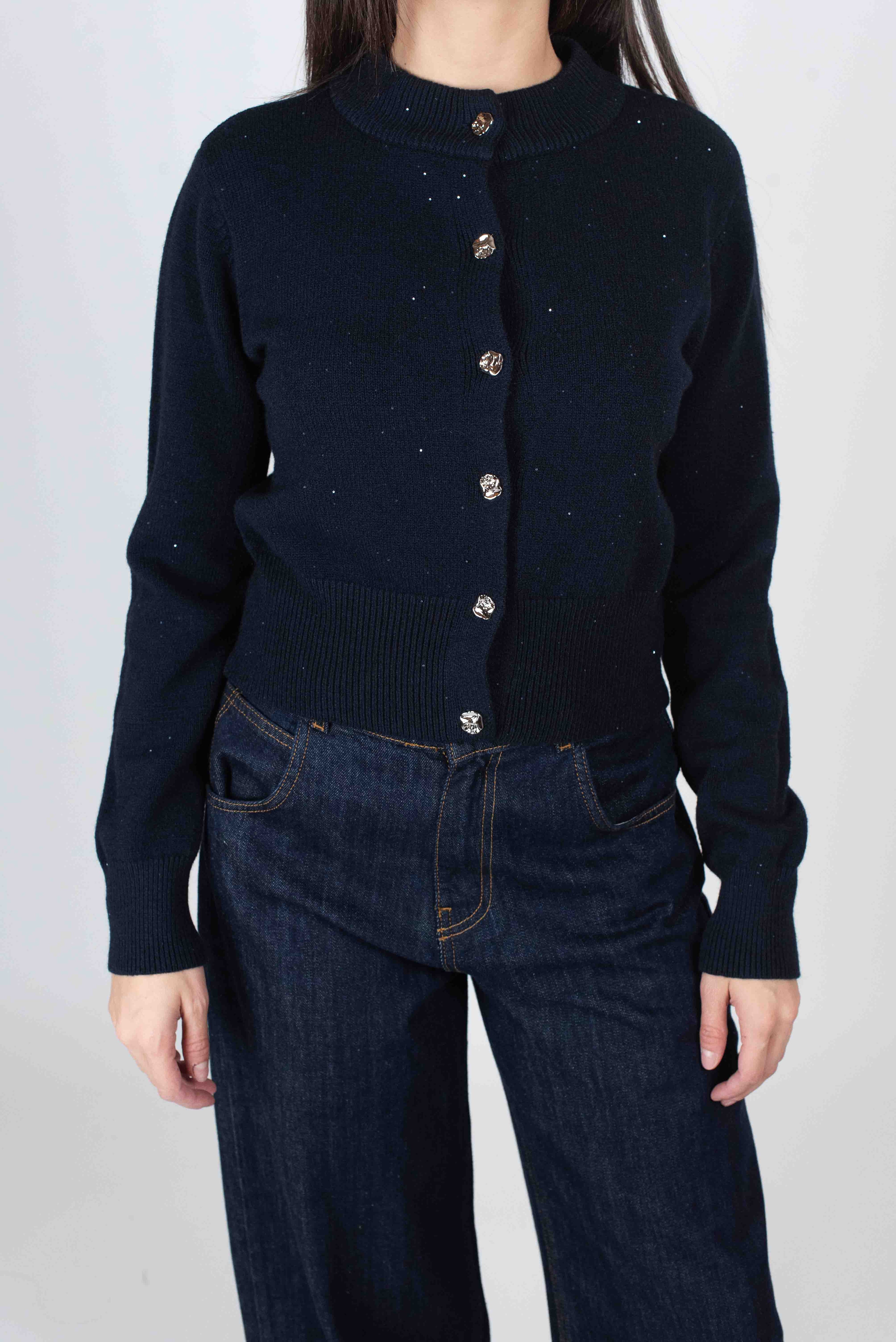 Via Vai Cardigan C/Bottoni Gioiello - blu