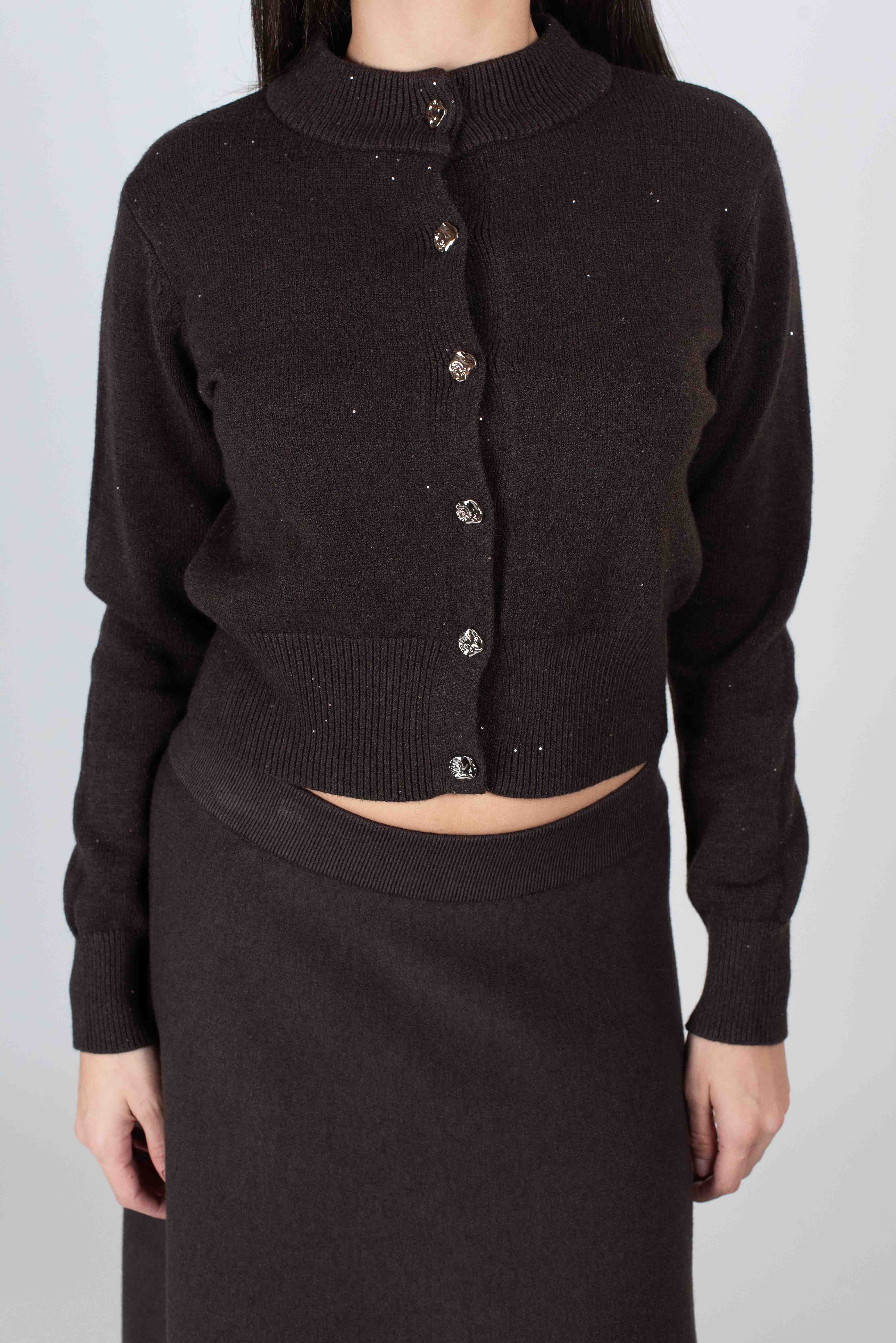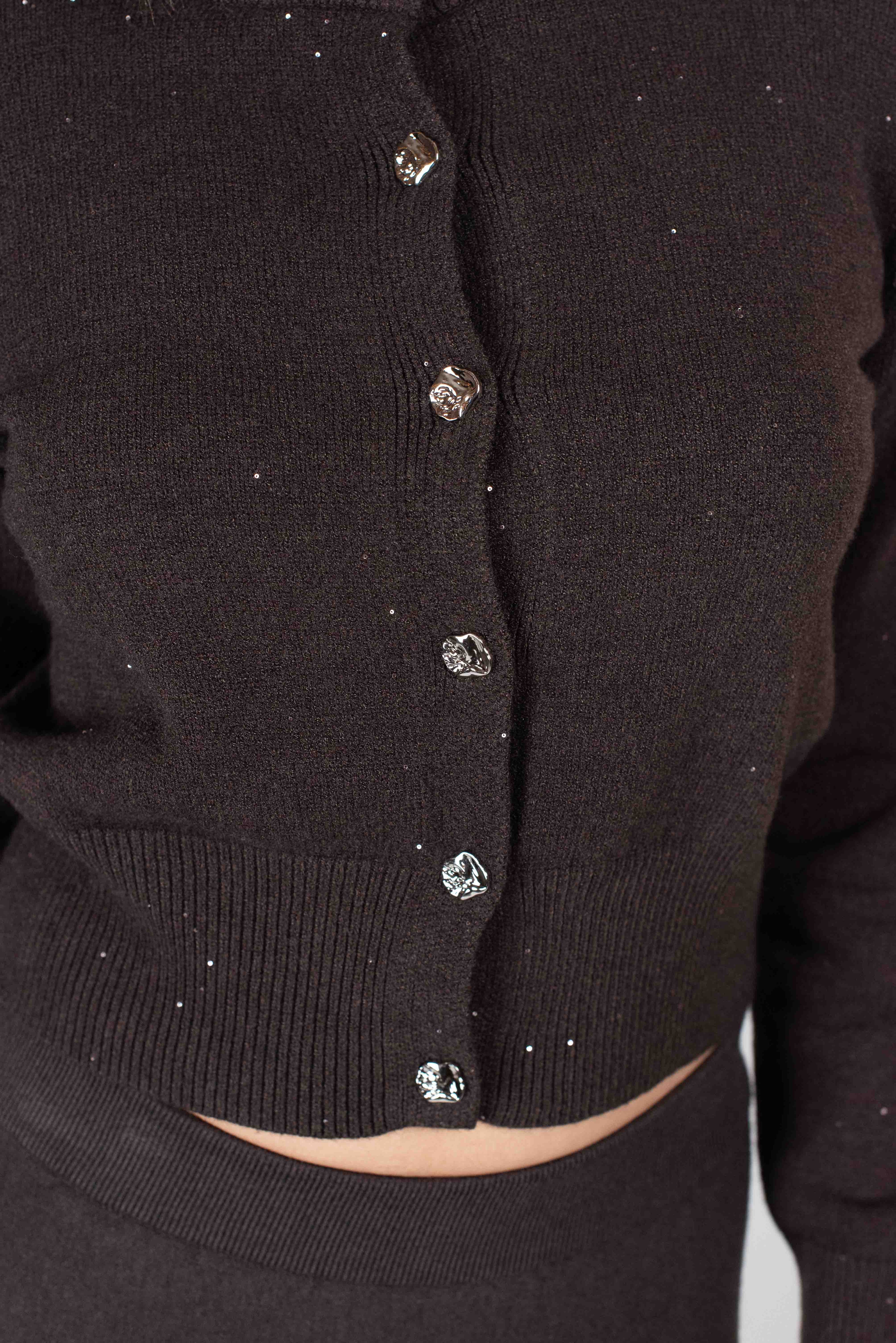 Cardigan con bottoni gioiello micro paillettes.