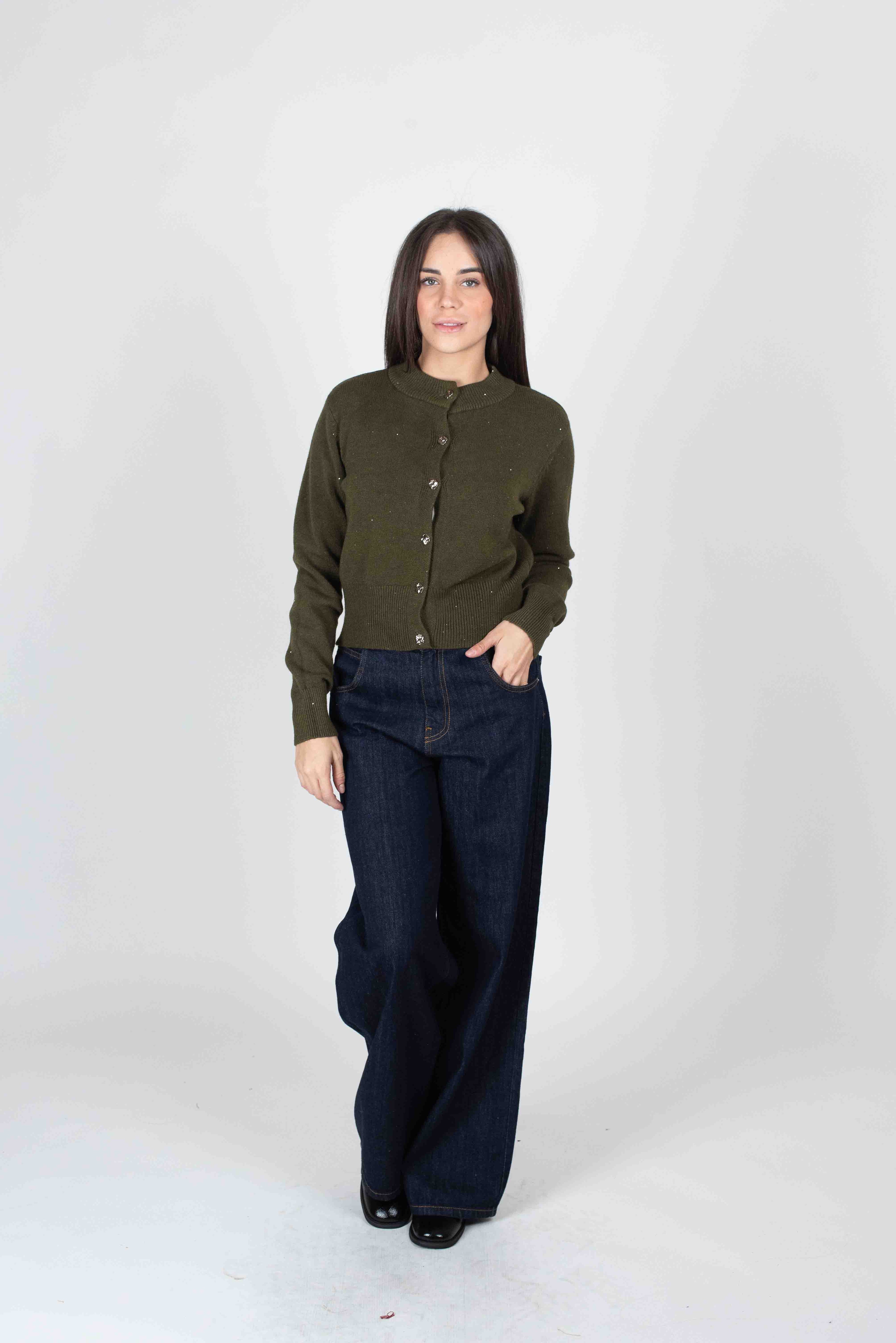 Via Vai Cardigan C/Bottoni Gioiello - VERDE