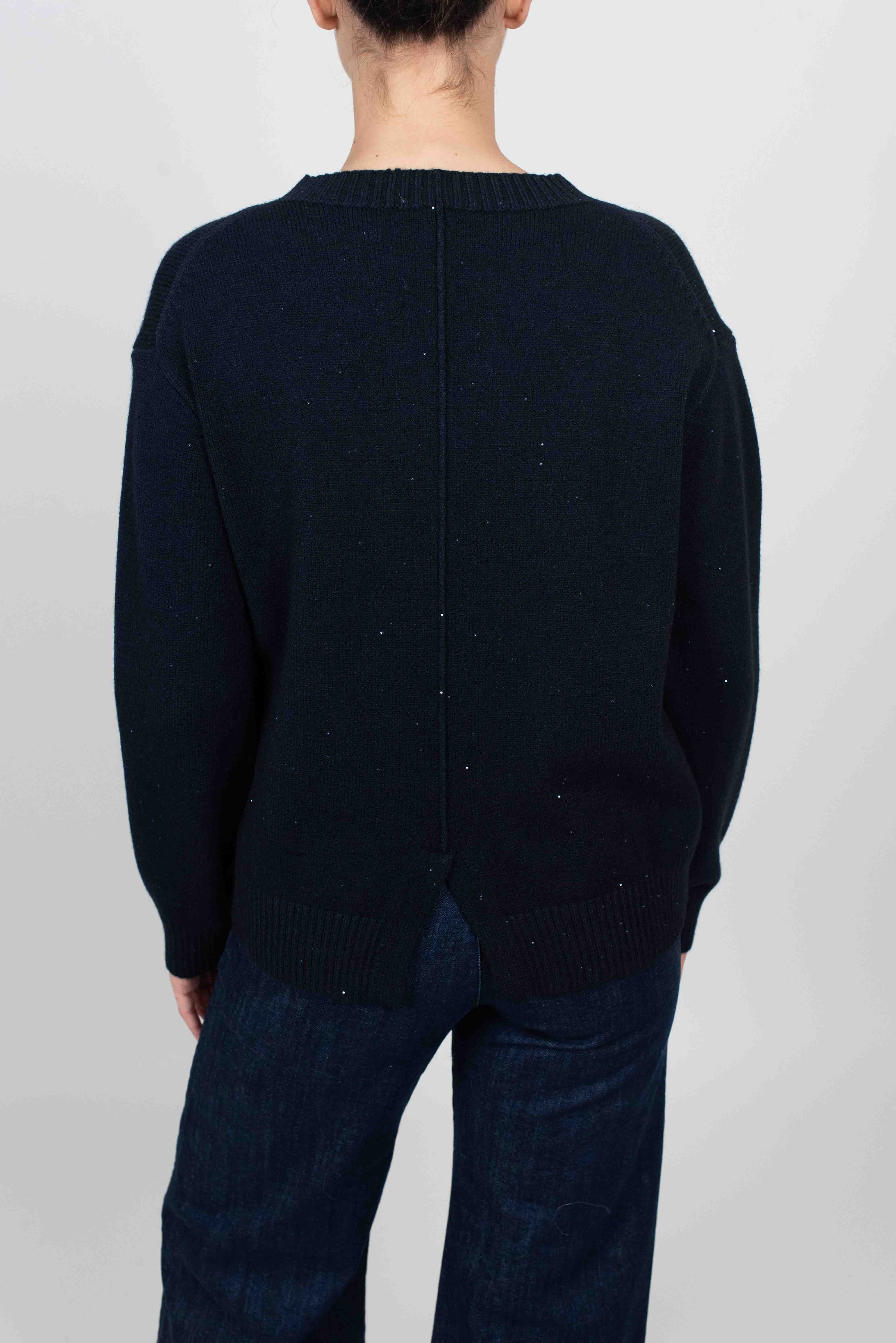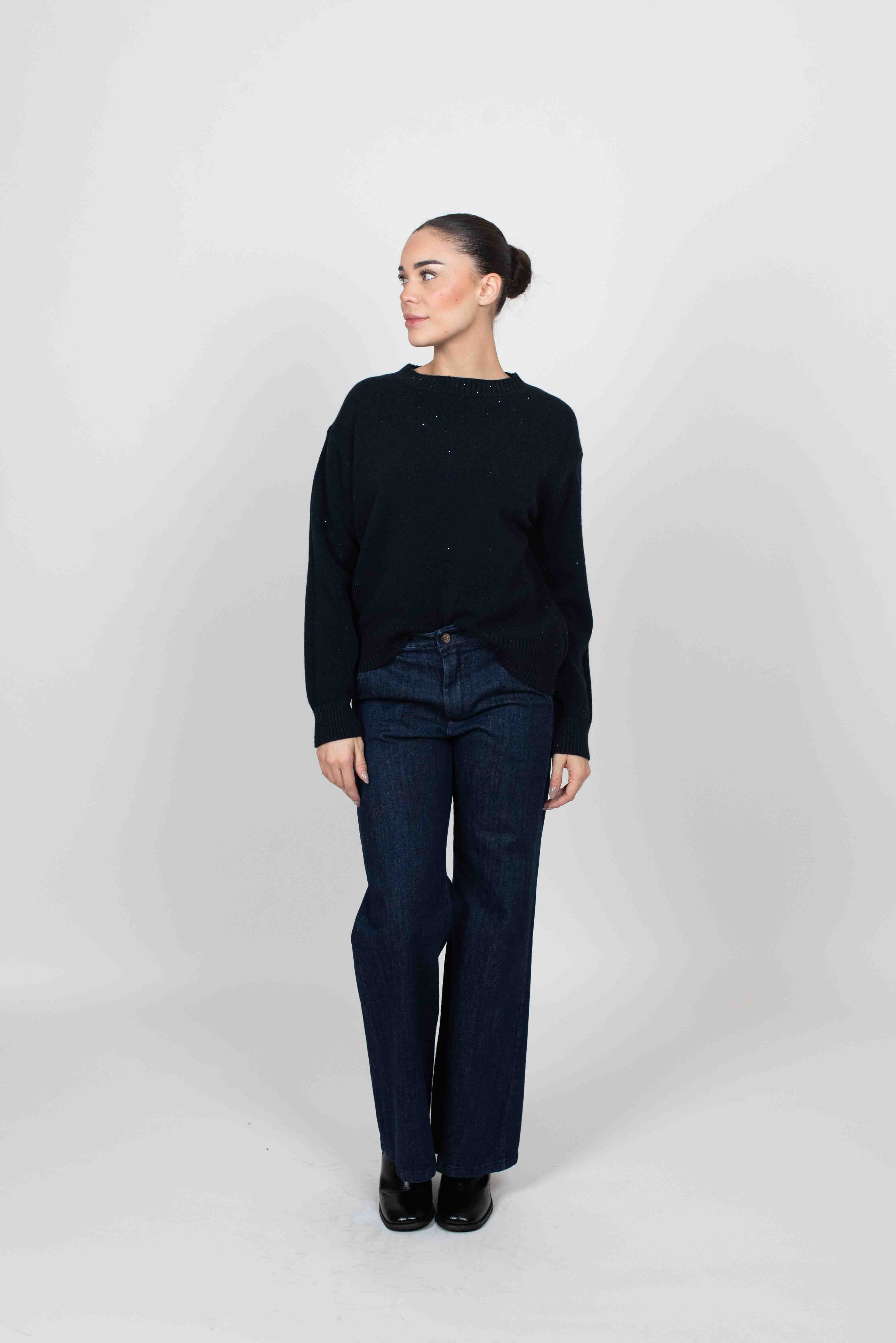 Via Vai Maglia Collo Barca Micro Paillettes - NERO