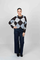 Via Vai Maglia Girocollo Fantasia Rombi - MORO/CELESTE