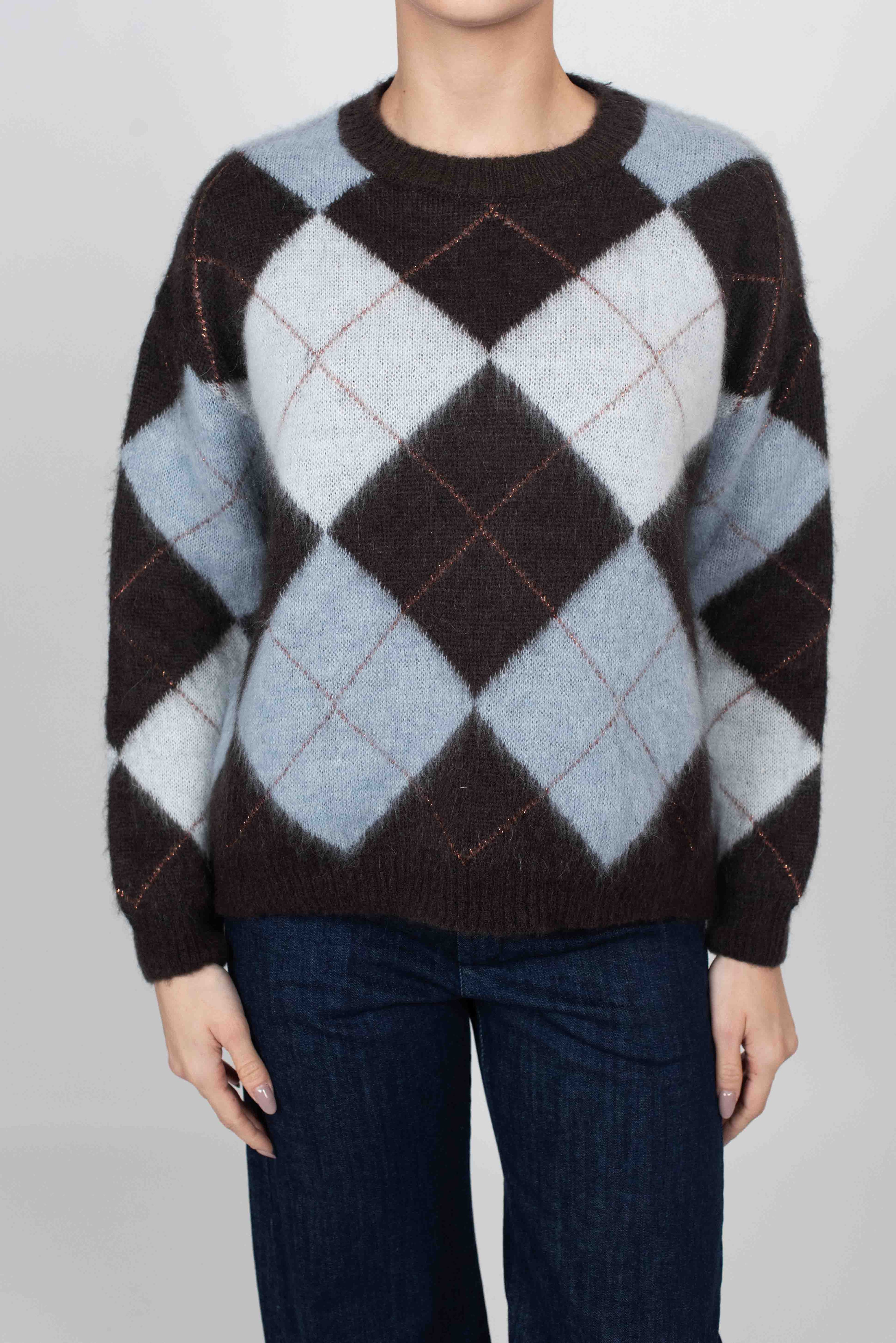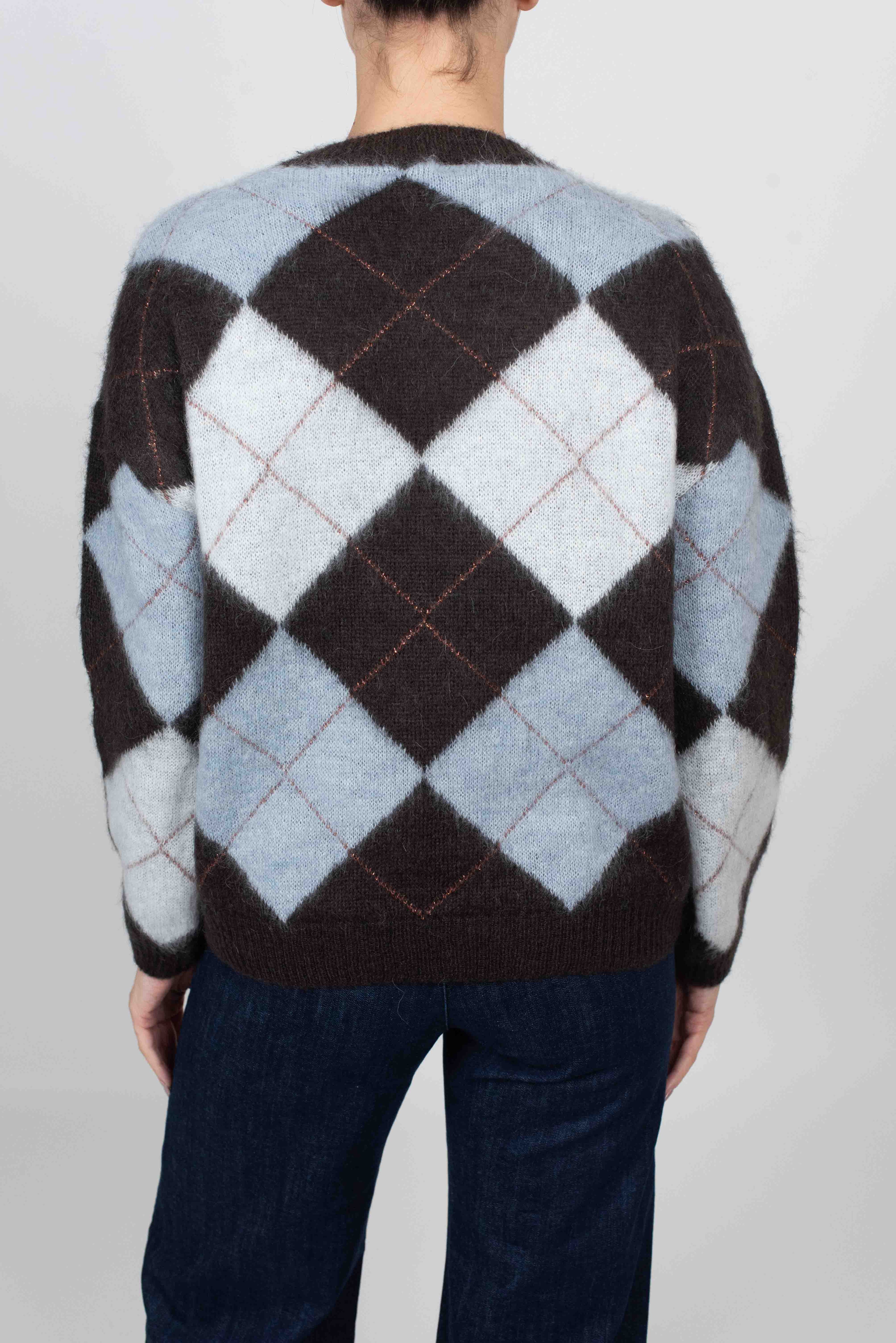 Maglia fantasia rombi in tre colori e filo lurex.