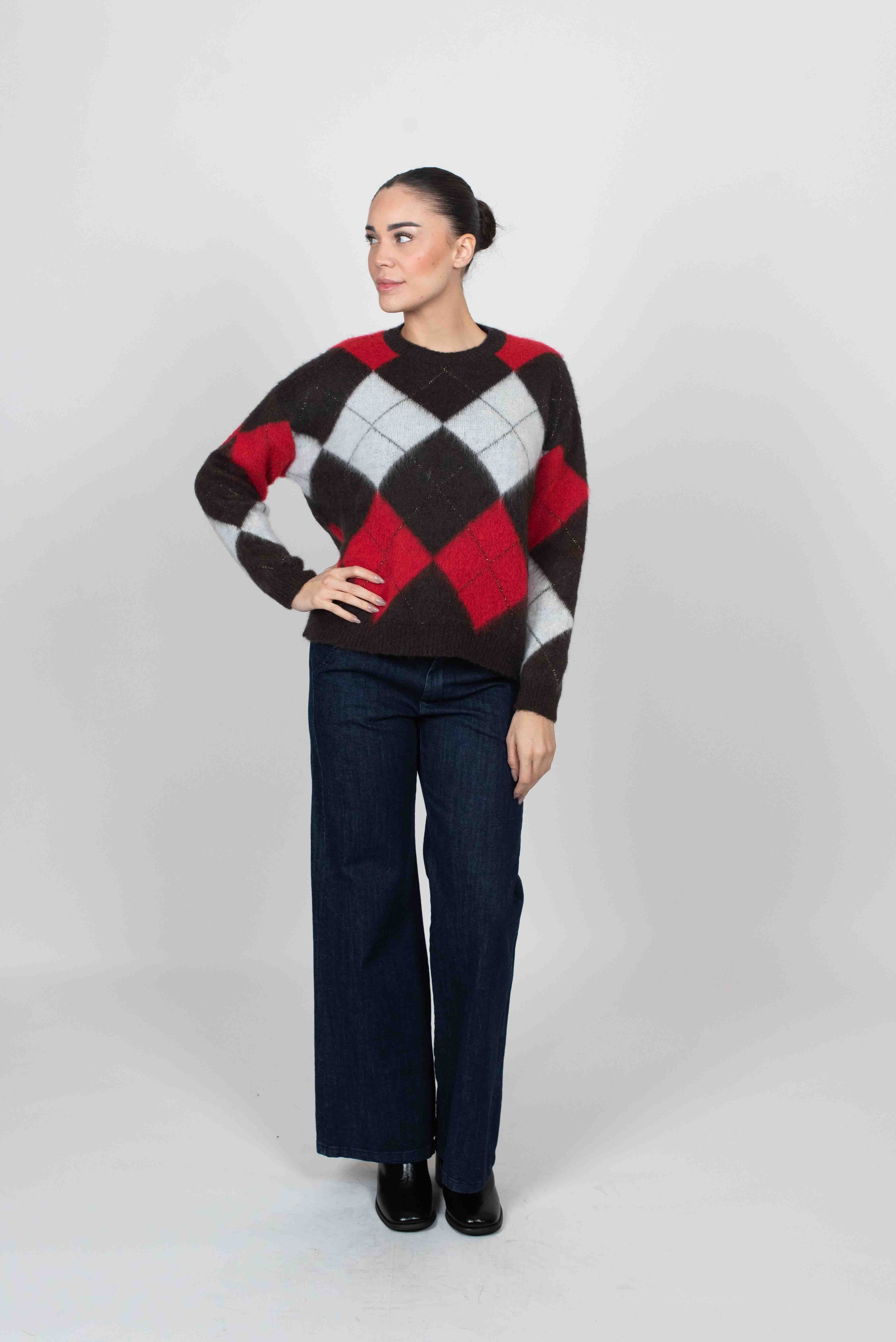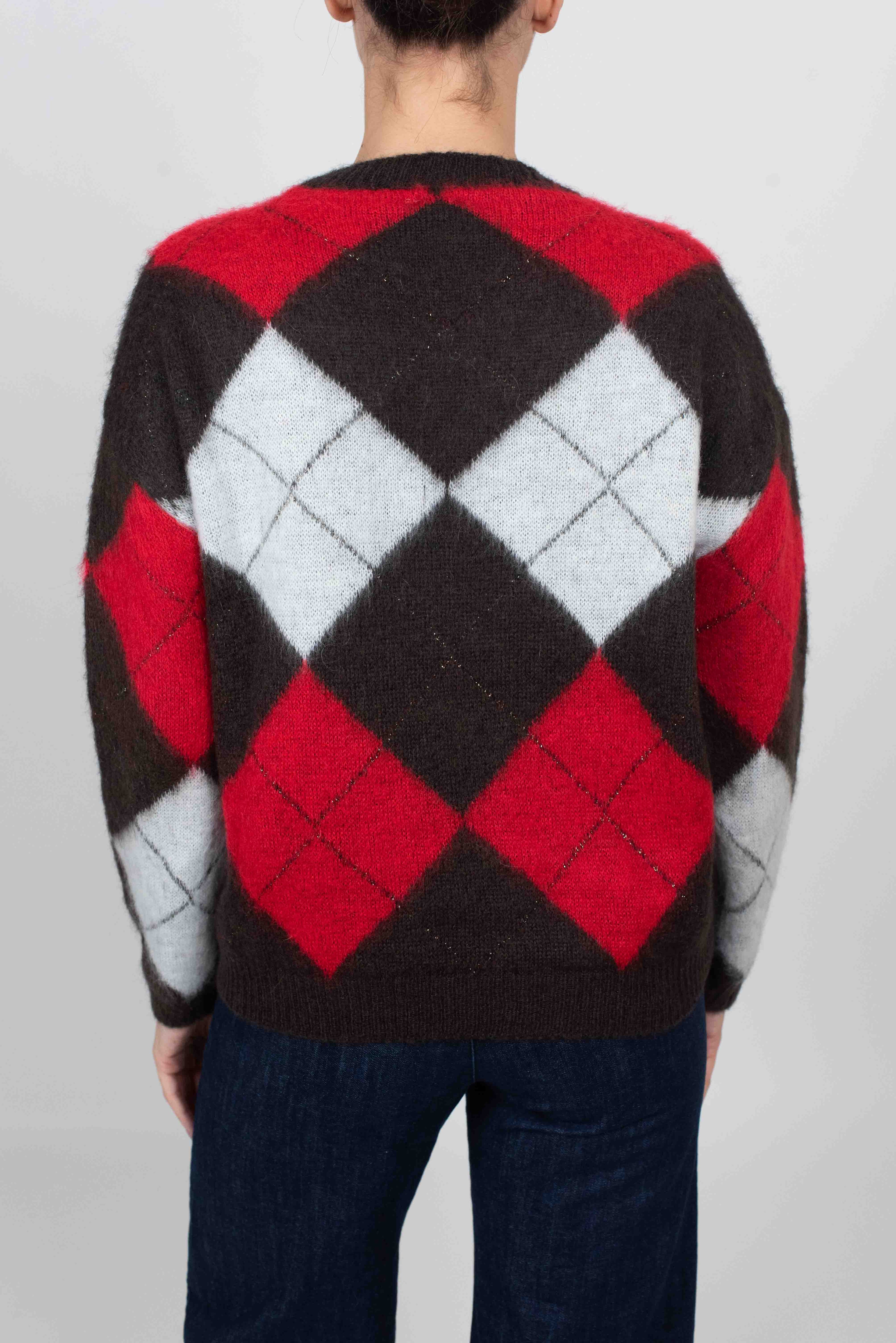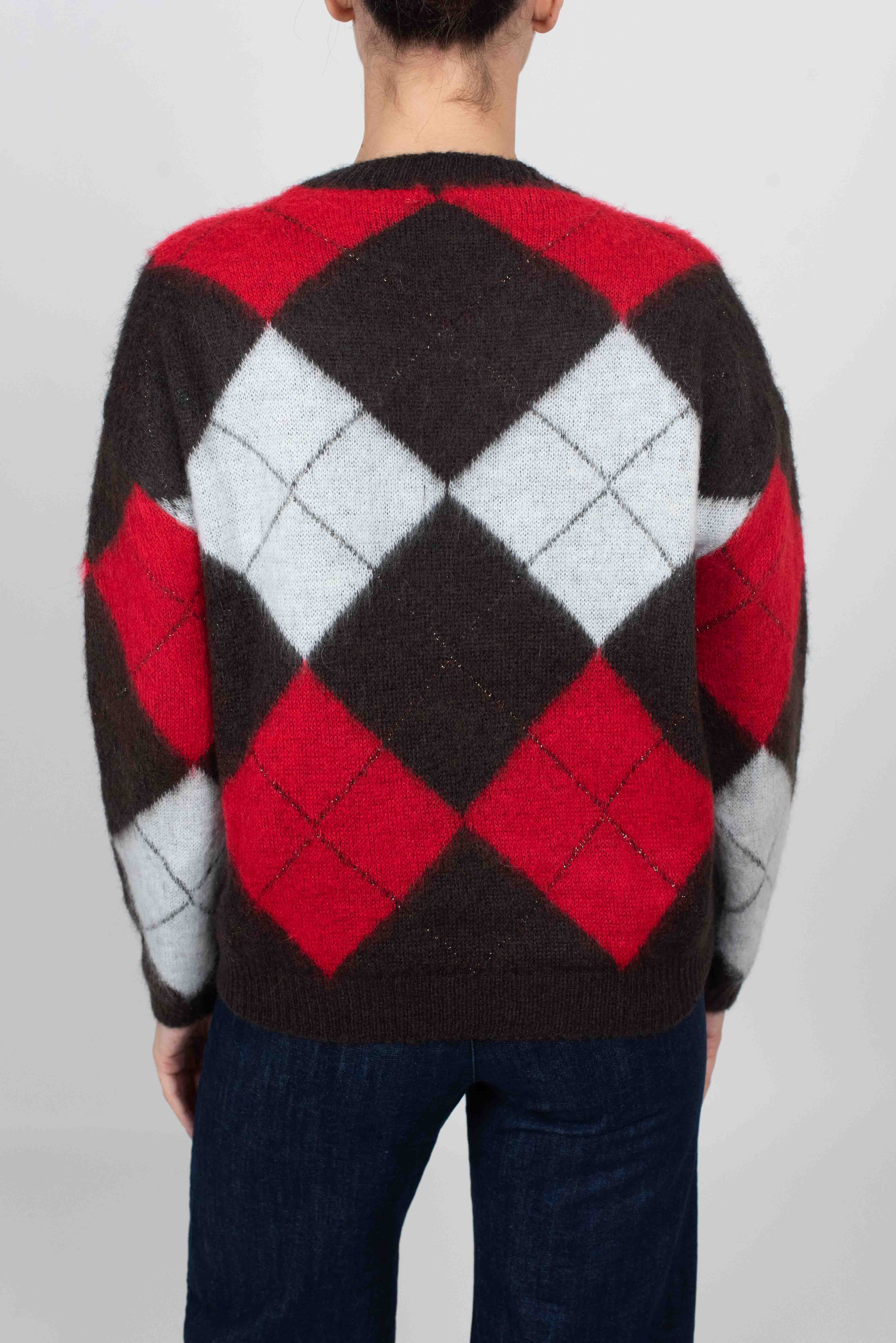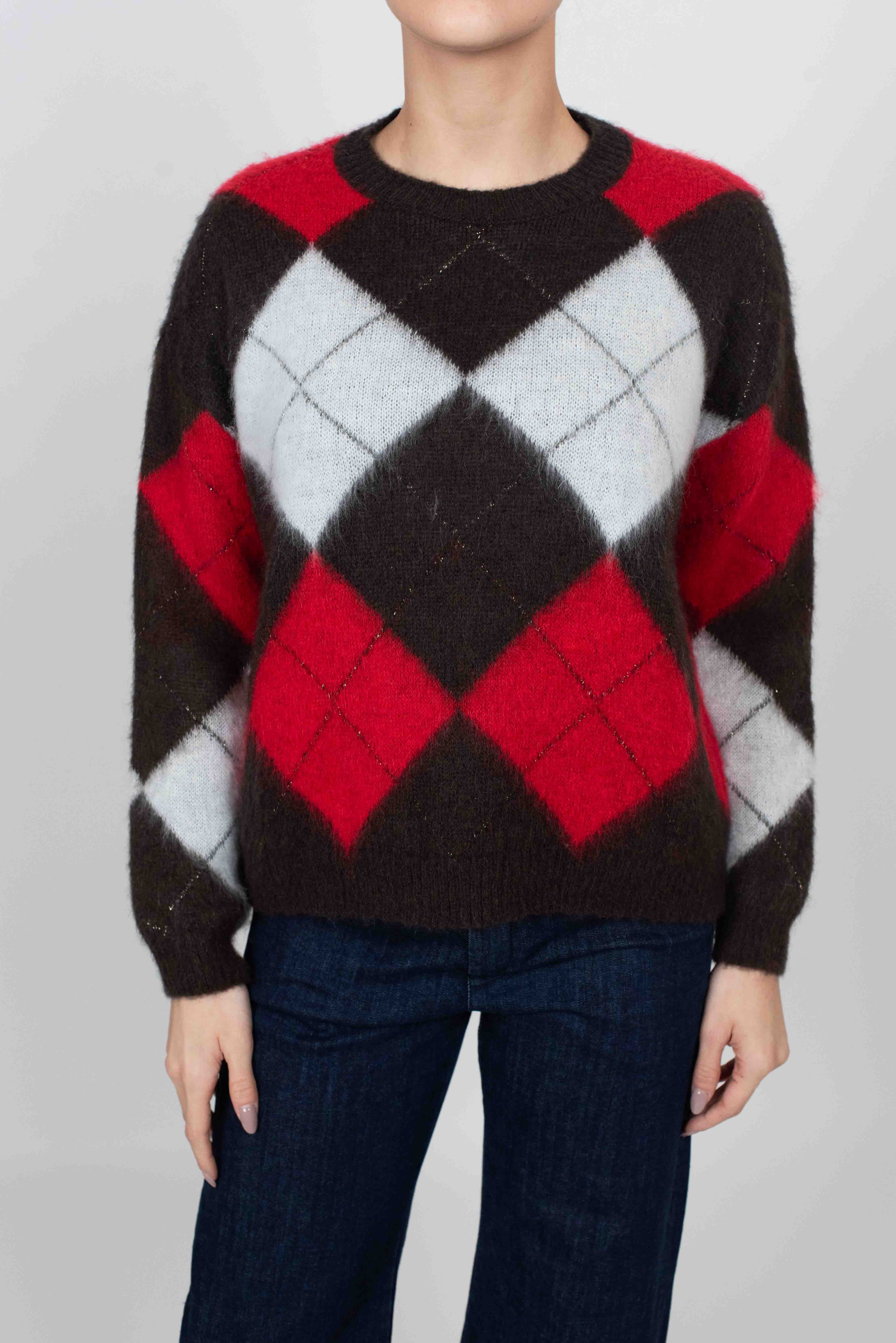 Via Vai Maglia Girocollo Fantasia Rombi - MORO/ROSSO