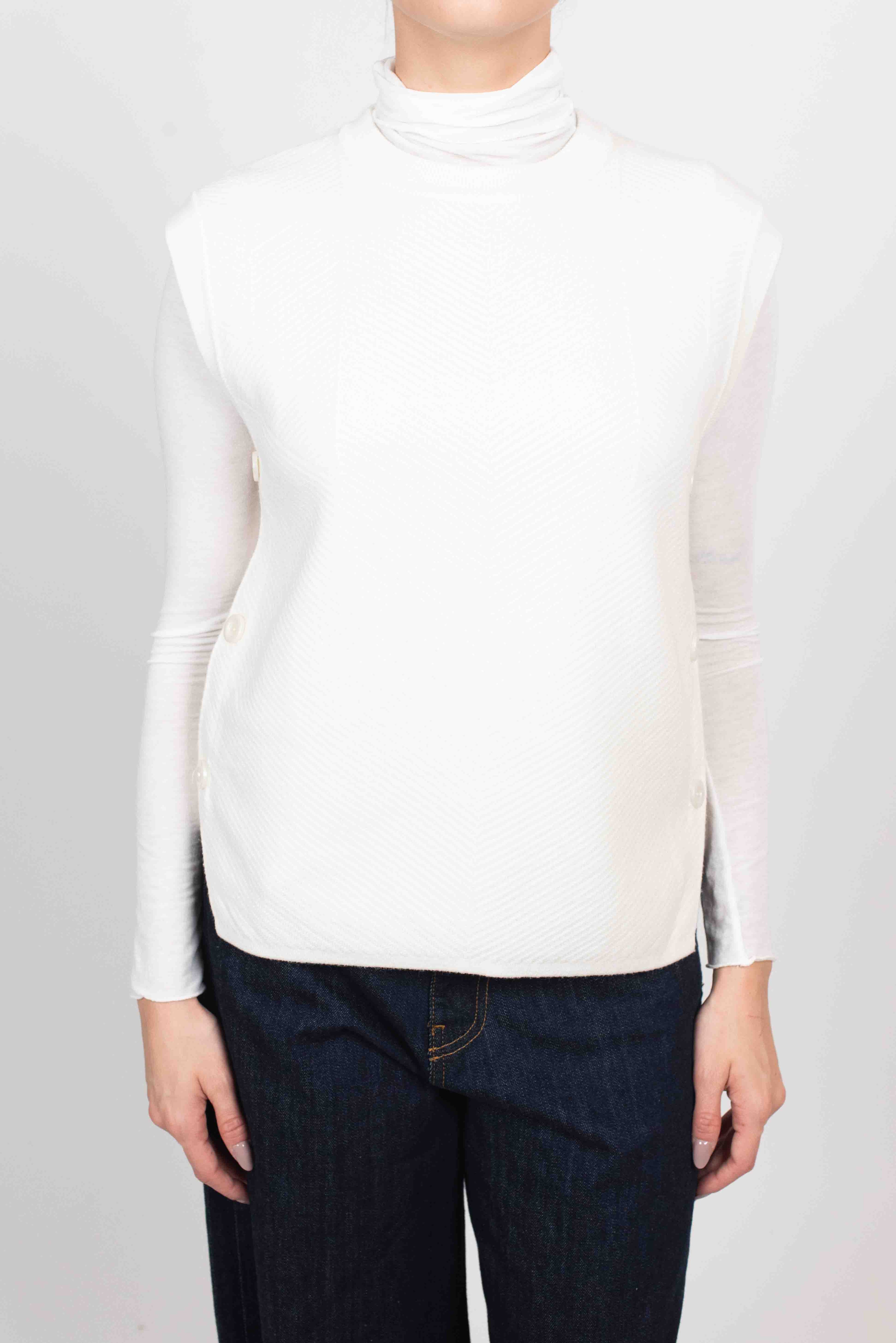 Gilet girocollo con trama testurizzata e motivo in rilievo con bottoni laterali.