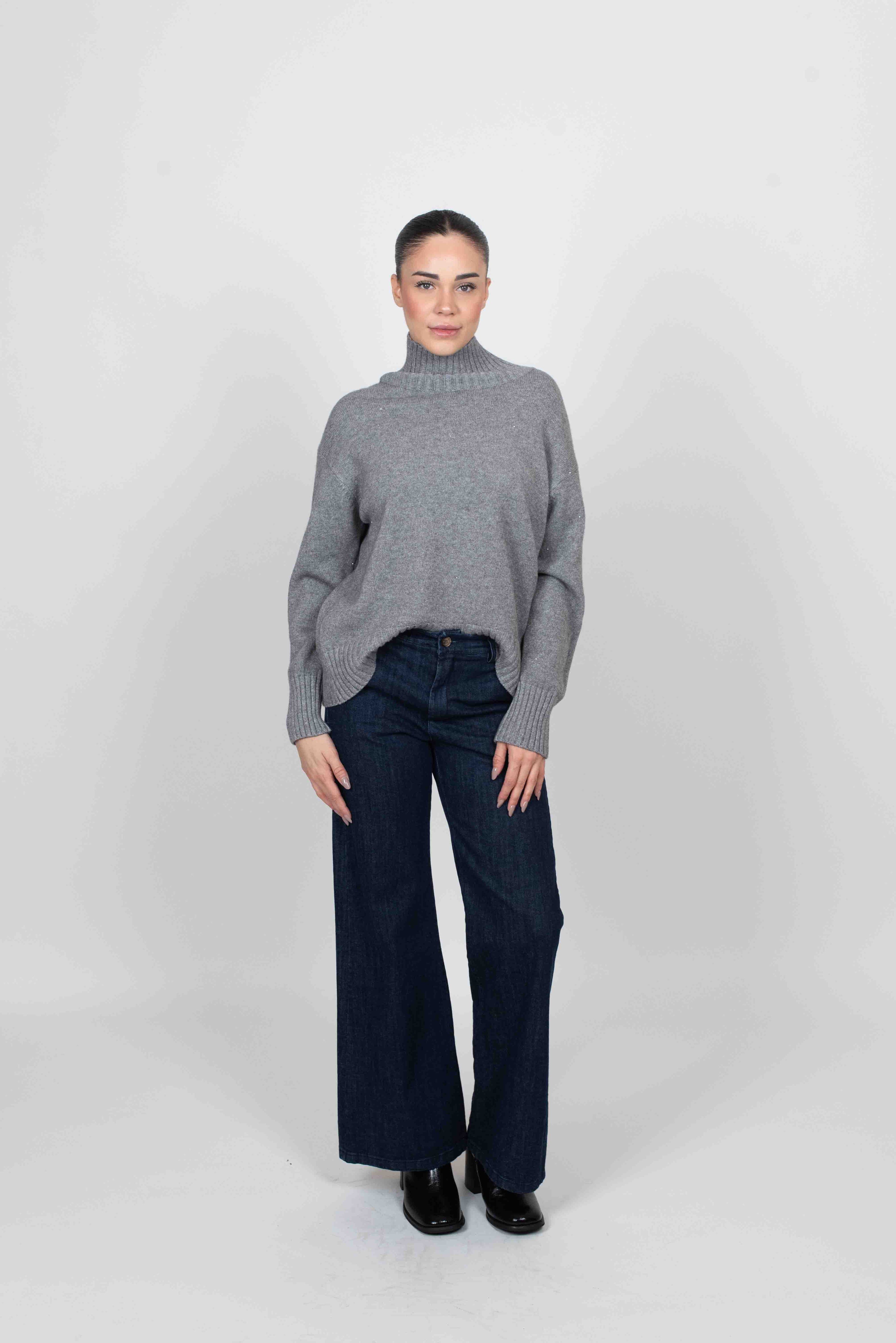 Via Vai Maglia Collo Montato C/Micropaillettes - GRIGIO