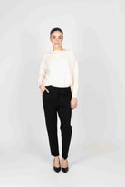 Pantalone punto Milano con elastico in vita tasca e pence.