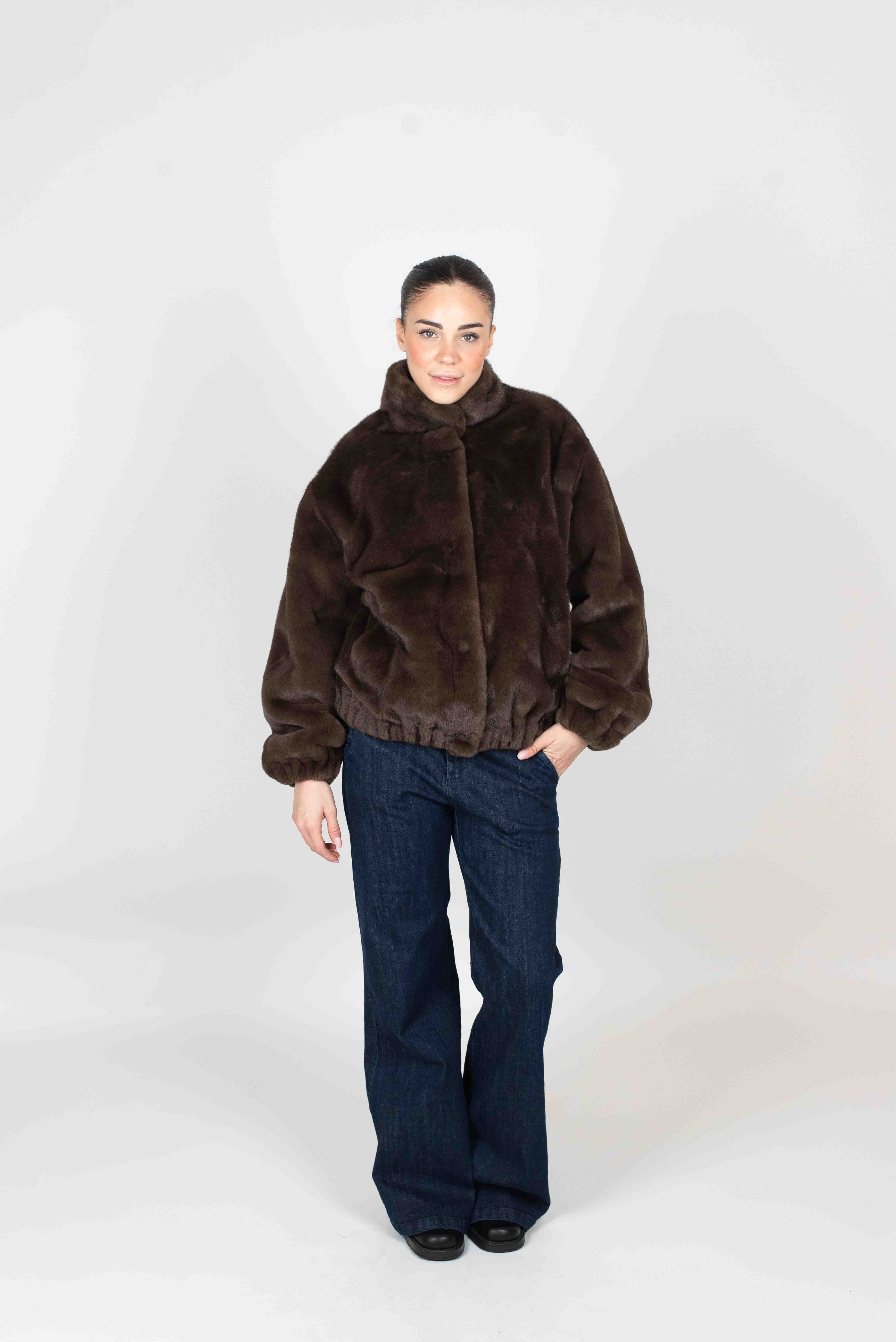Via Vai Cappotto Pelliccia Corta - MORO