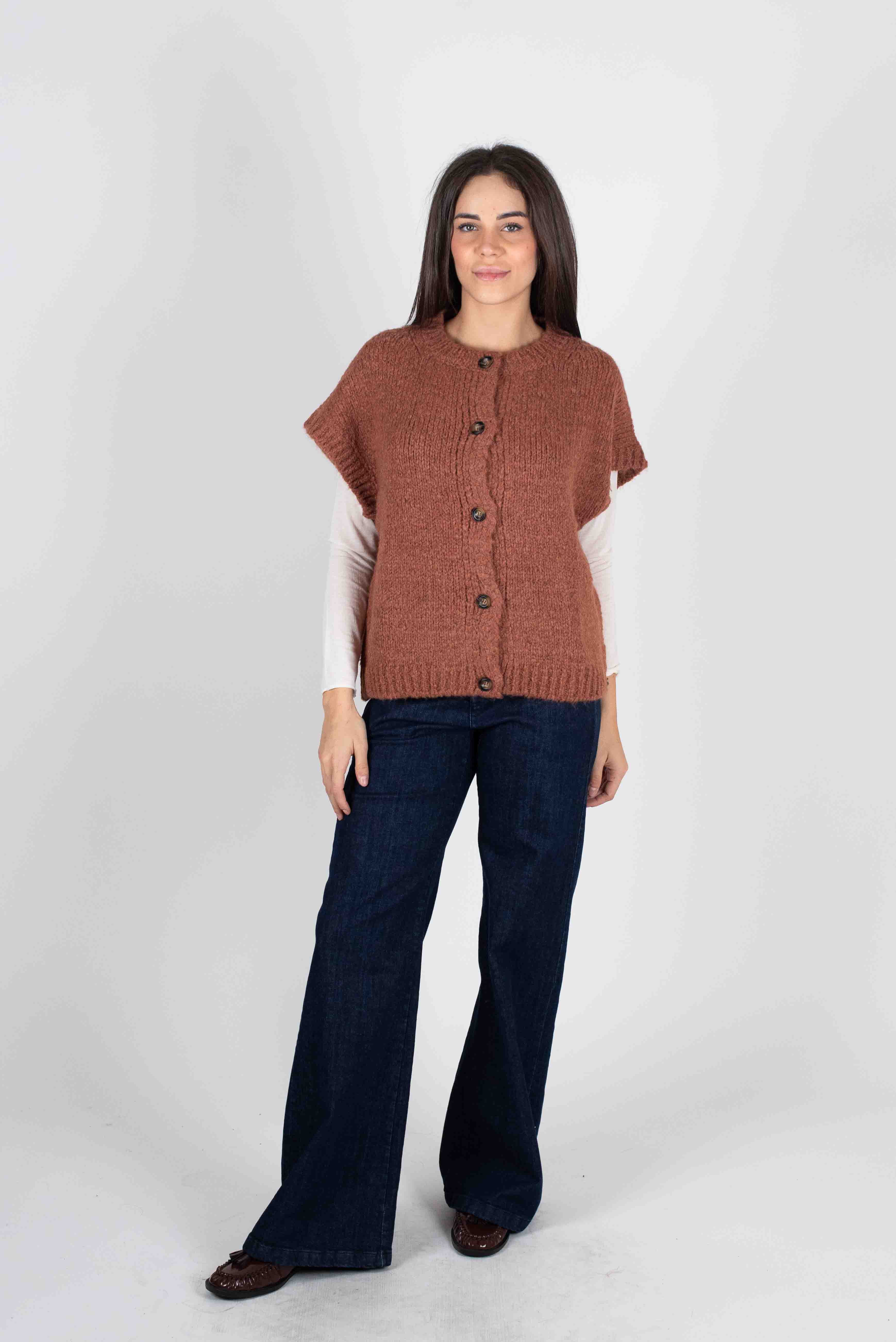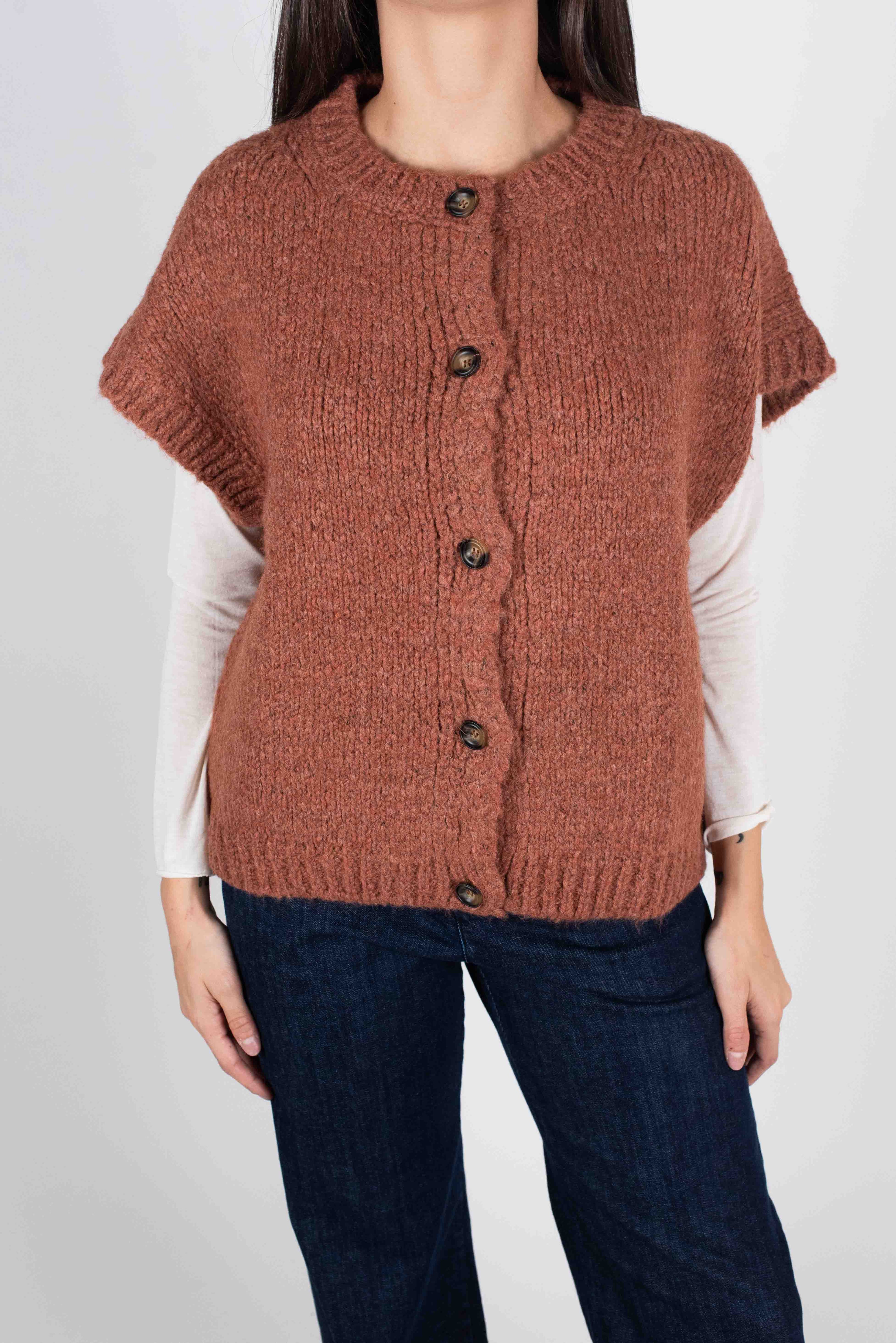 Gilet girocollo con bottoni.