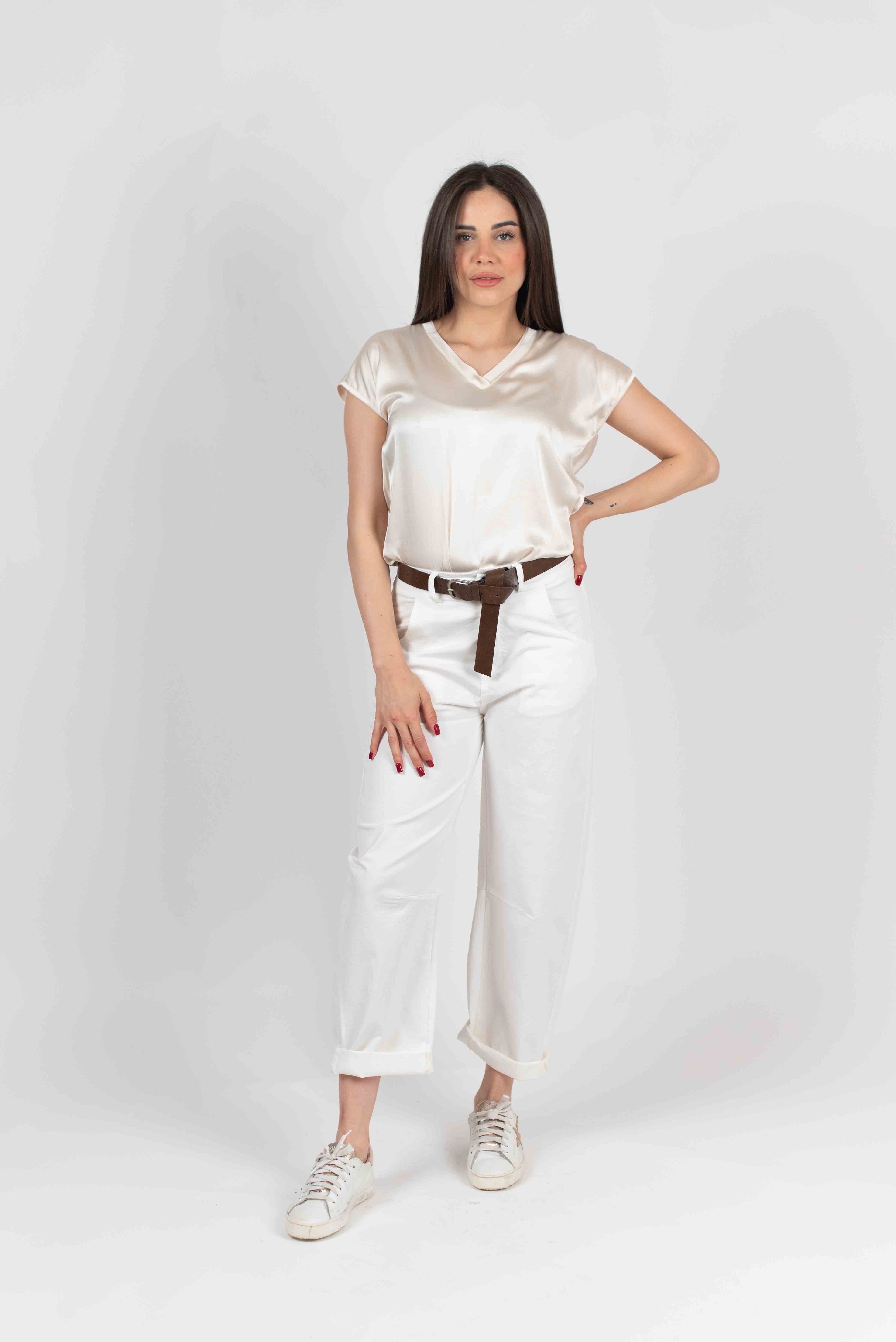 Tensione In Pantalone Con Elastico Dietro - BIANCO