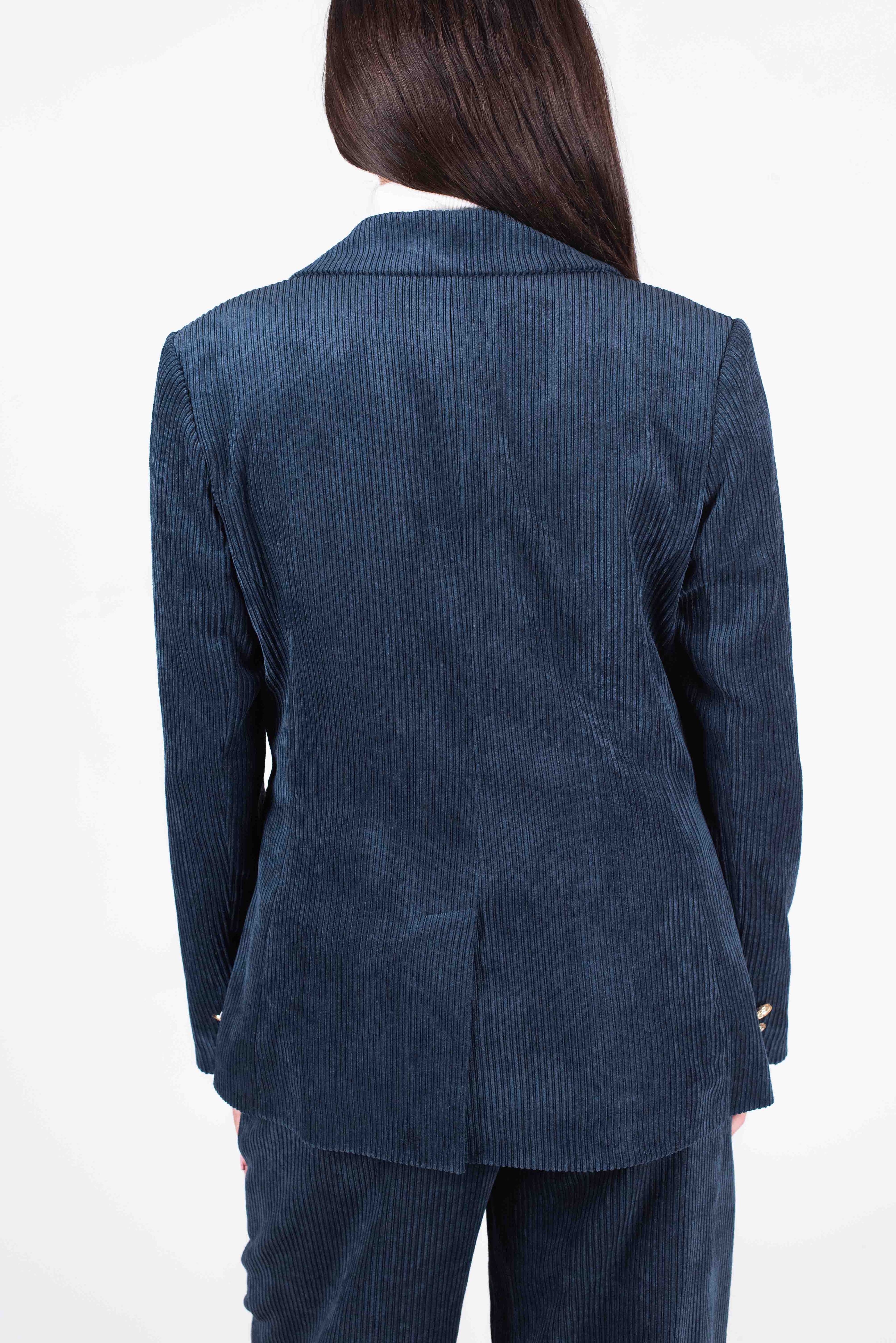 Tensione In Giacca Monopetto Velluto Costine - blu