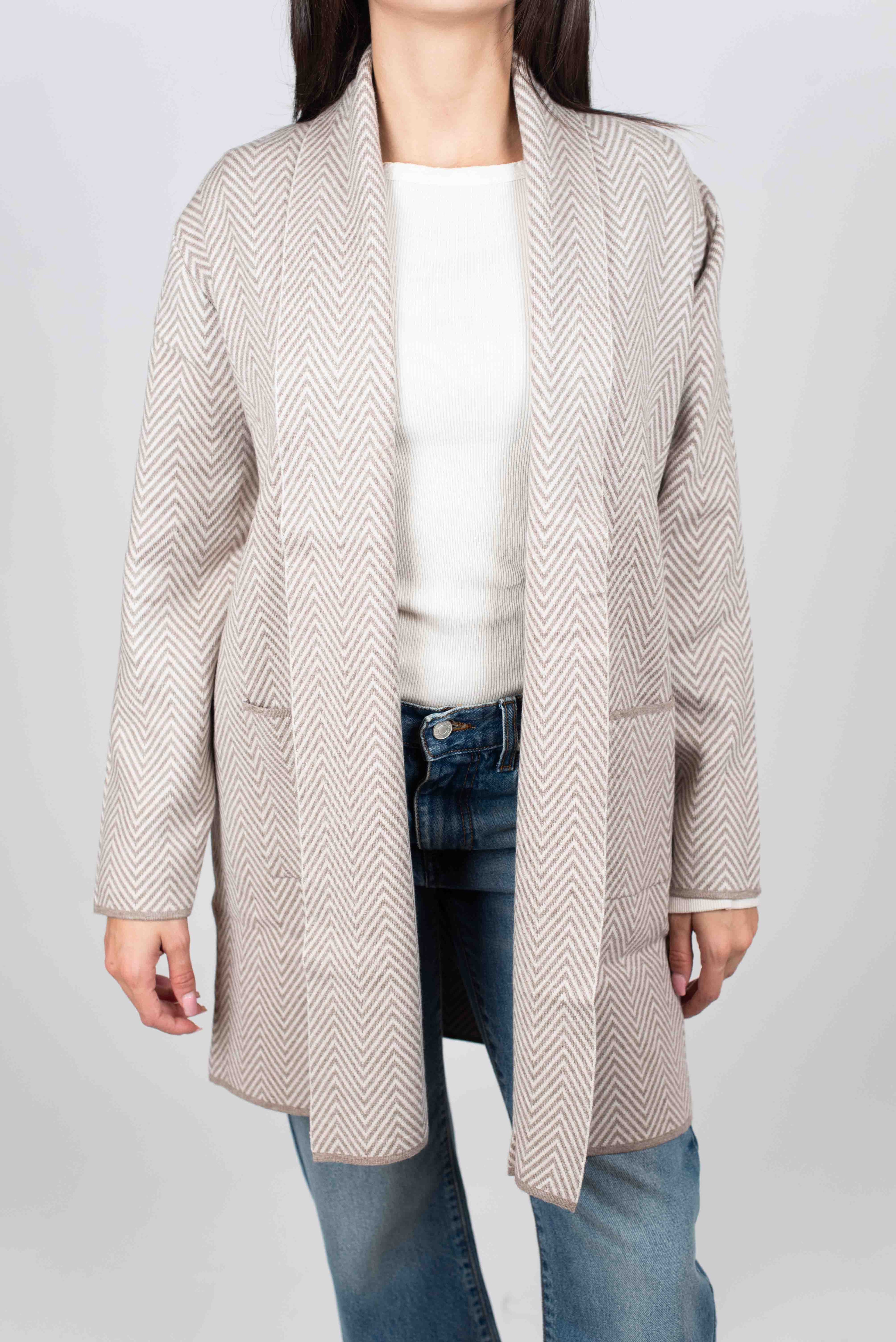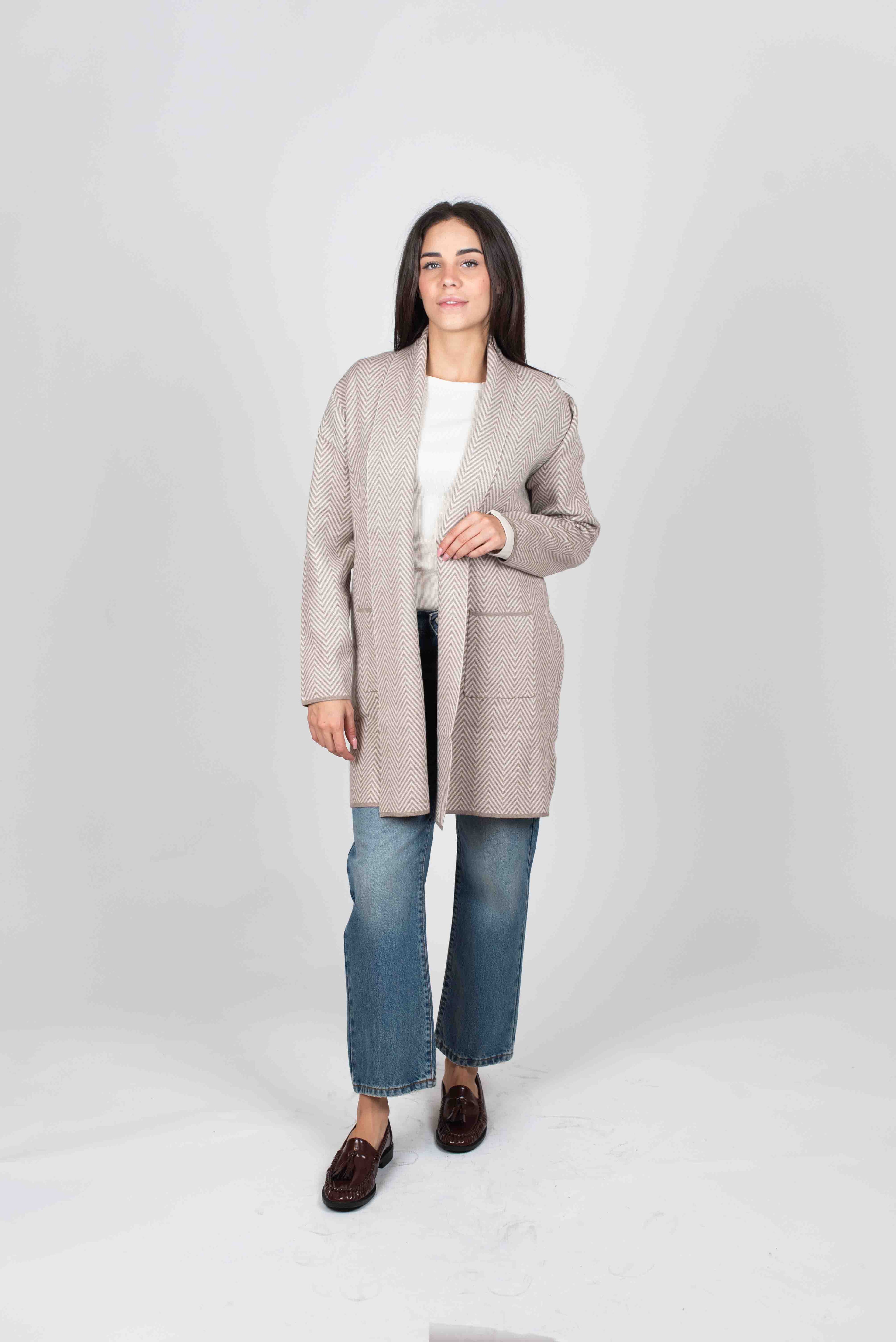 Via Vai Cardigan Lungo Fantasia Spiga - CAMEL LATTE