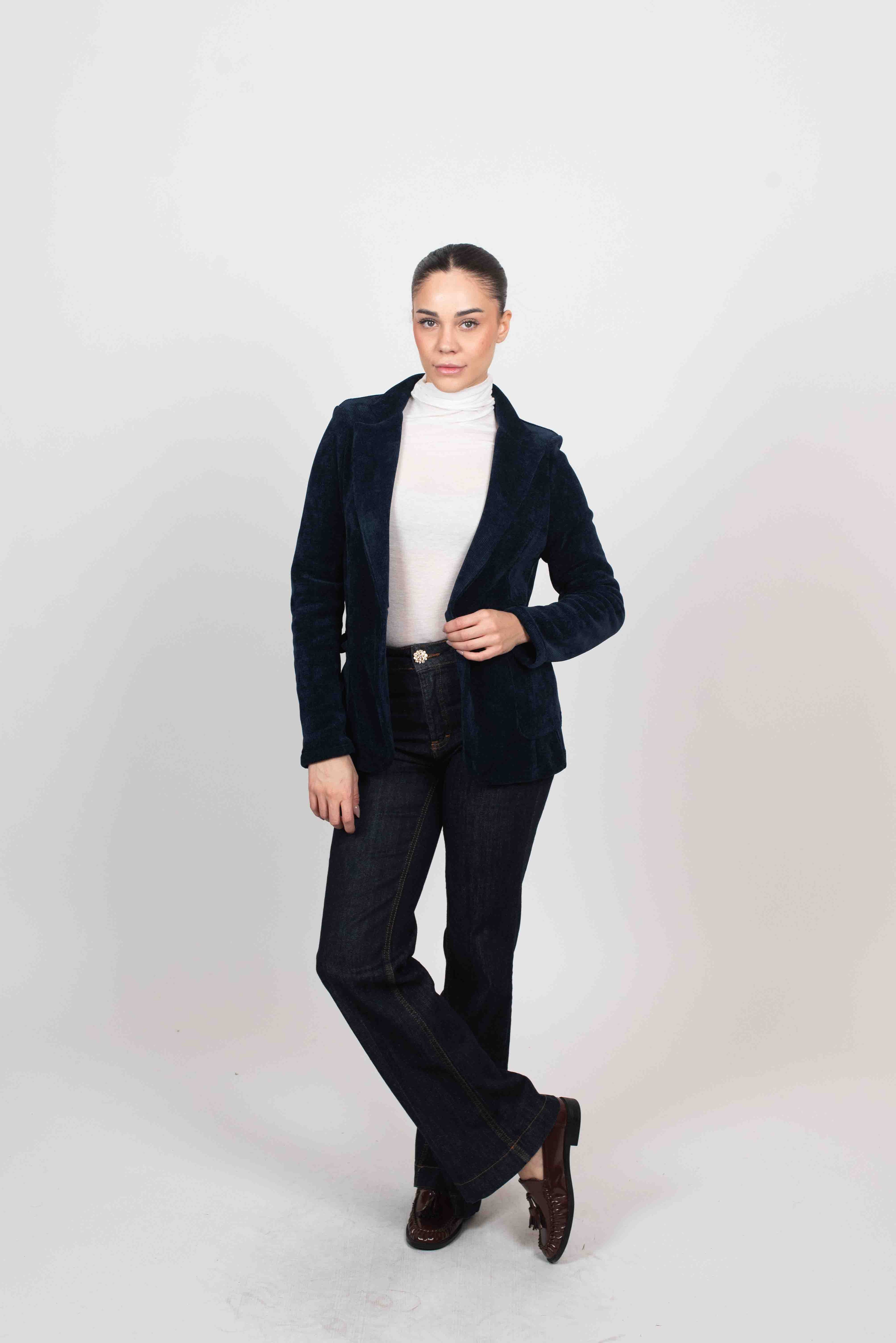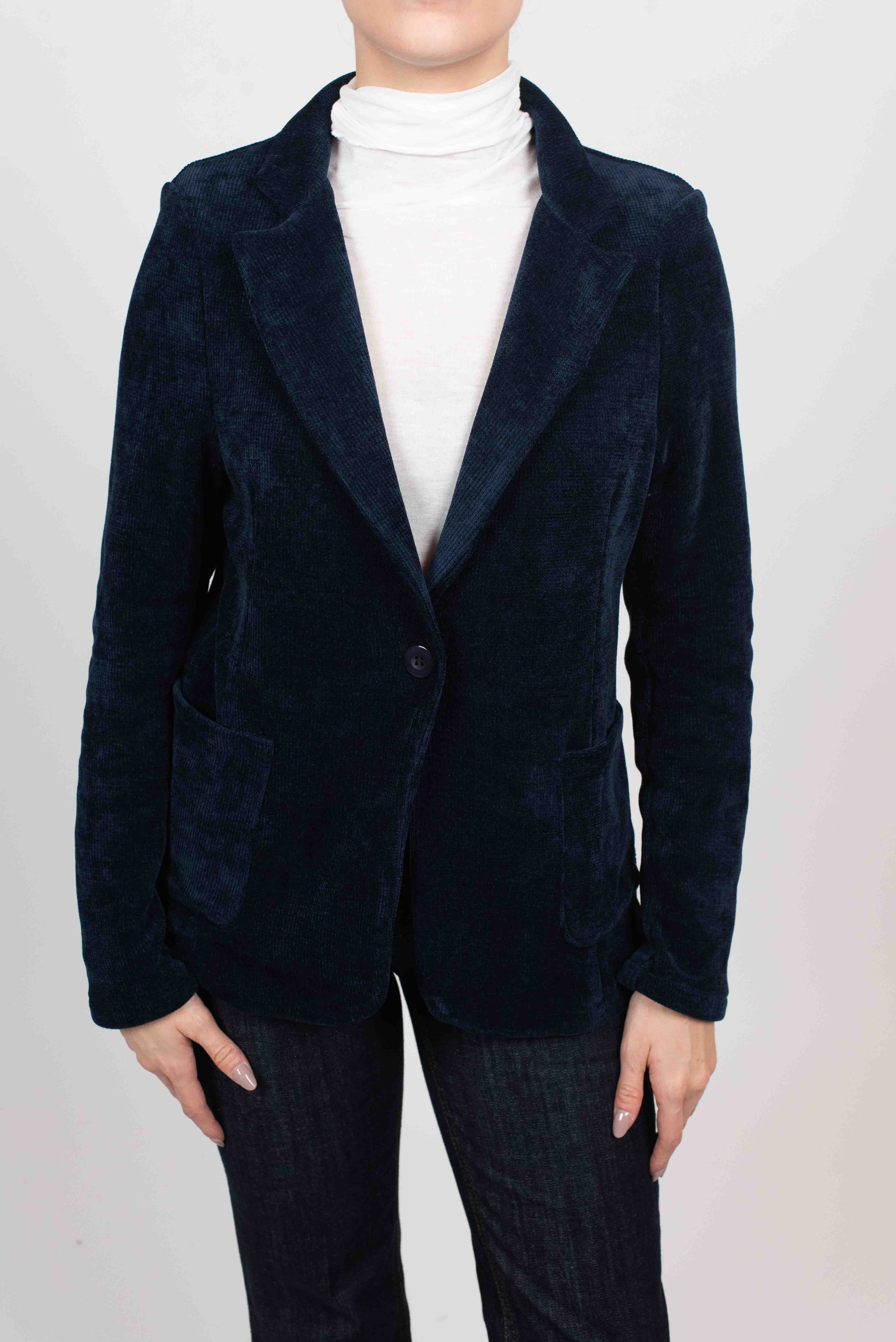 Giacca velluto cinigliato ad un bottone con tasche a toppa.