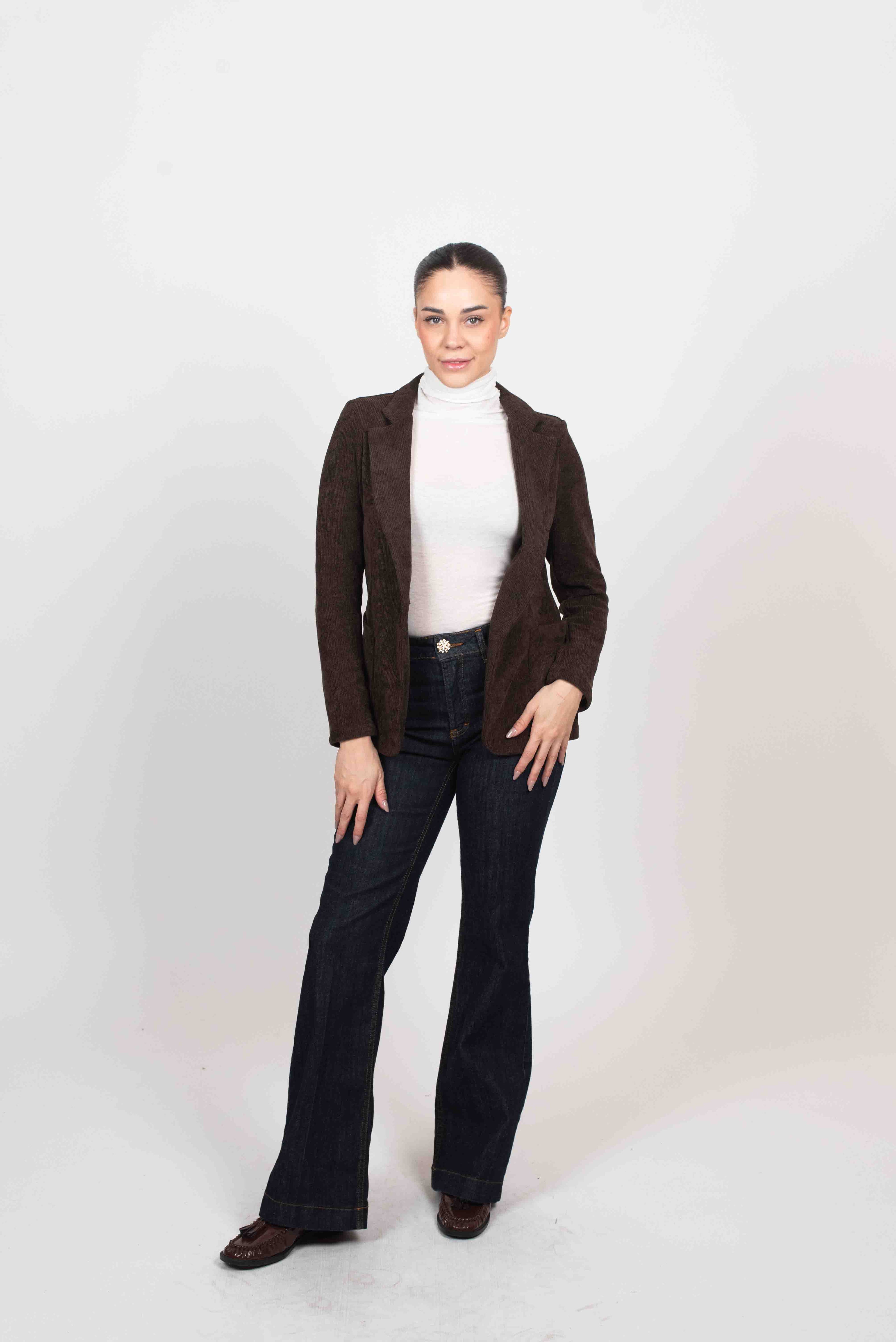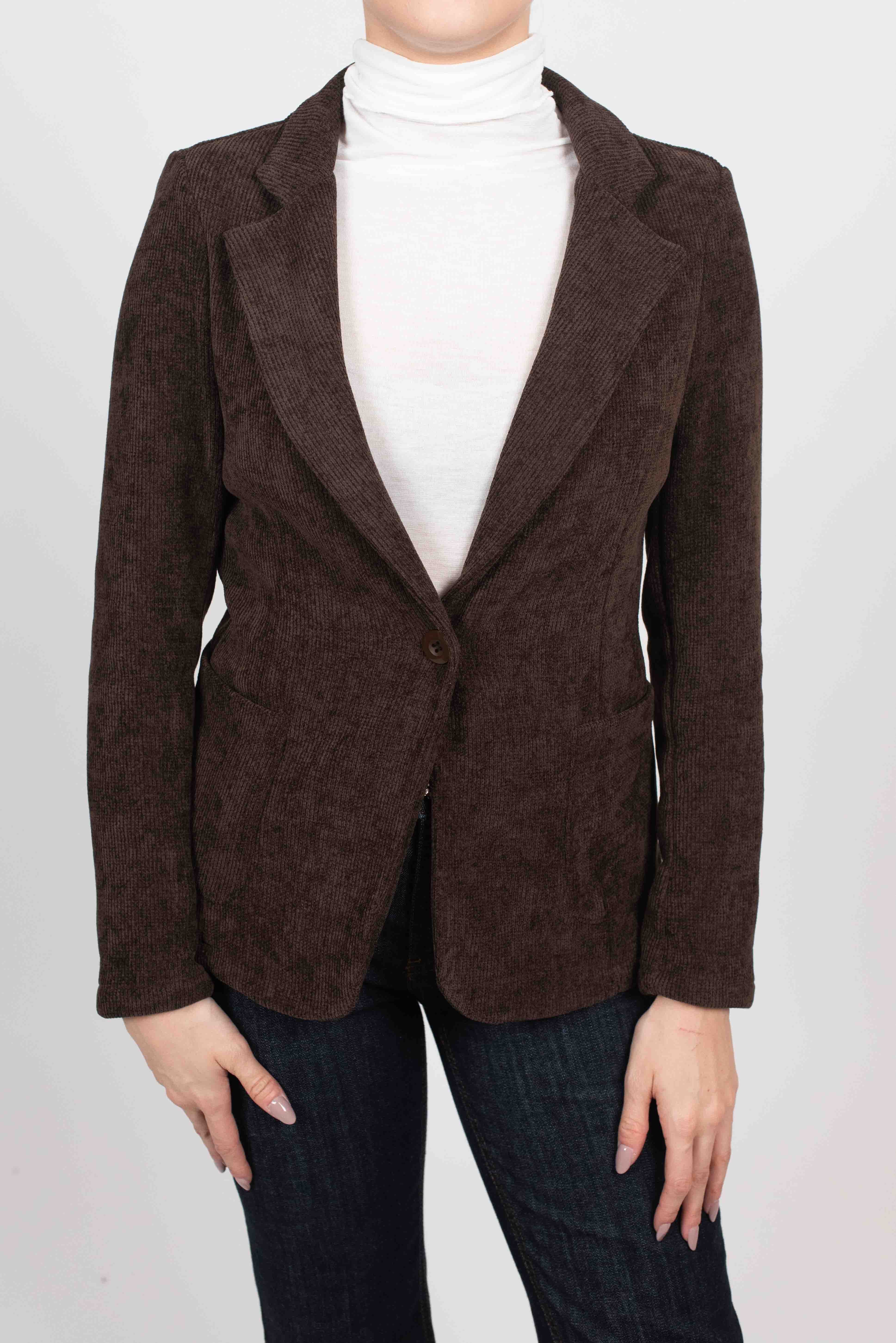 Giacca velluto cinigliato ad un bottone con tasche a toppa.