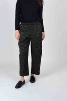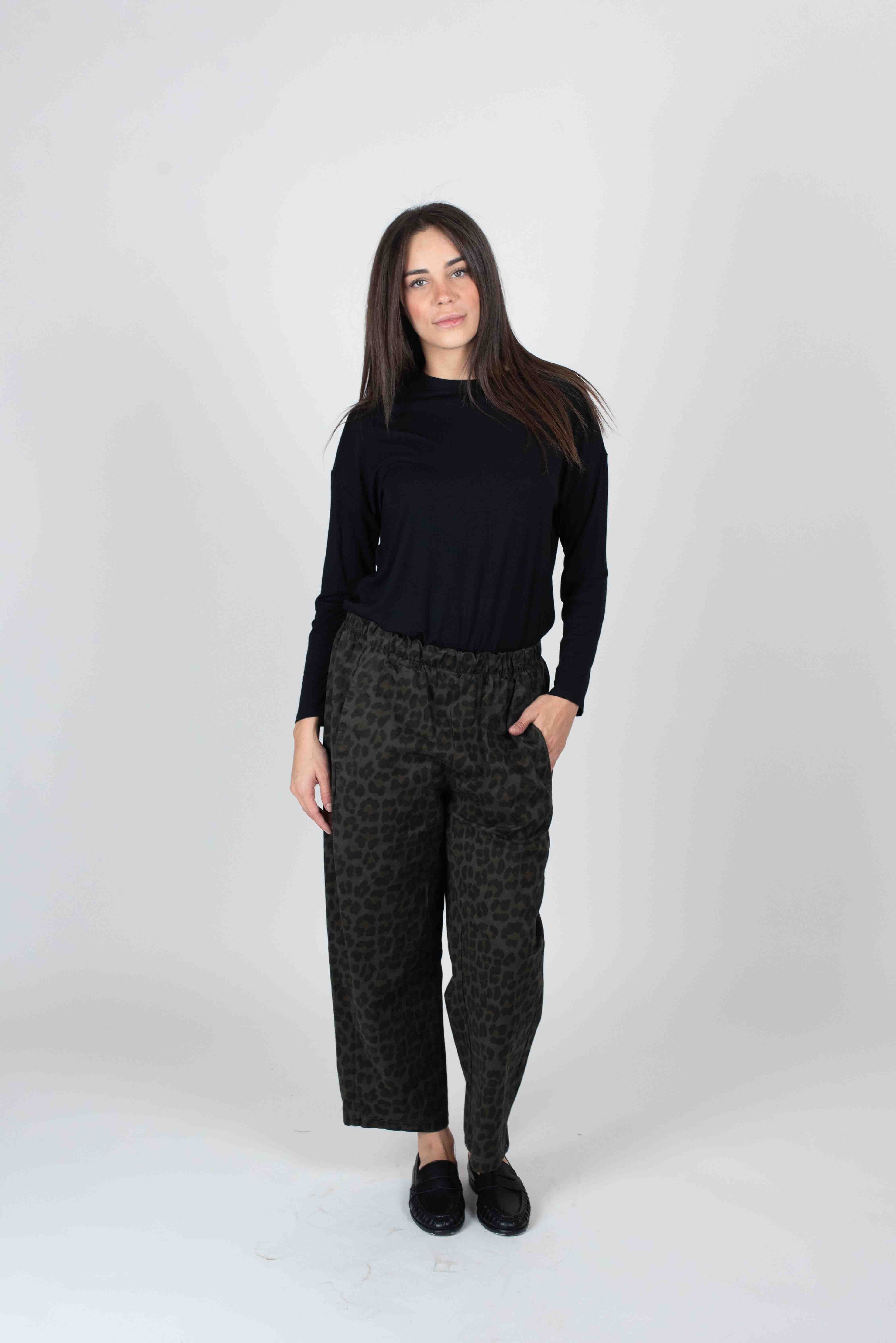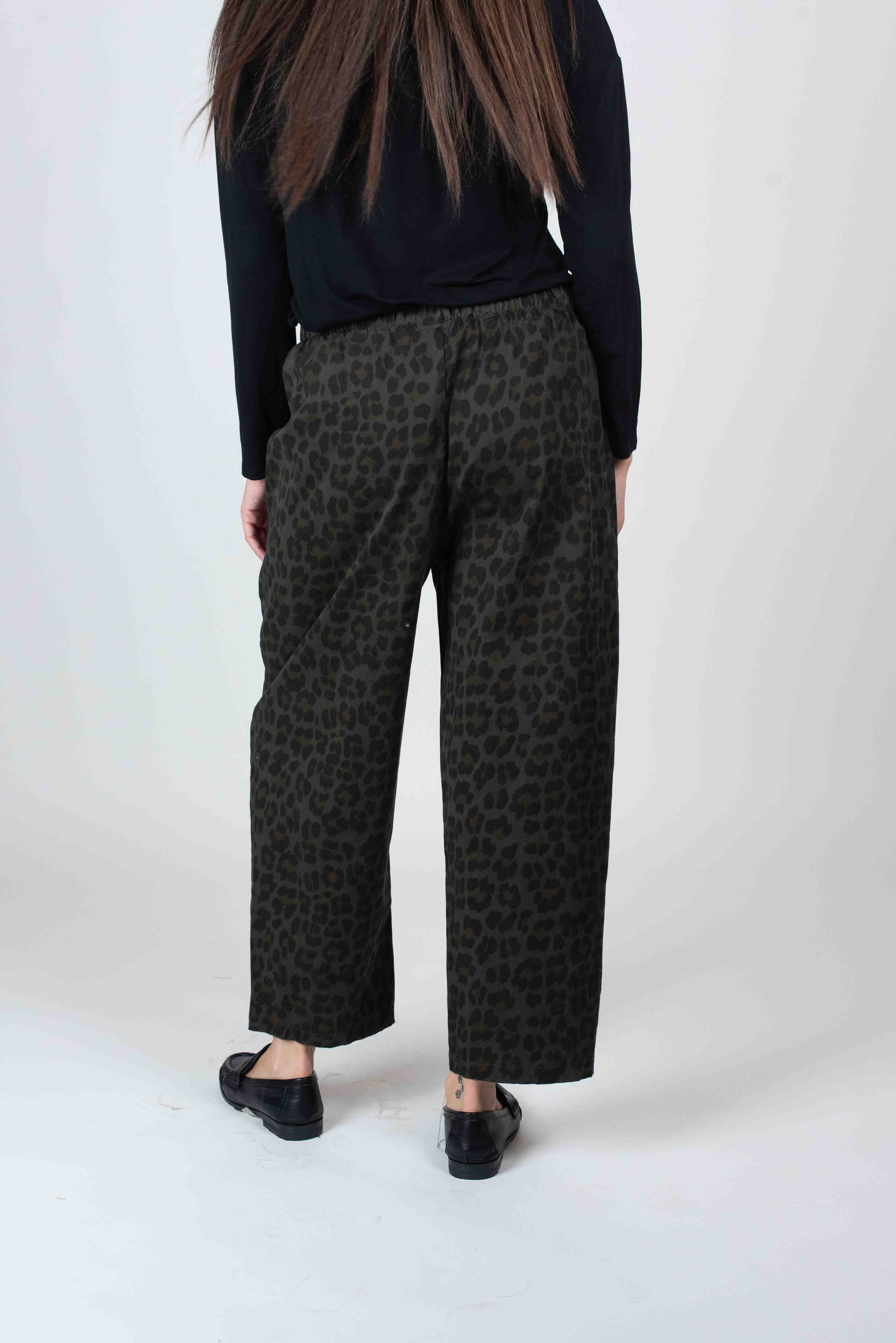 Pantalone baggy maculato con elastico in vita e tasca a filo.