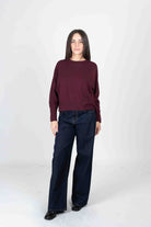 Maglia scatola con manica a pipistrello e cannolè alto.