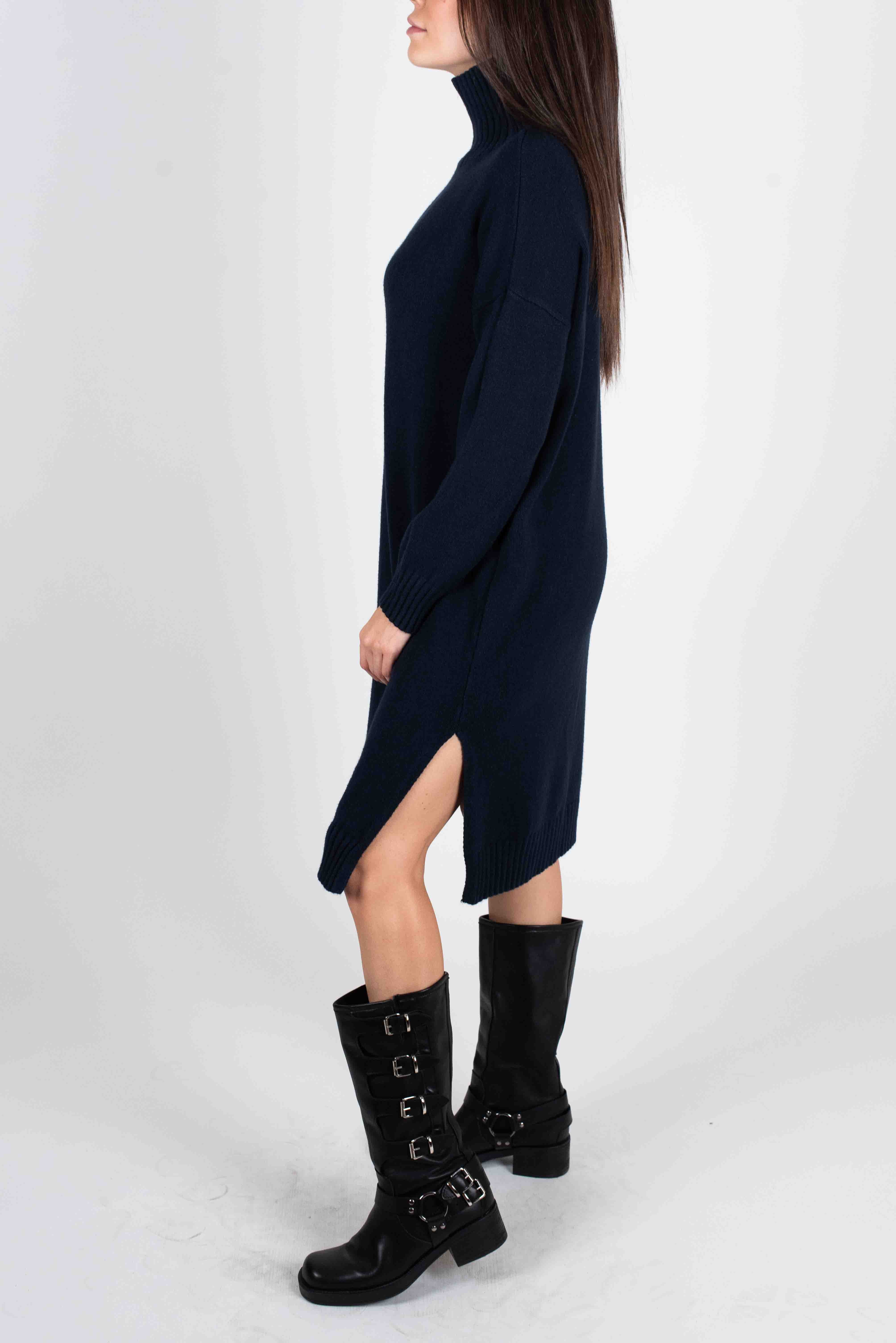 Via Vai Abito Collo Alto C/Spacchi - blu