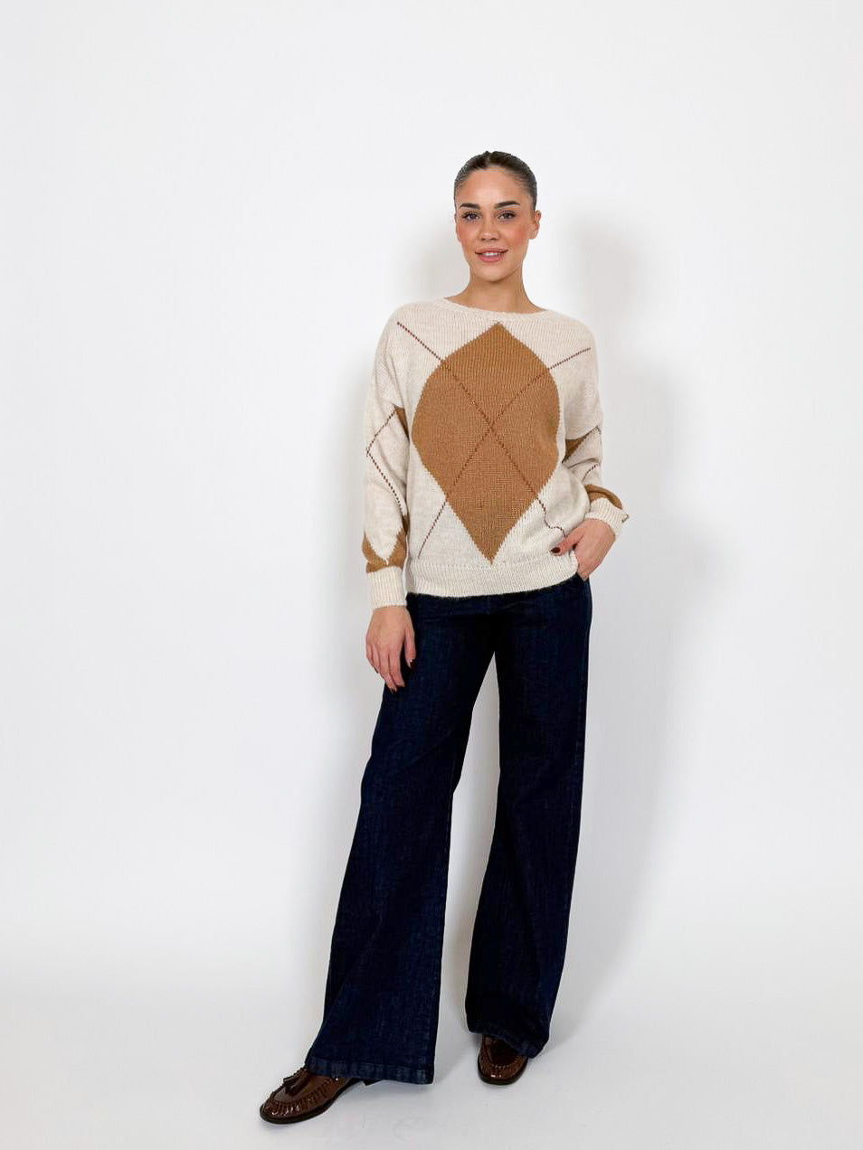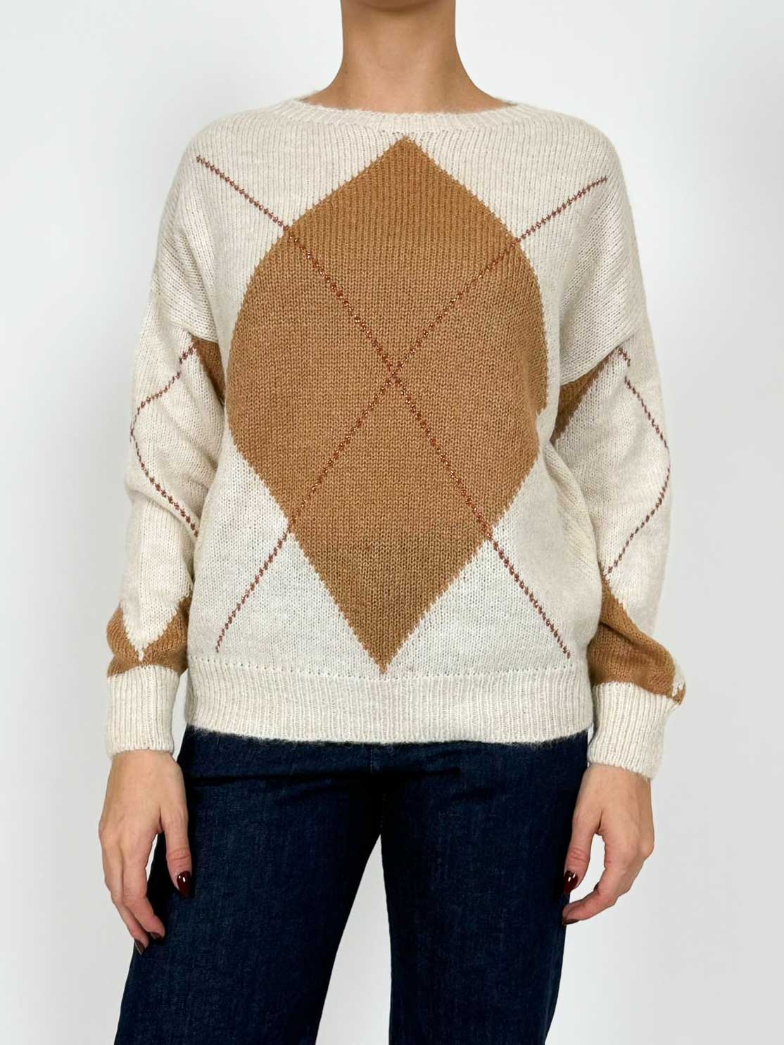 Via Vai Maglia Girocollo Rombi - BURRO/CAMEL