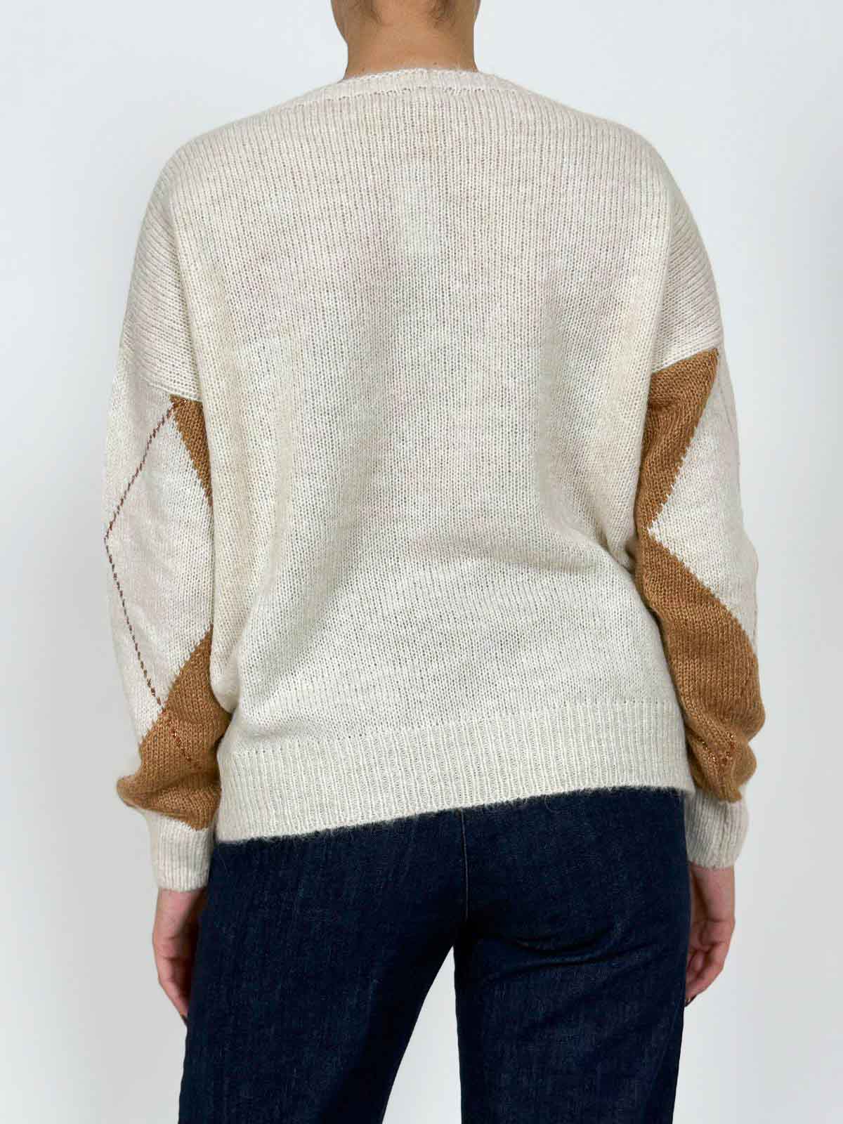 Maglia con disegno rombi e filo in lurex in contrasto.