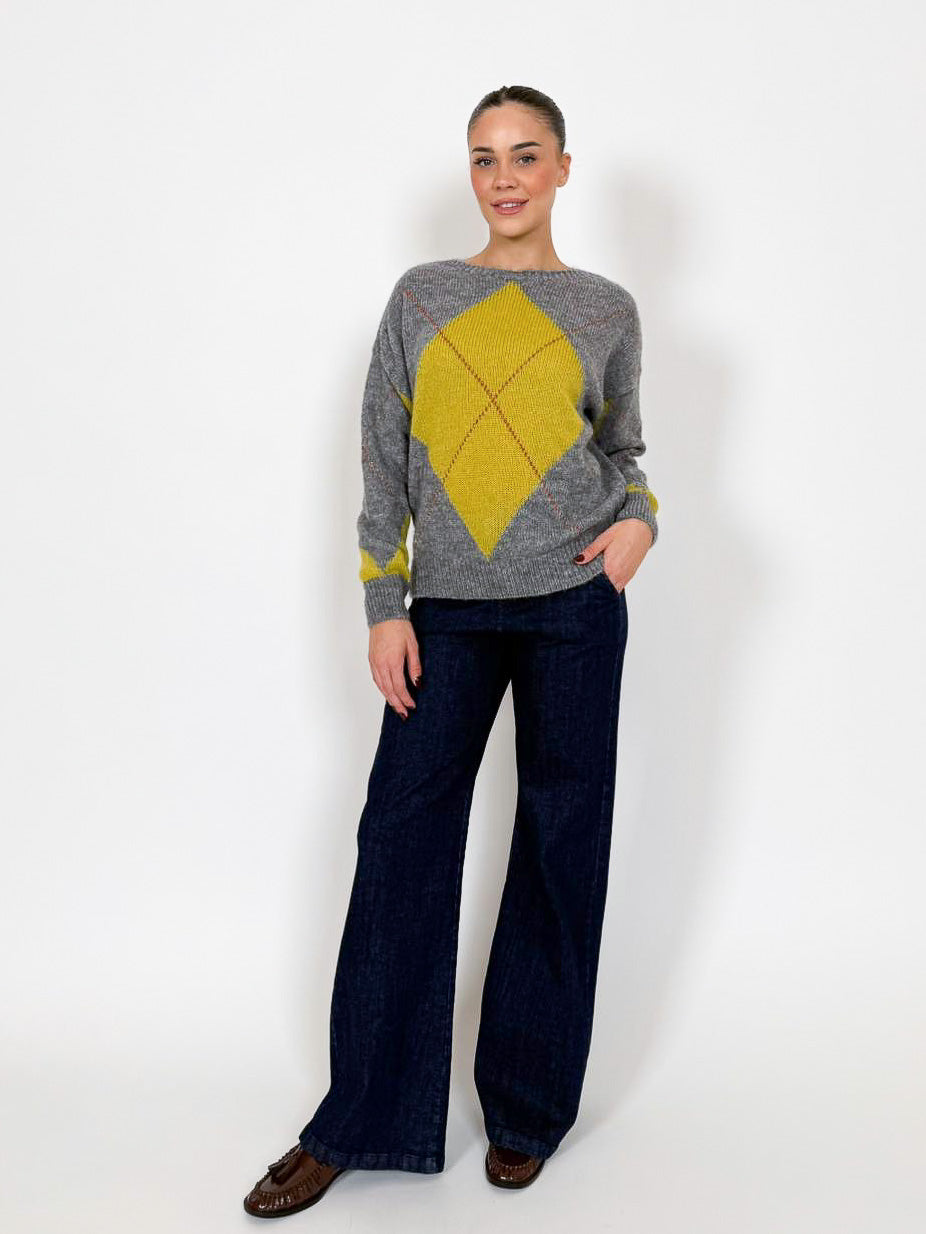 Via Vai Maglia Girocollo Rombi - LIME/GRIGIO