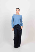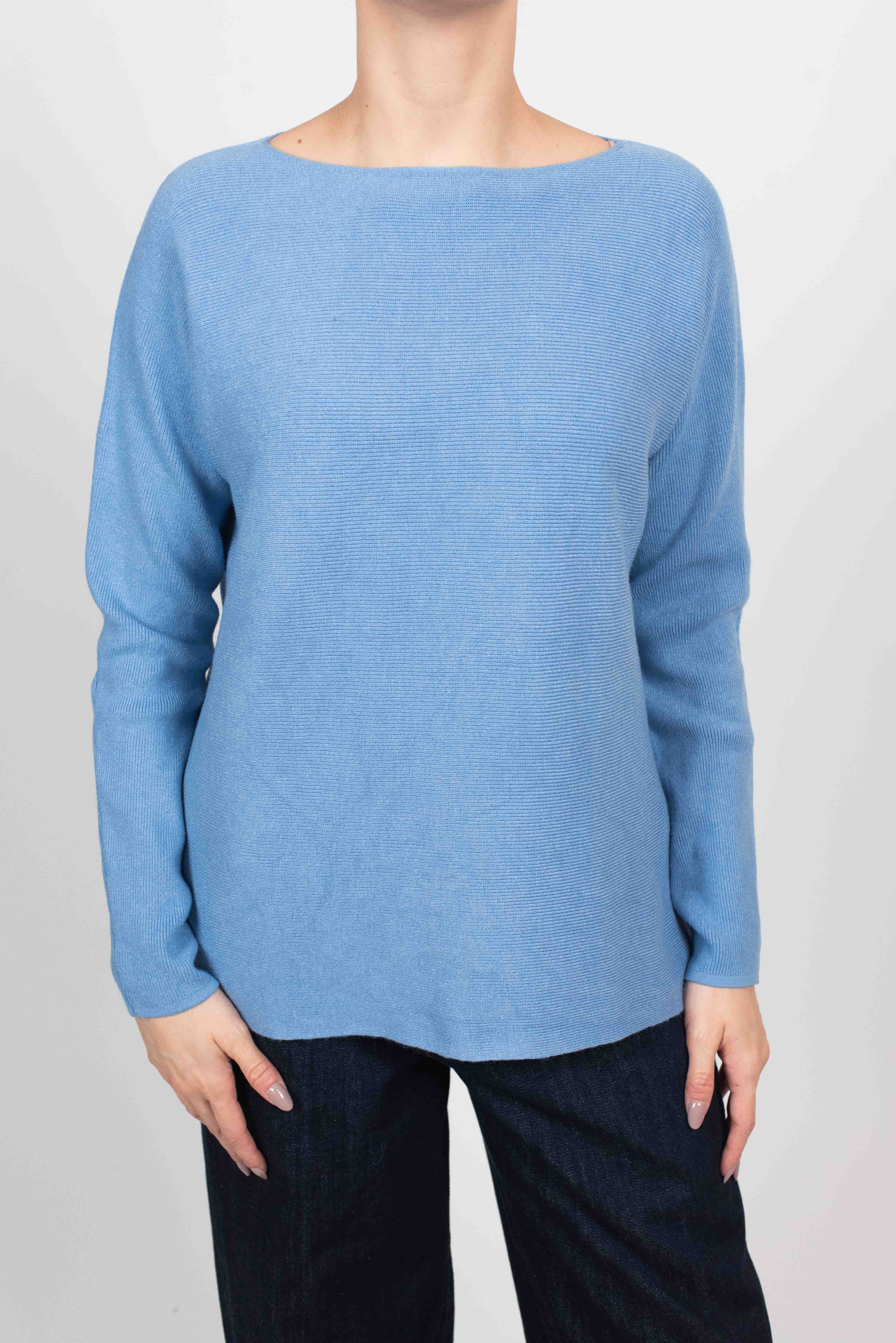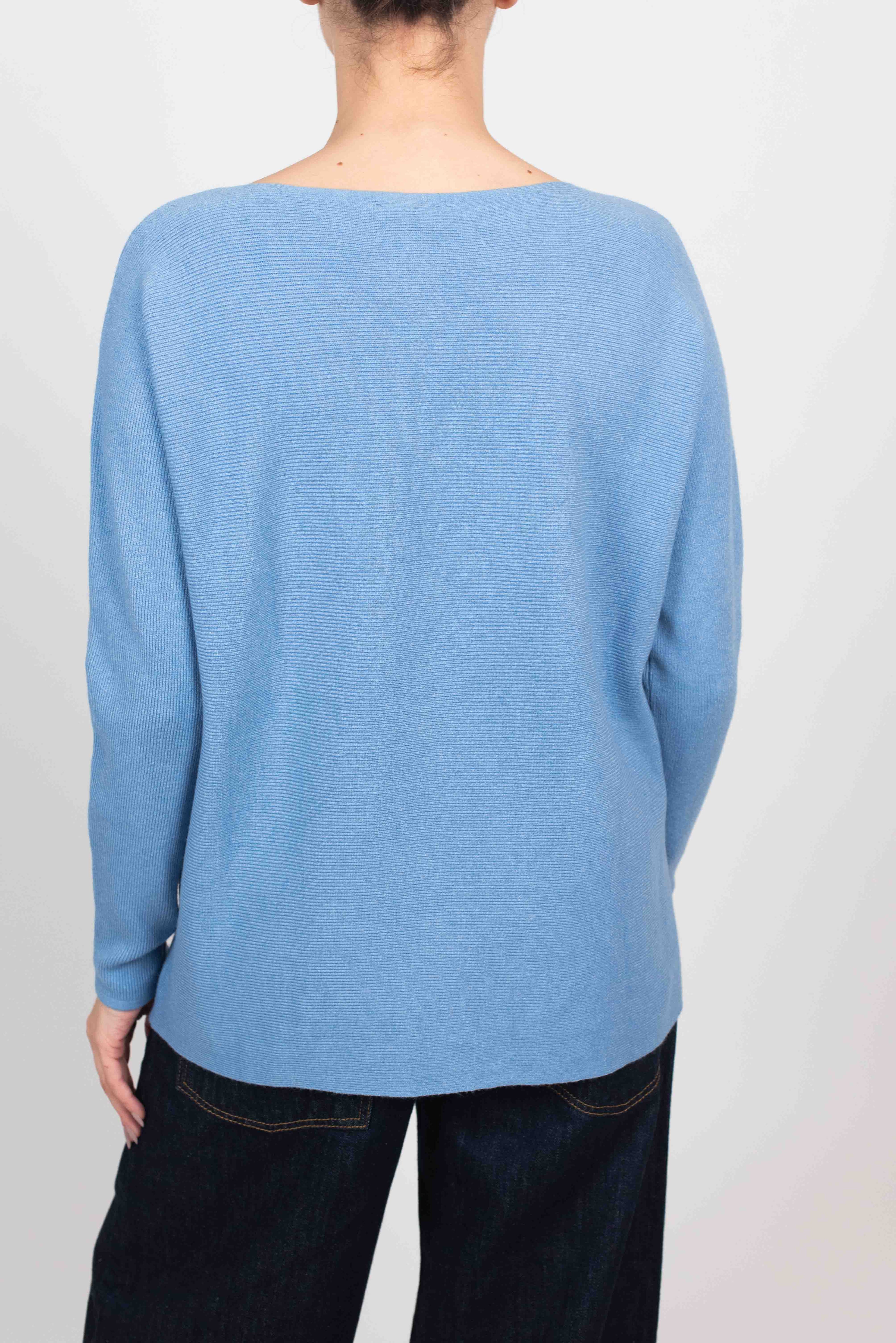 Via Vai Maglia Collo Barca Coste Fine - CELESTE