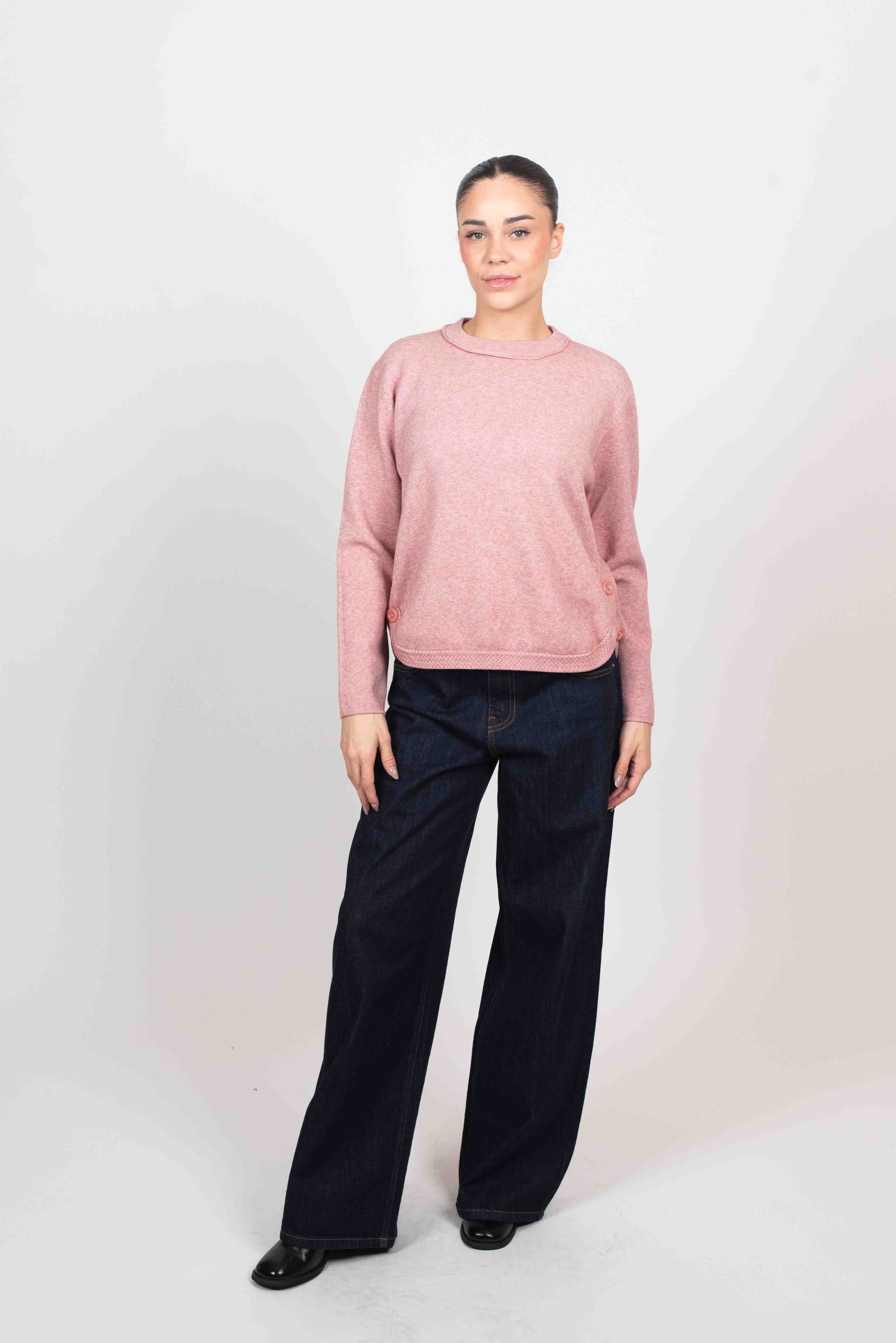 Via Vai Maglia Girocollo C/Bottoni Laterali - ROSA